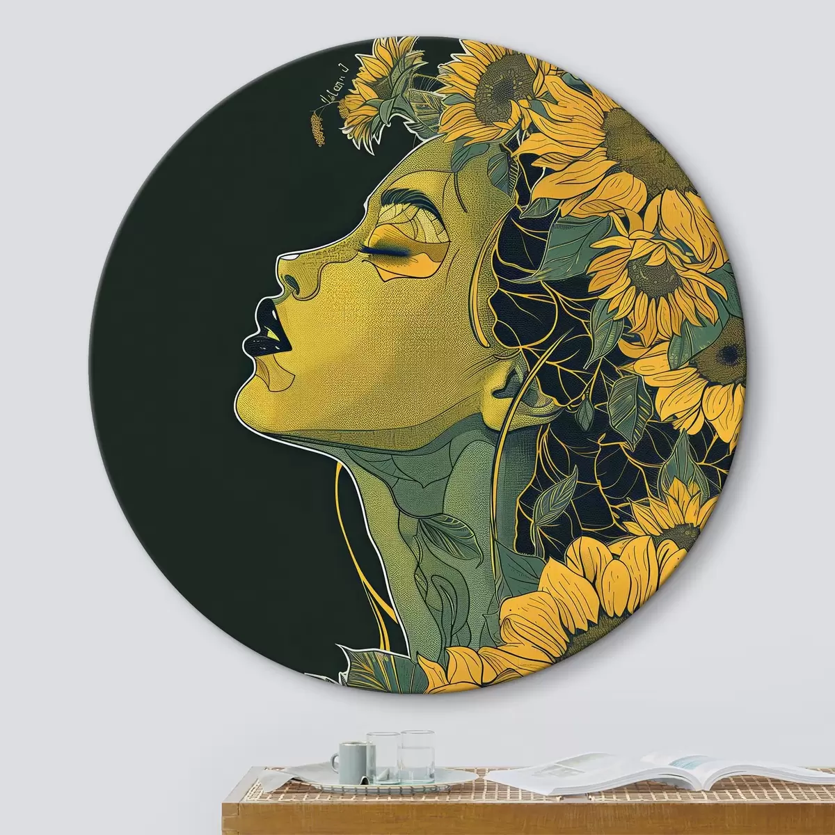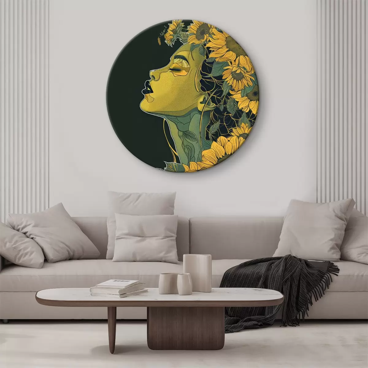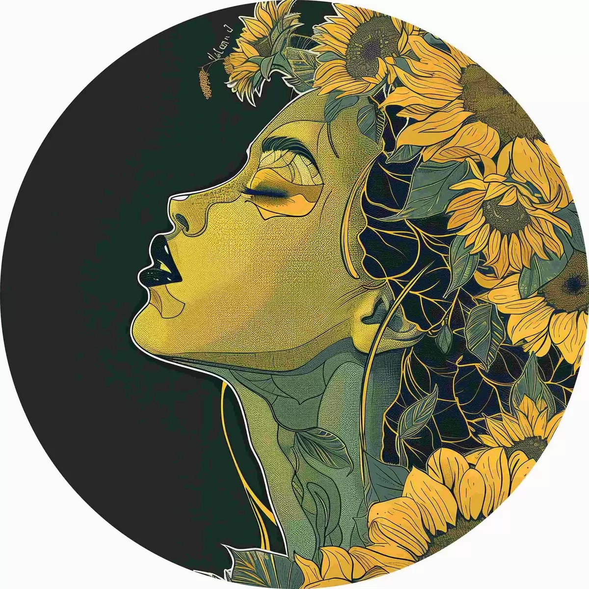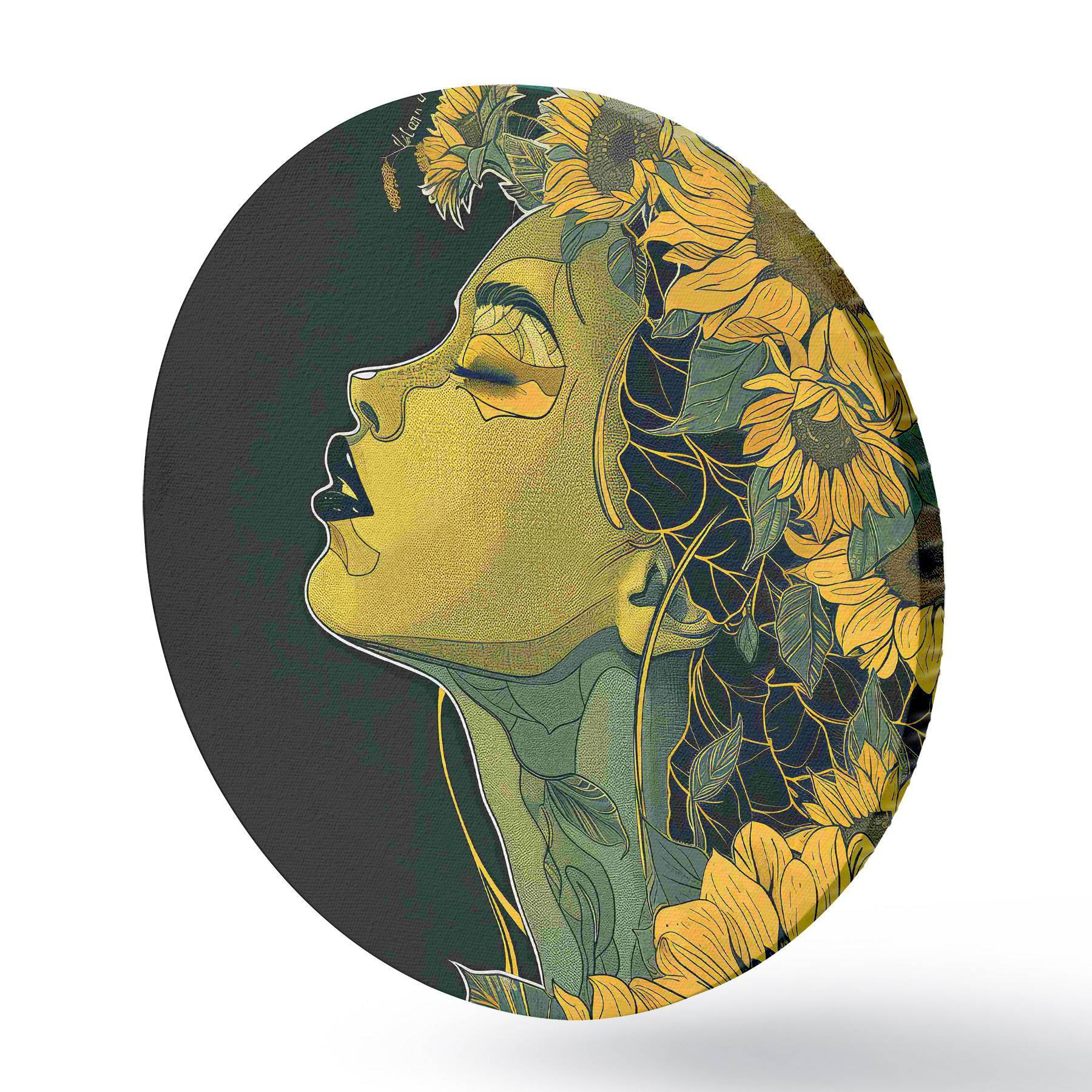 Ronde schilderijen Vrouw met gesloten ogen en bloemen in haar haar r38376