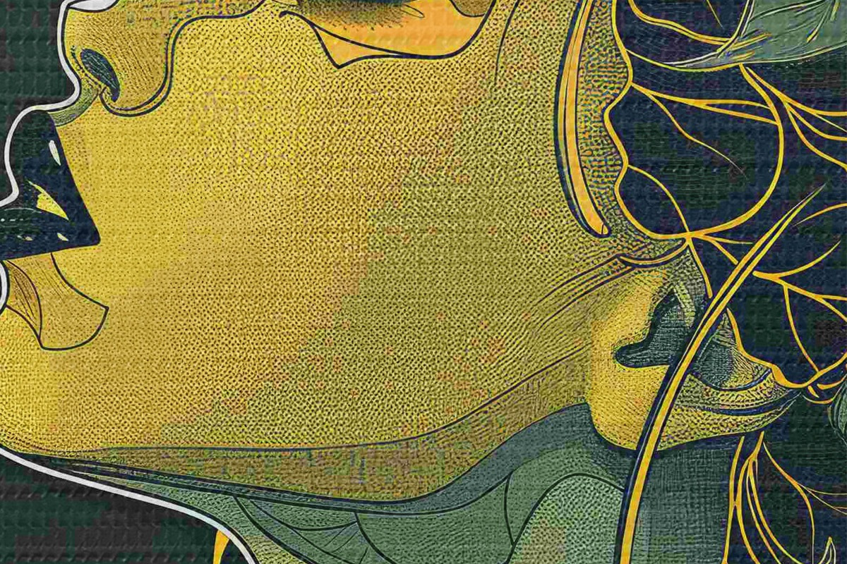 Afbeelding Vrouw met gesloten ogen en bloemen in haar haar Nr r38376