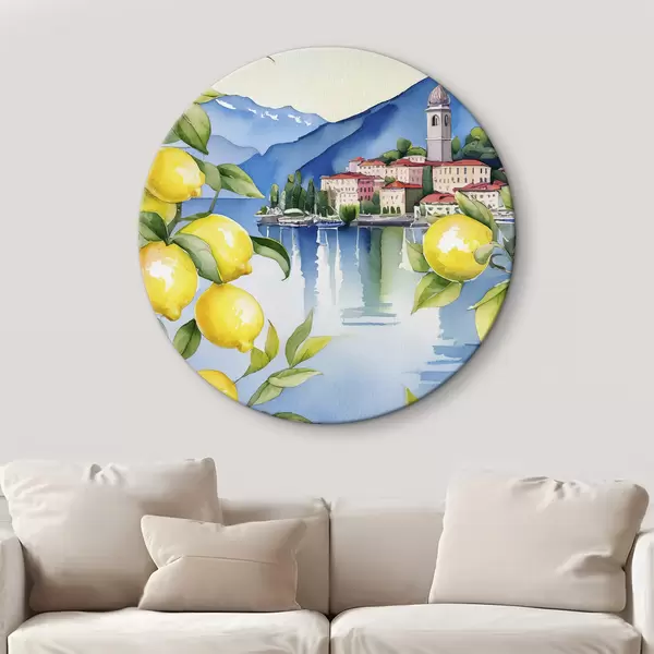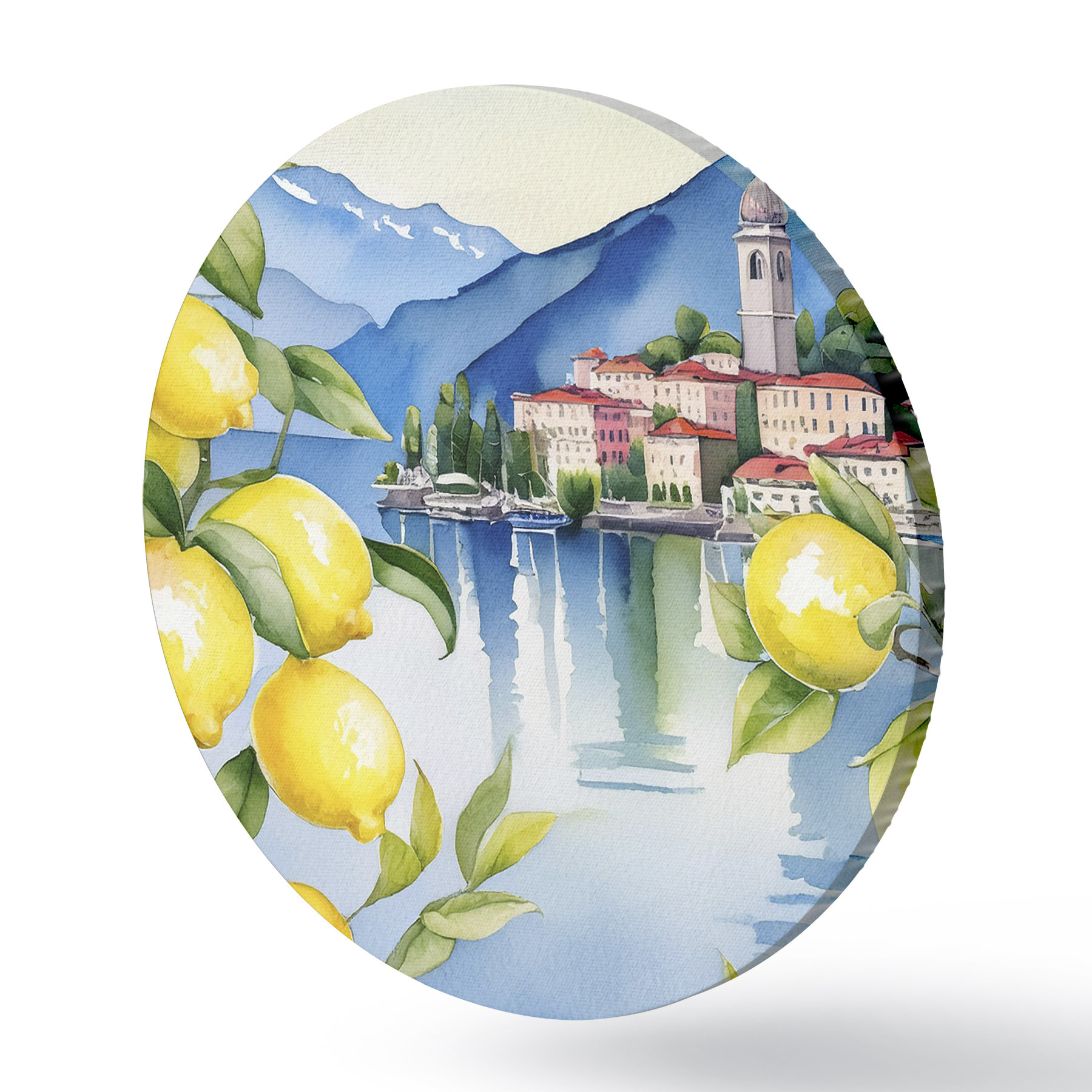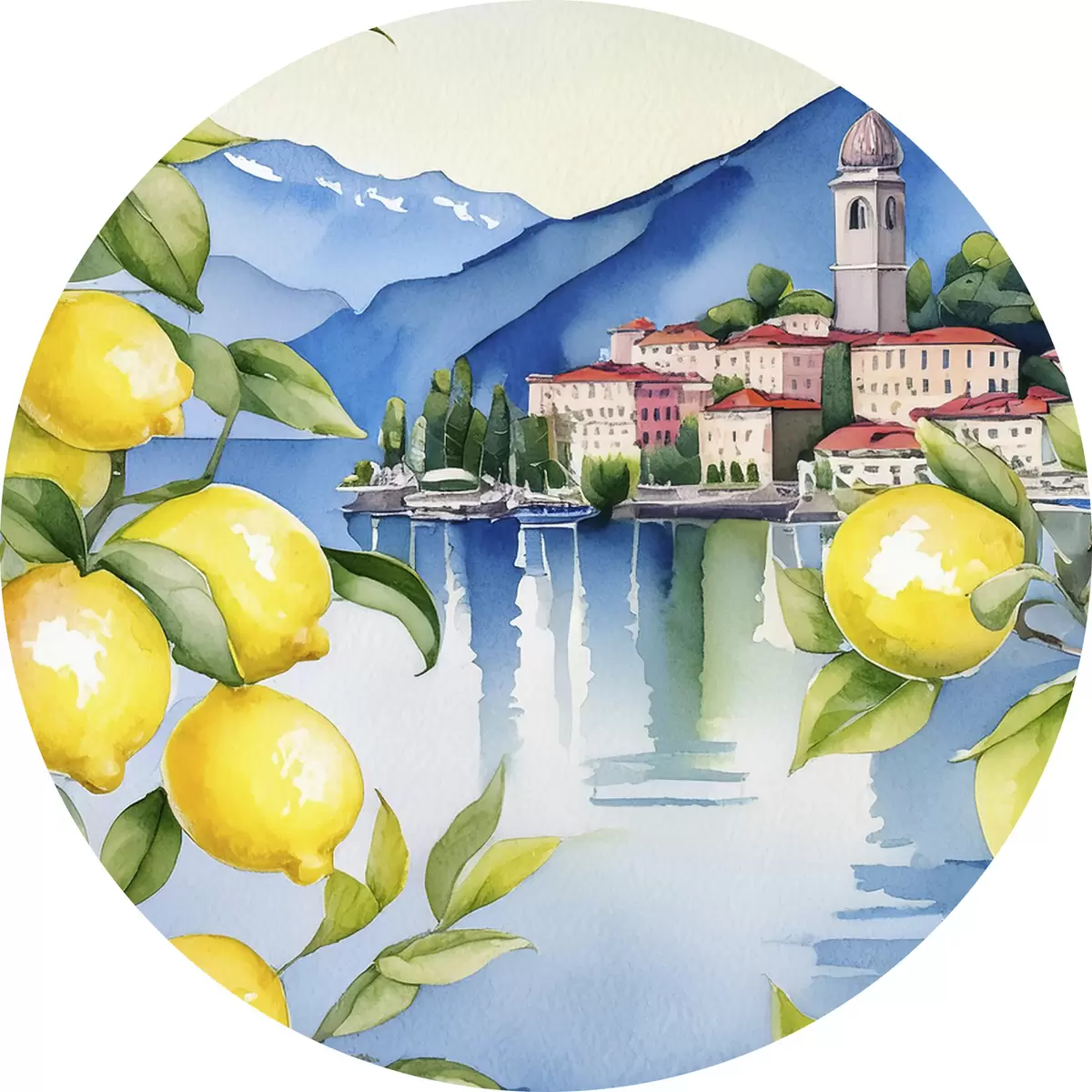 Ronde schilderijen Comomeer, aquarel, Italië, zomer, bergen, citroenboom, zee, oude stad r38398