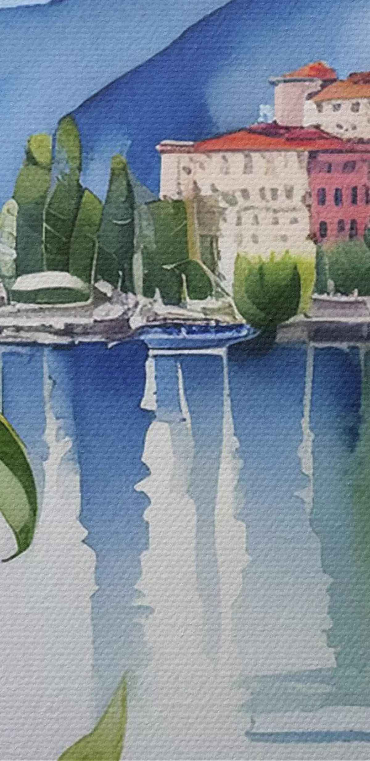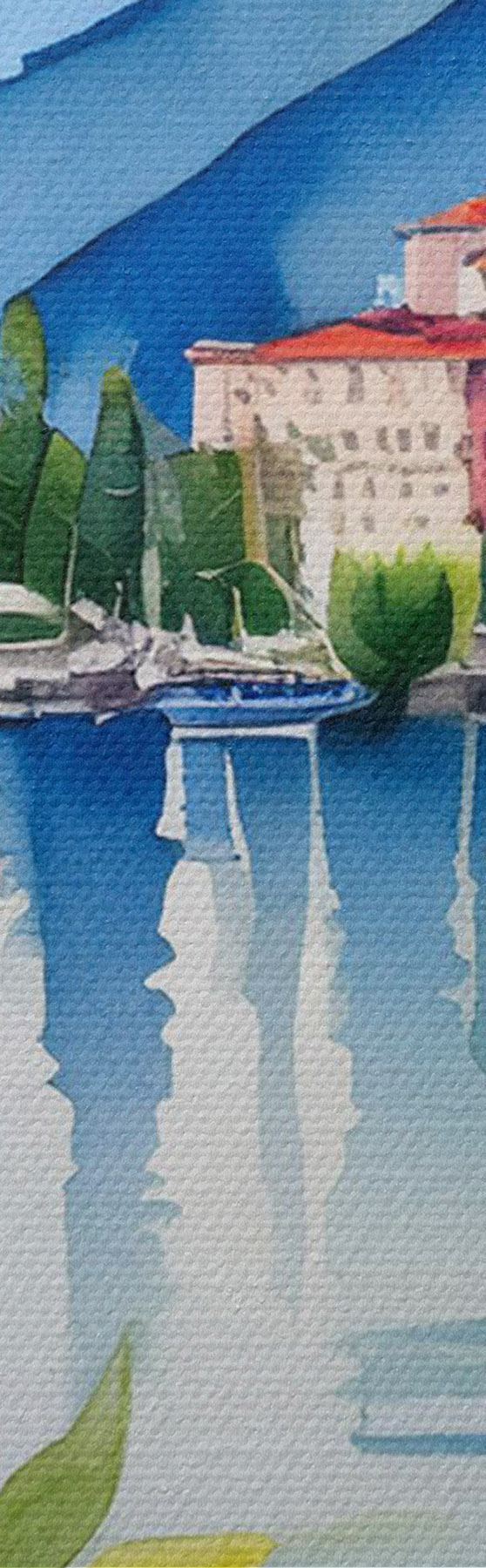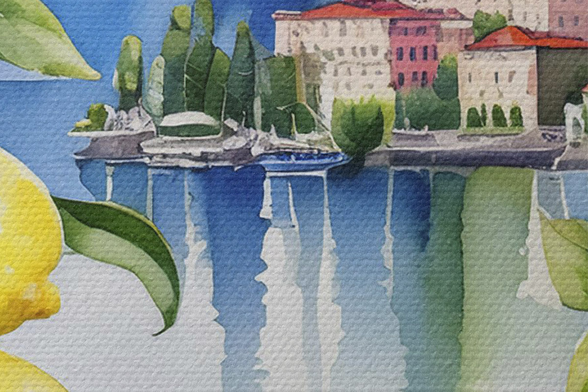 Afbeelding Comomeer, aquarel, Italië, zomer, bergen, citroenboom, zee, oude stad Nr r38398