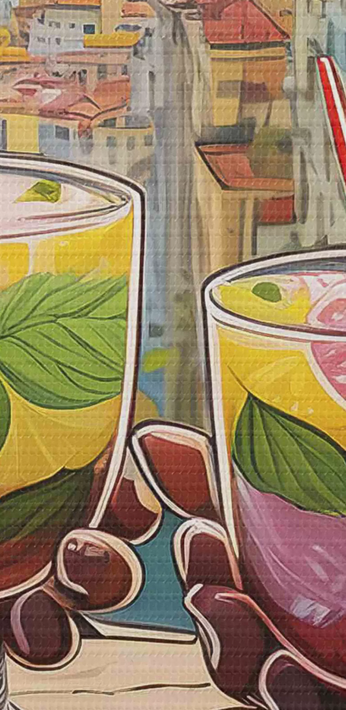 Afbeelding Paar handen houden glazen met vruchten en bladeren vast Nr r38405
