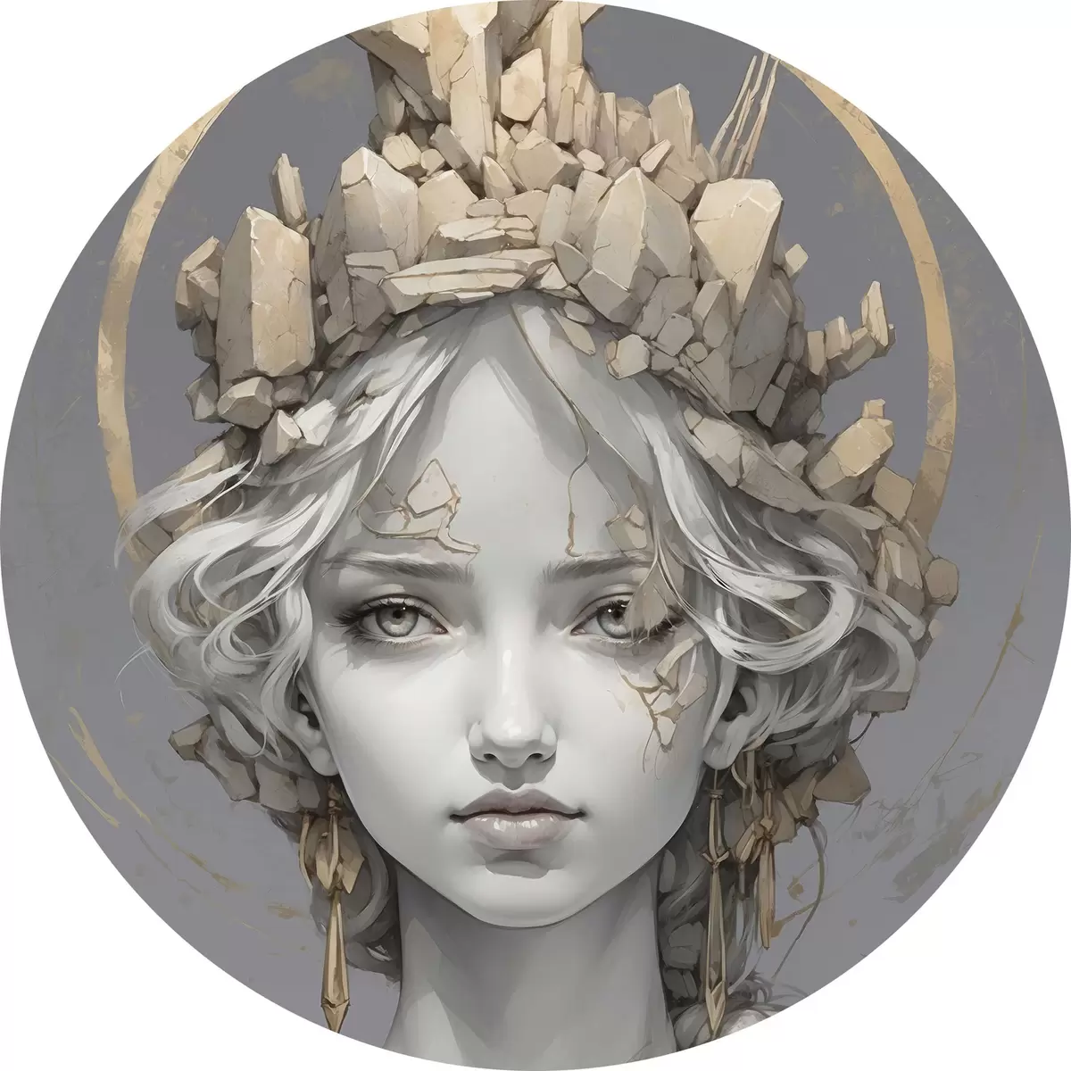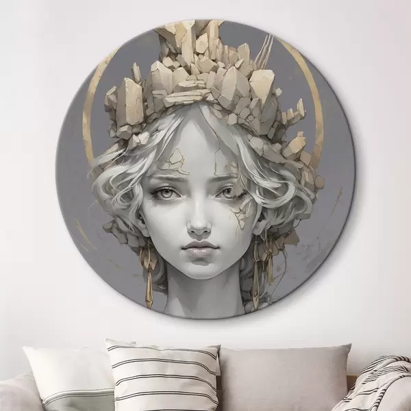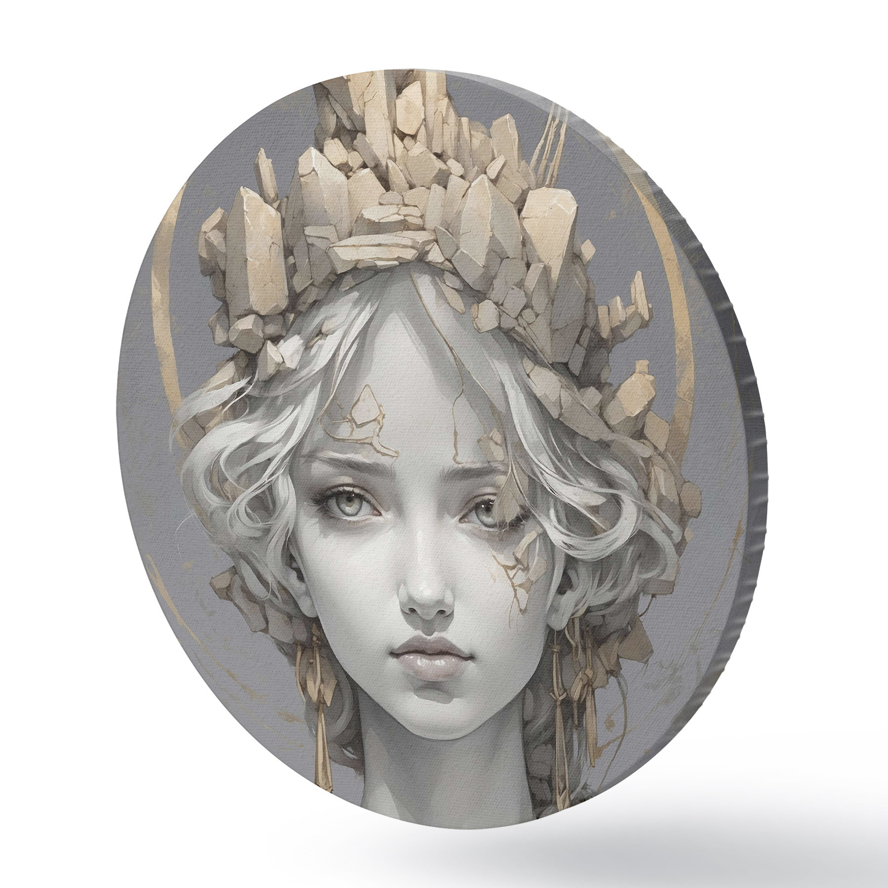 Ronde schilderijen Vrouw met een kroon van stenen r38432