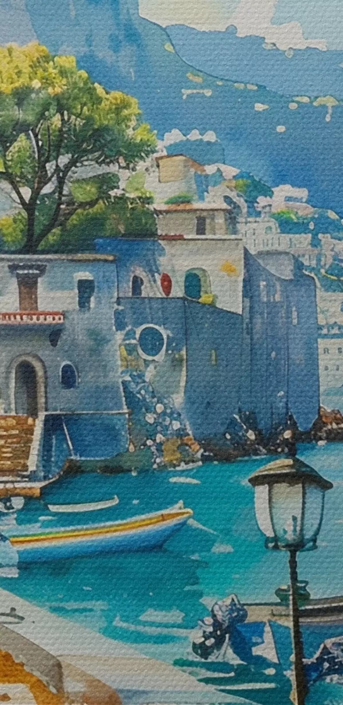 Het schilderij kan direct na ontvangst worden opgehangen. Het schilderij wordt opgespannen op een 2 cm breed houten spieraam.