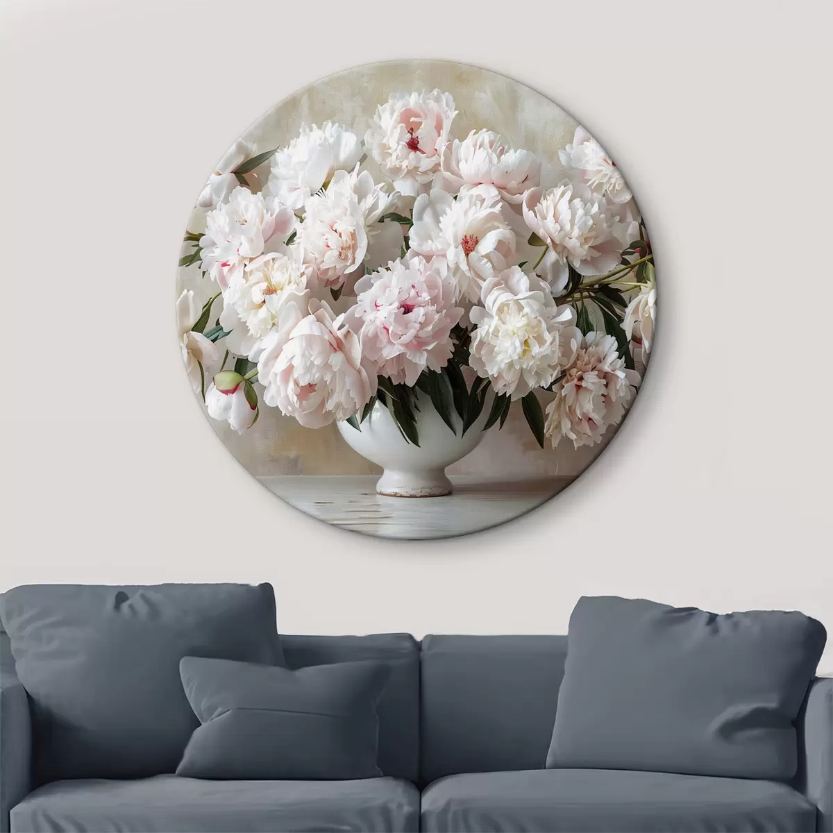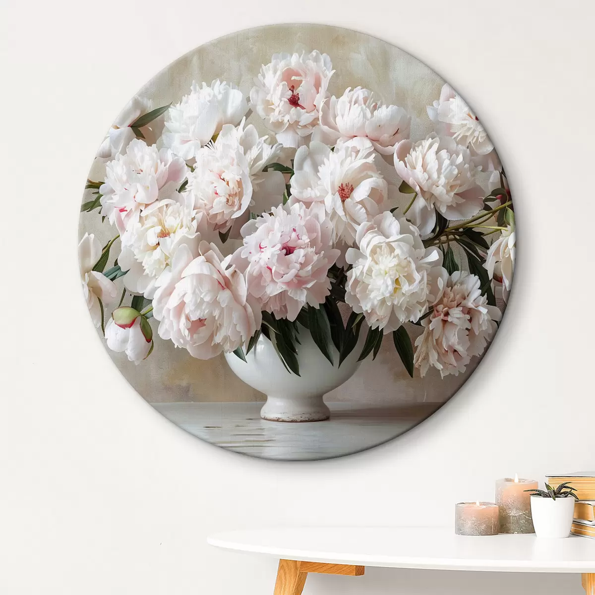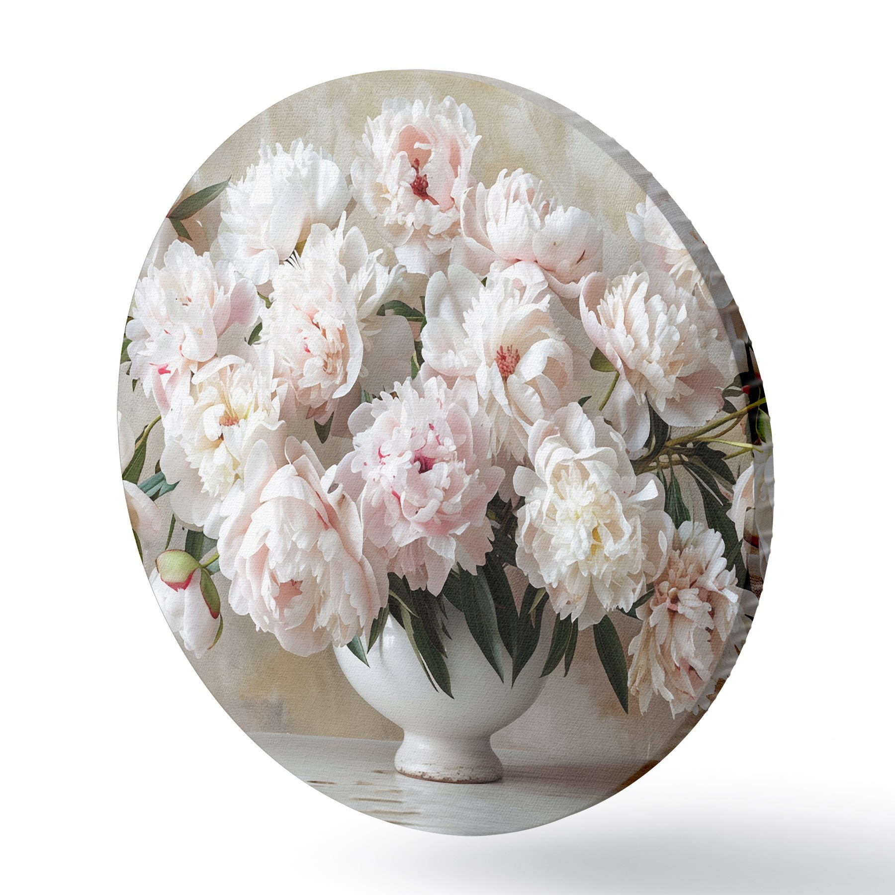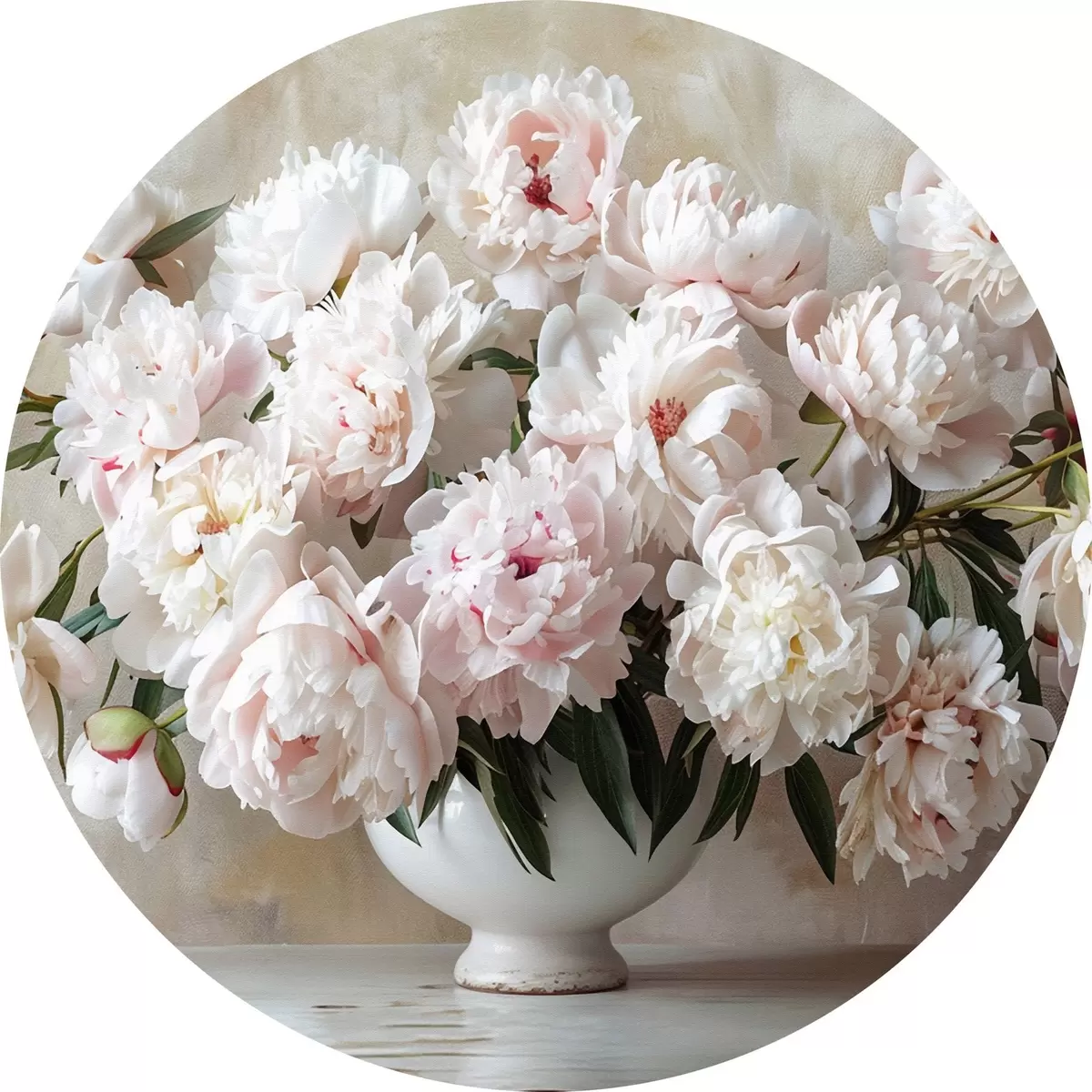 Ronde schilderijen Lichte pioenrozen in een vaas r38461