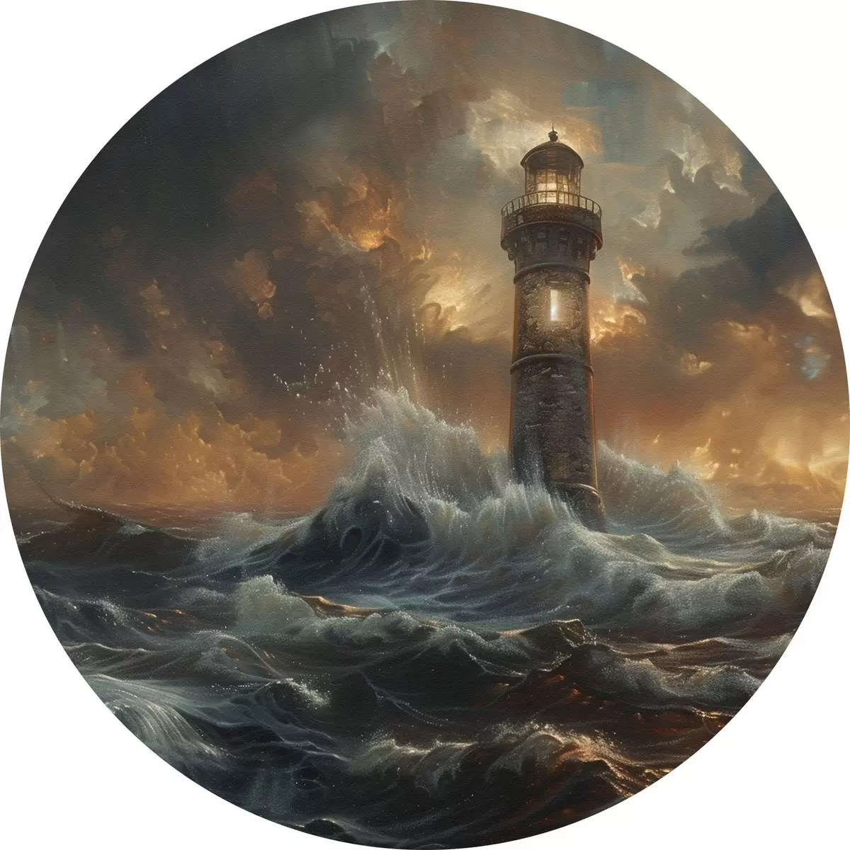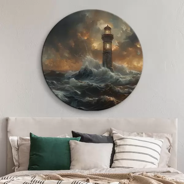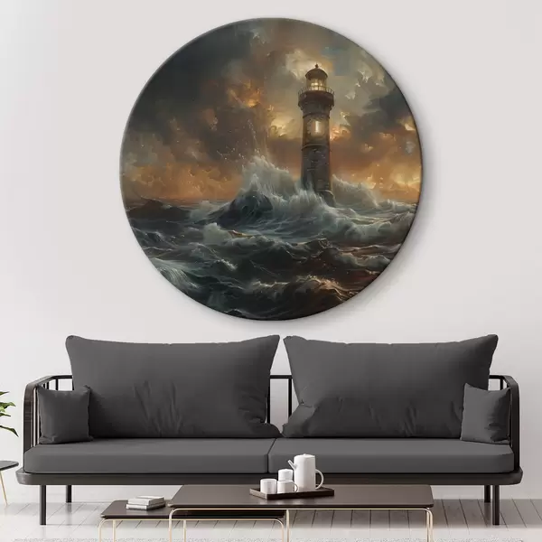 Ronde schilderijen Vuurtoren op zee r38469