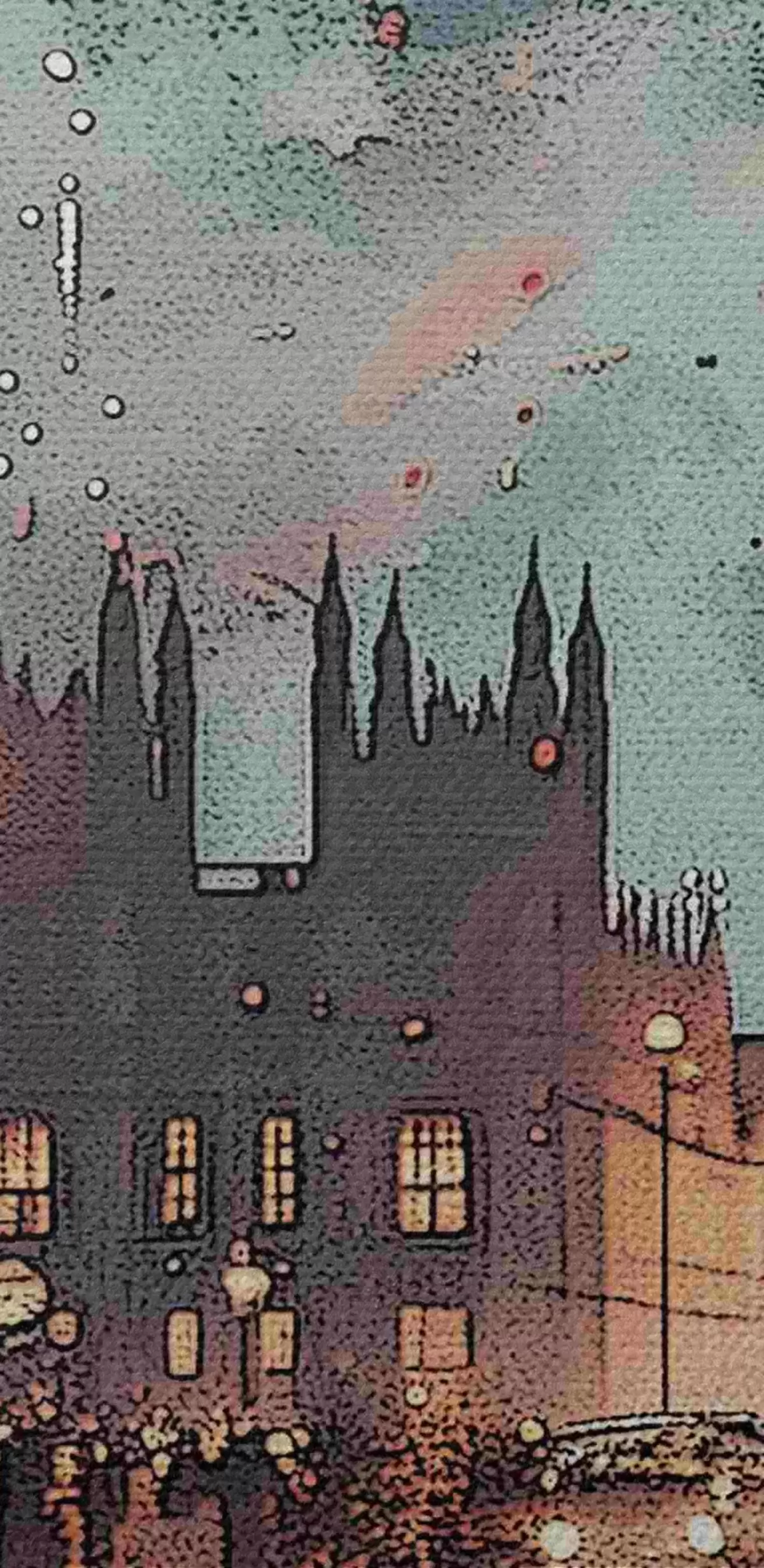 Het schilderij kan direct na ontvangst worden opgehangen. Het schilderij wordt opgespannen op een 2 cm breed houten spieraam.