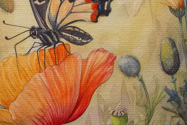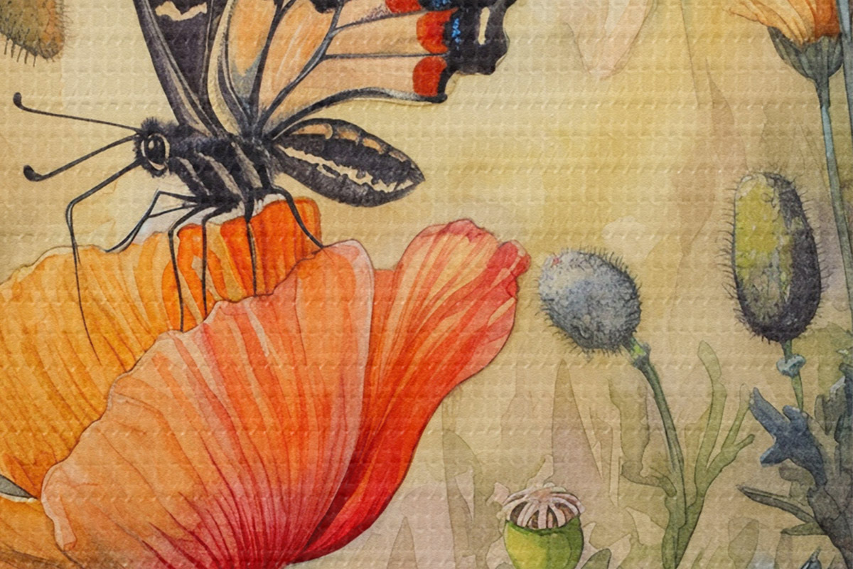 Afbeelding Veld van klaprozen en vlinder Nr r38520