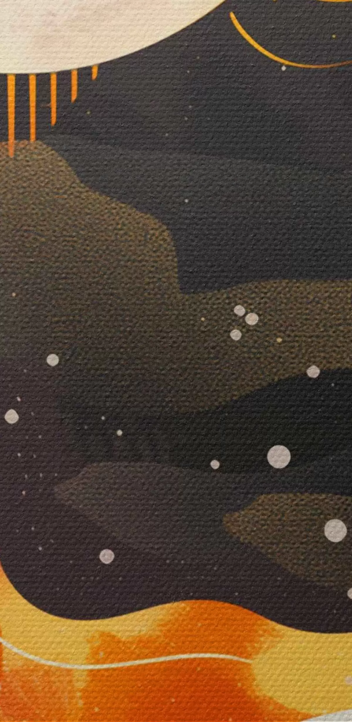 Het schilderij kan direct na ontvangst worden opgehangen. Het schilderij wordt opgespannen op een 2 cm breed houten spieraam.