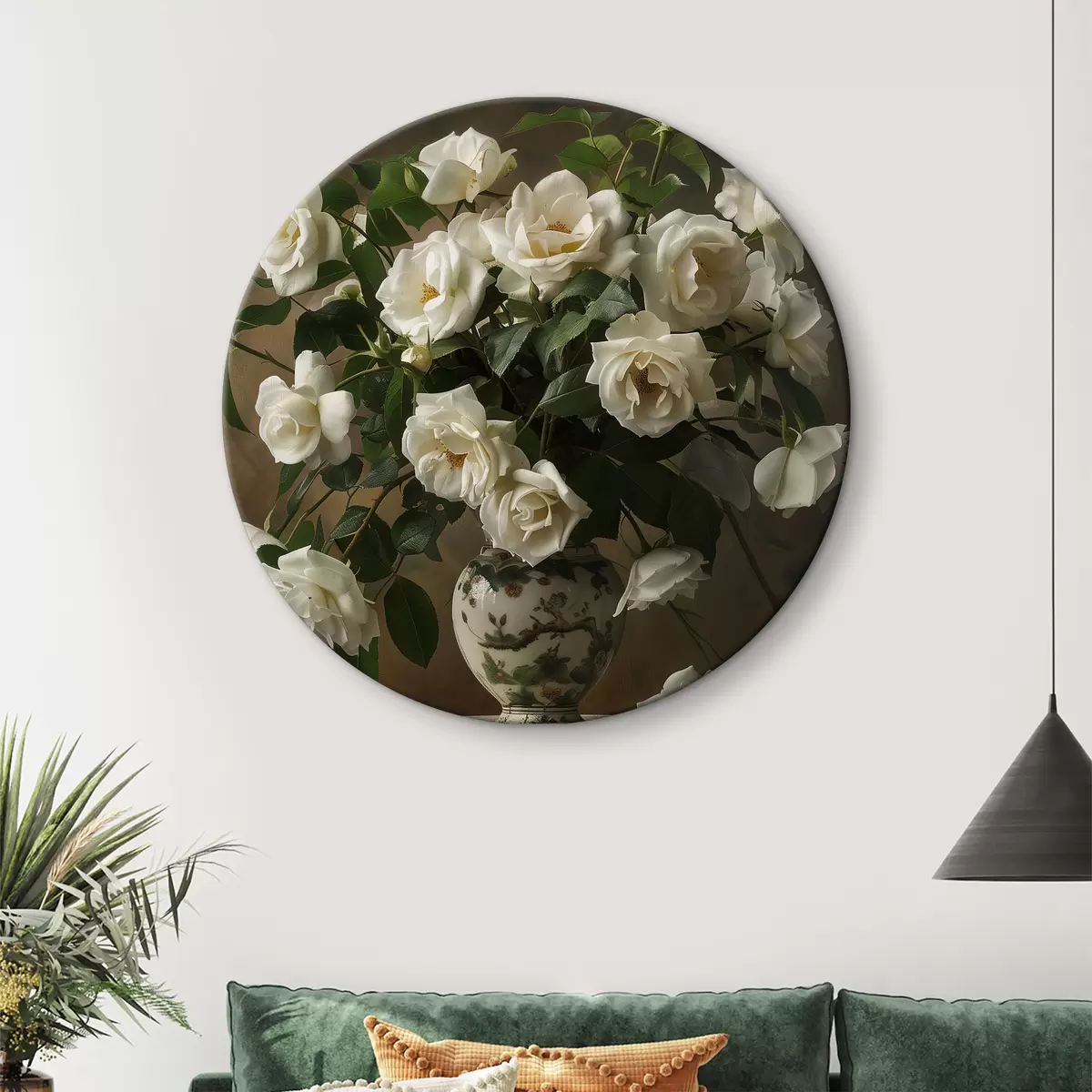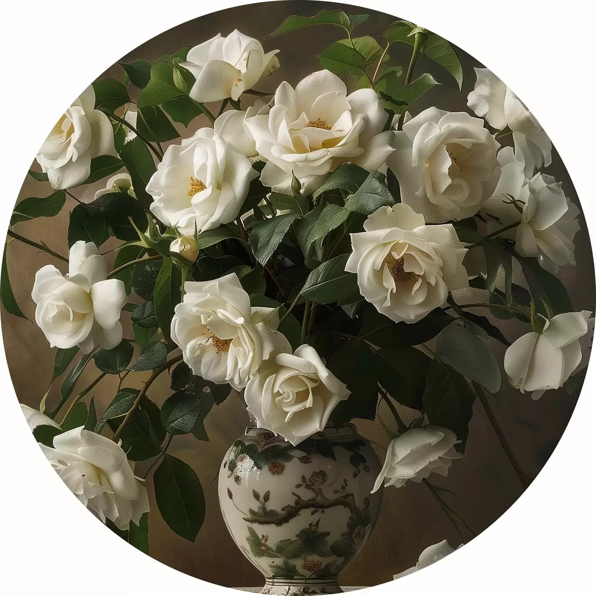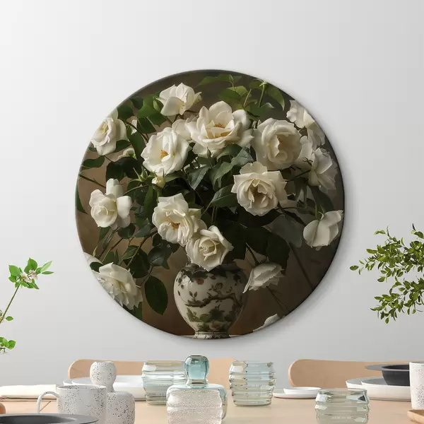 Ronde schilderijen Vaas met witte bloemen r38556