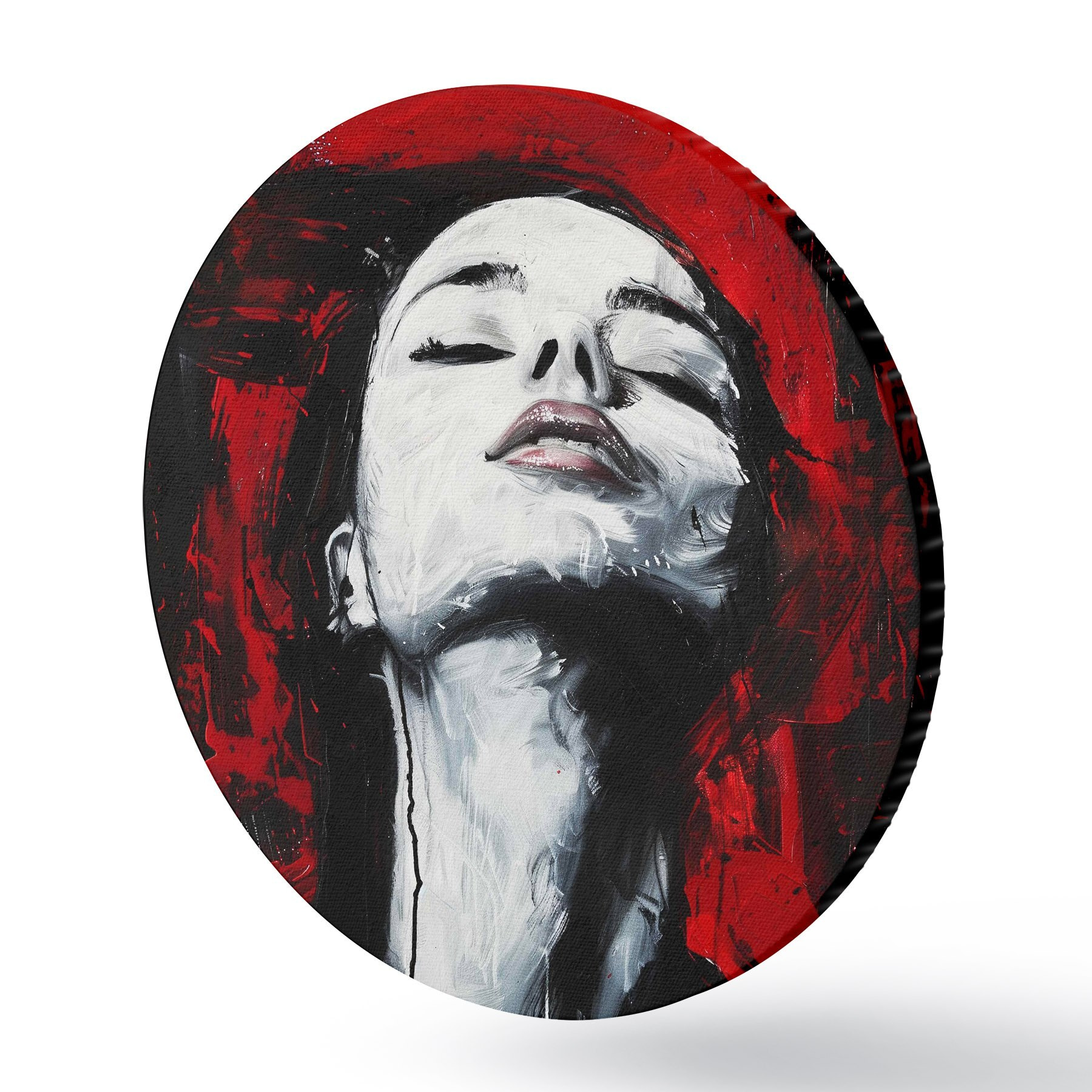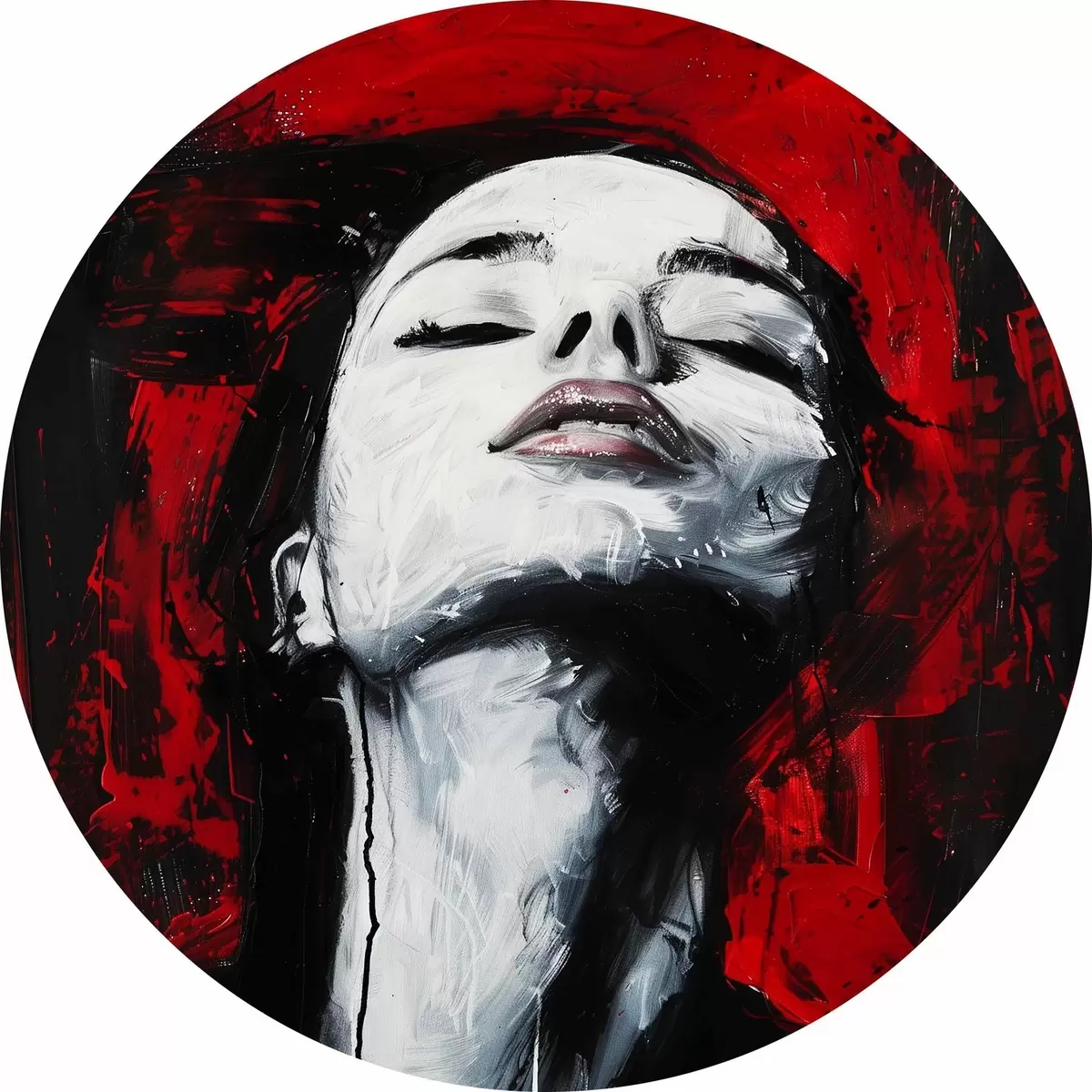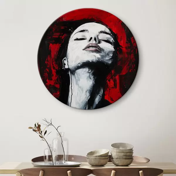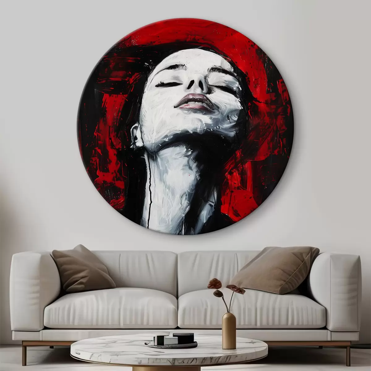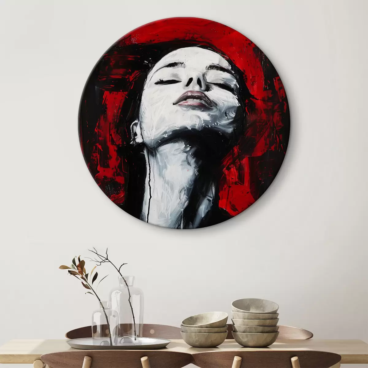 Ronde schilderijen Afbeelding van een vrouw met gesloten ogen met het Andy Warhol Museum op de achtergrond r38557