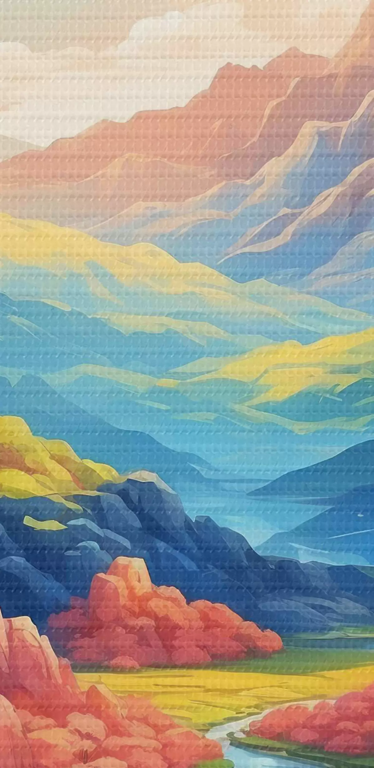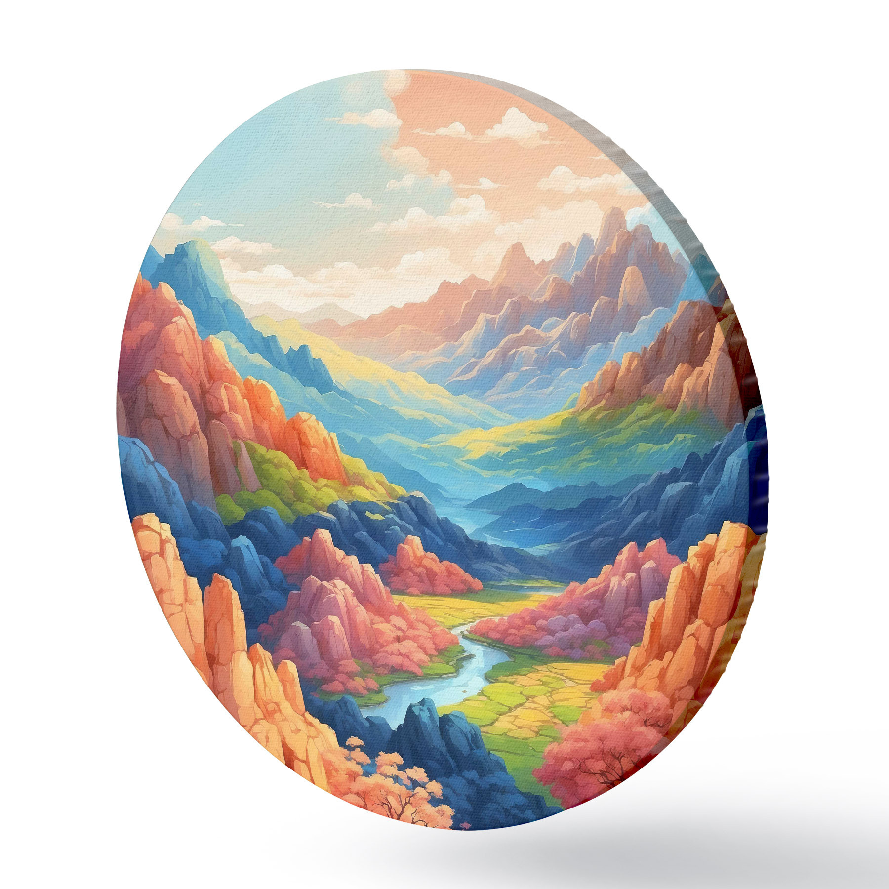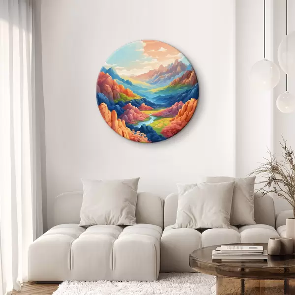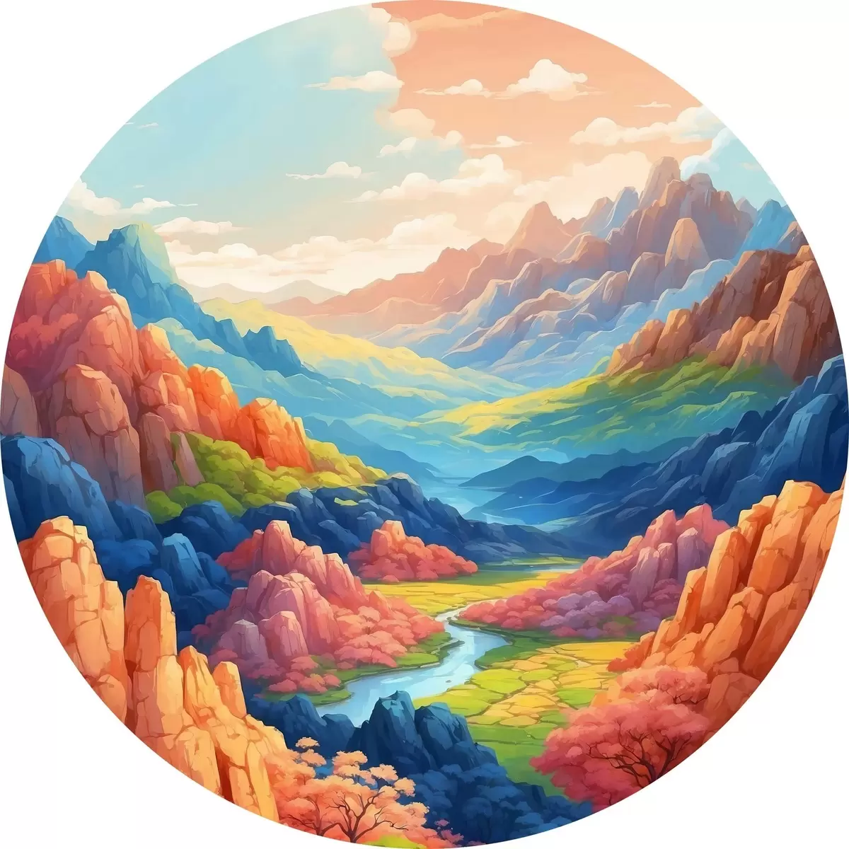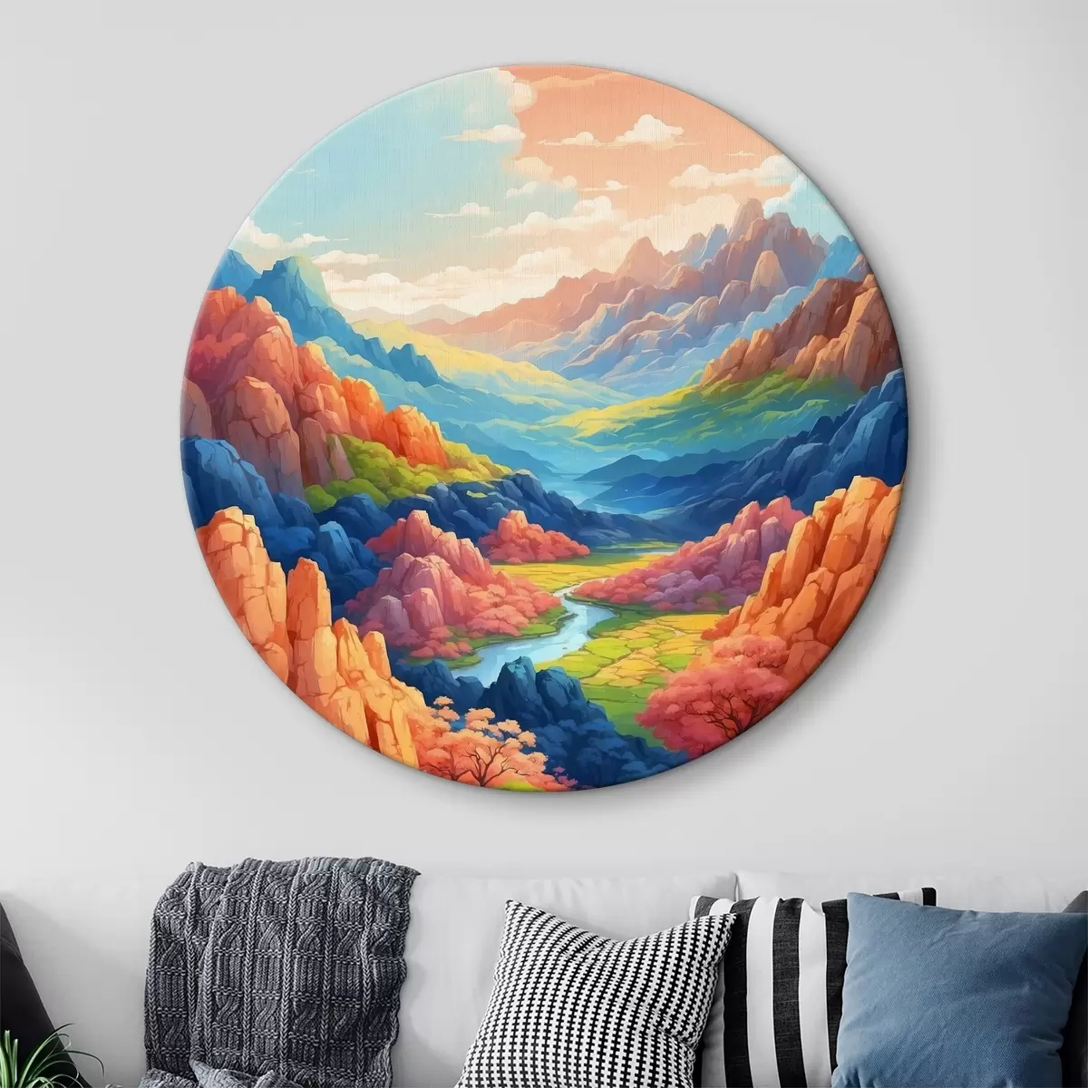 Ronde schilderijen Landschap met bergen en rivier r38577