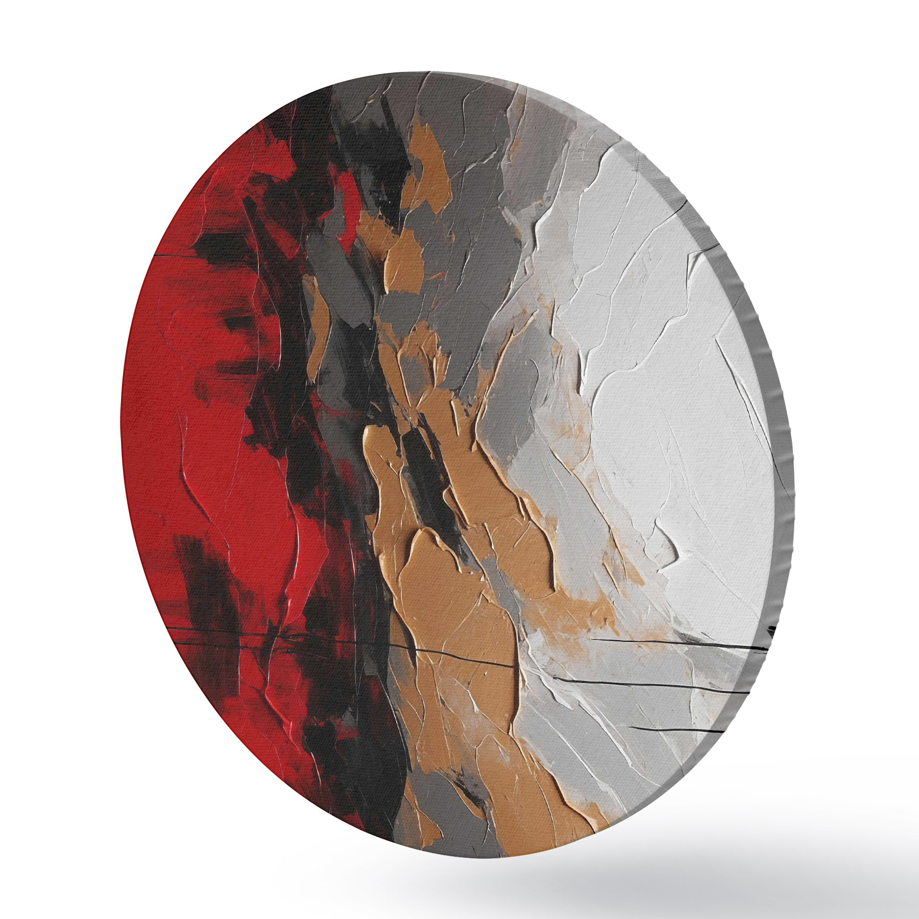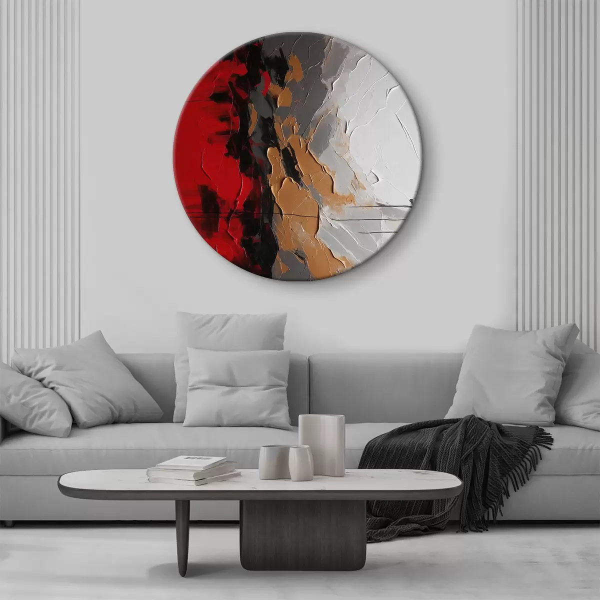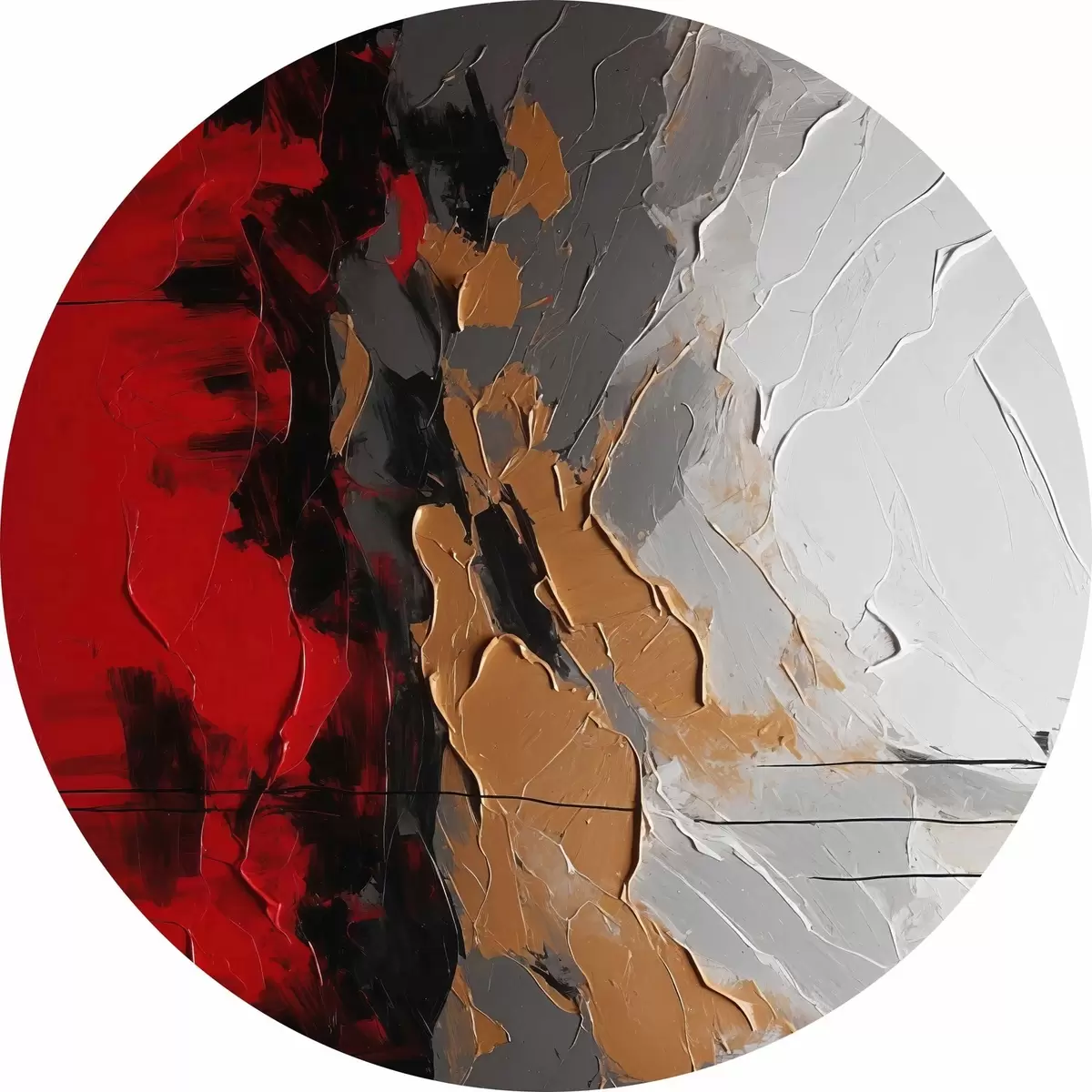Ronde schilderijen Gedurfde strepen rood, wit en grijs r38580