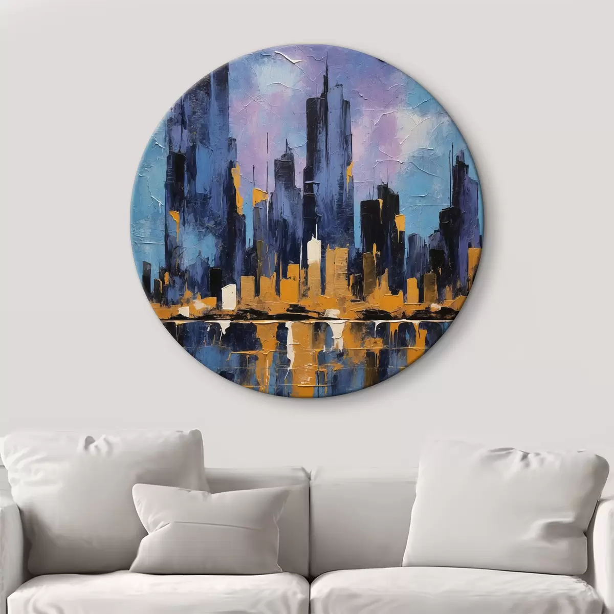 Ronde schilderijen Een stedelijk panorama schilderen r38583