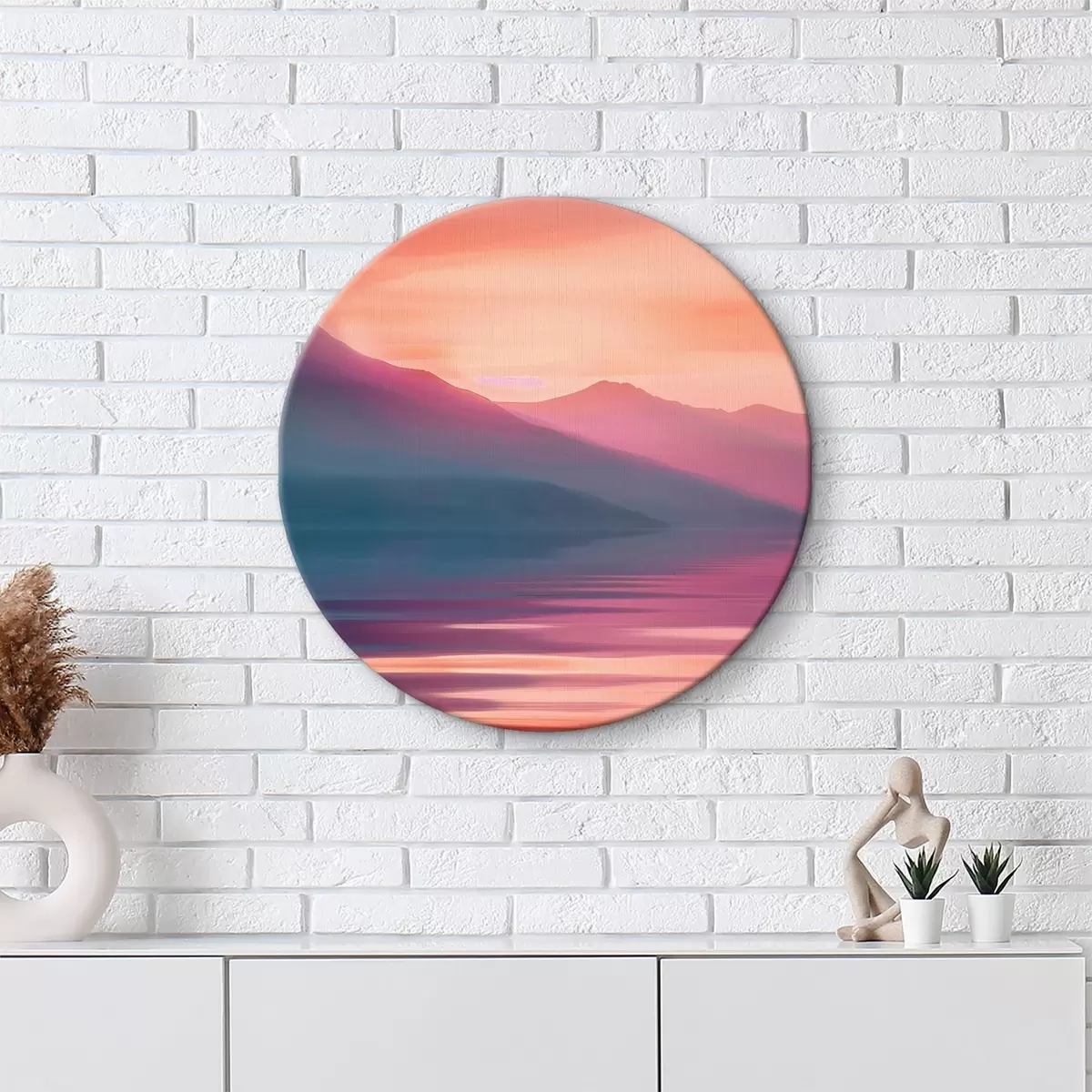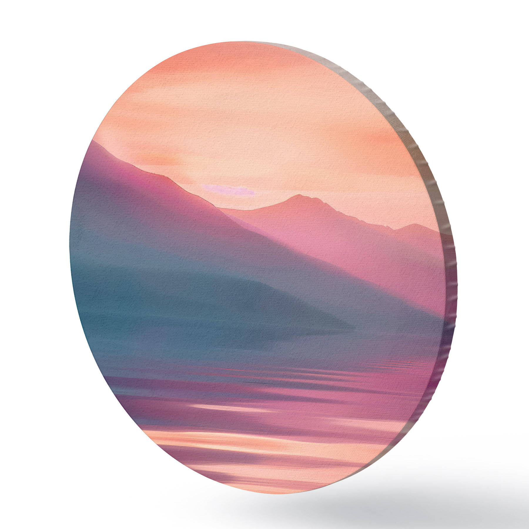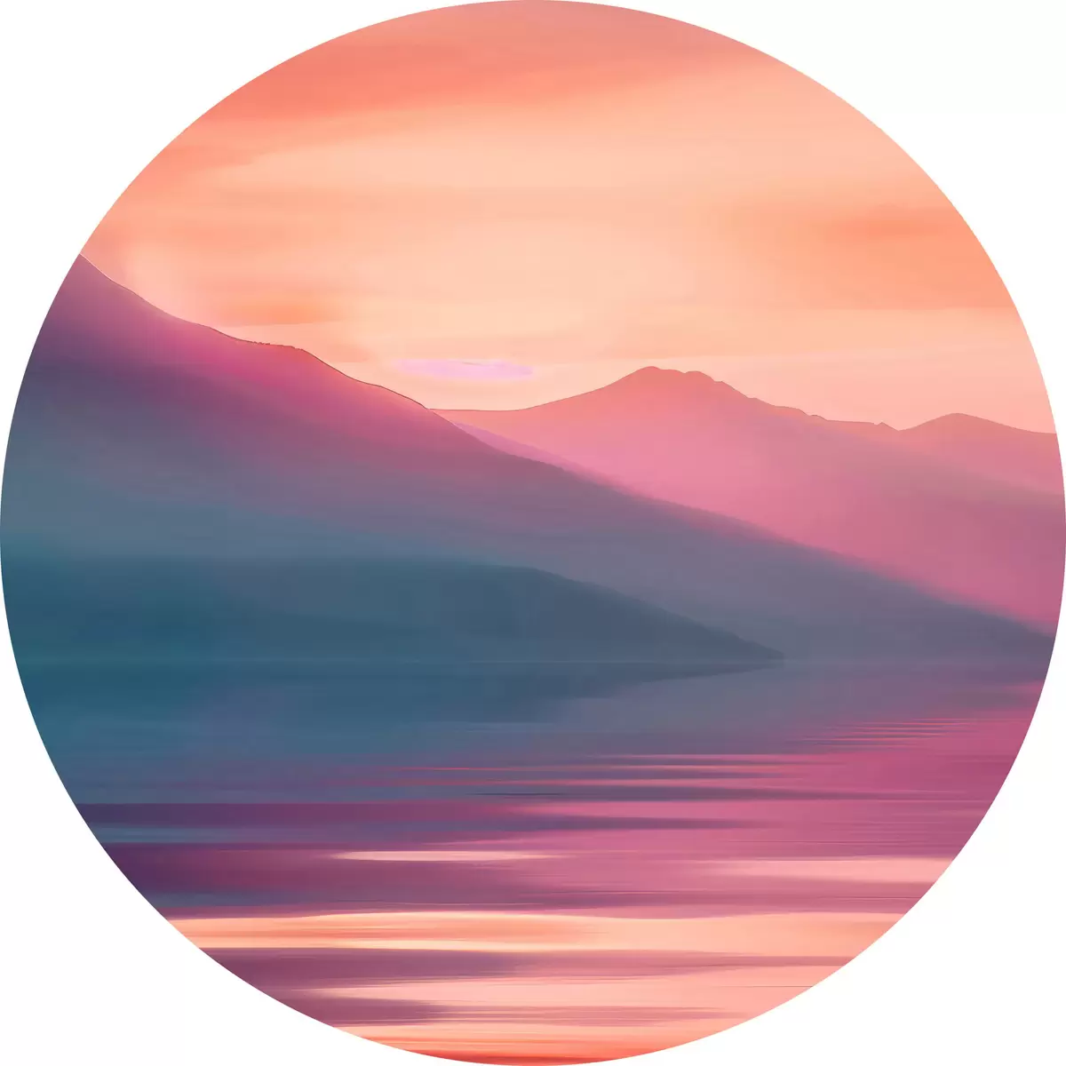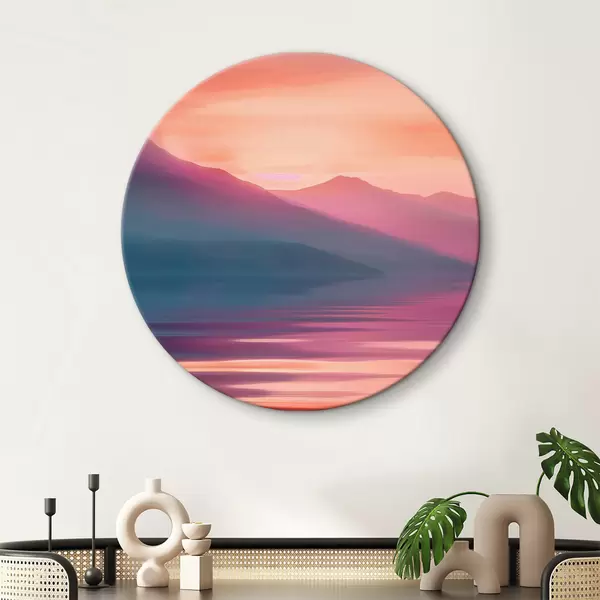 Ronde schilderijen Een watermassa met bergen in de verte r38621