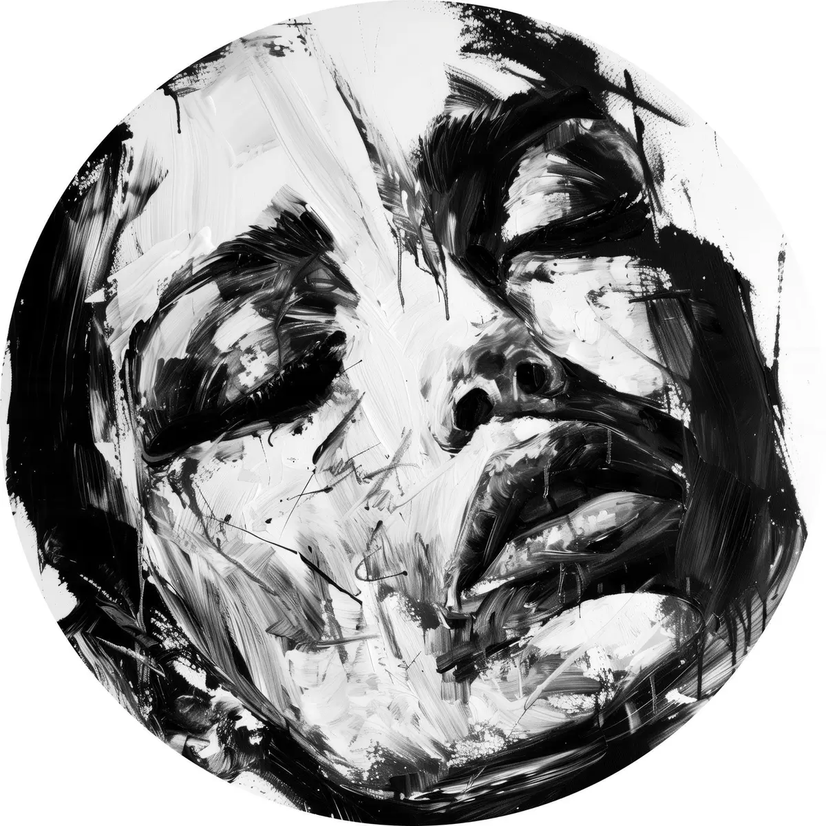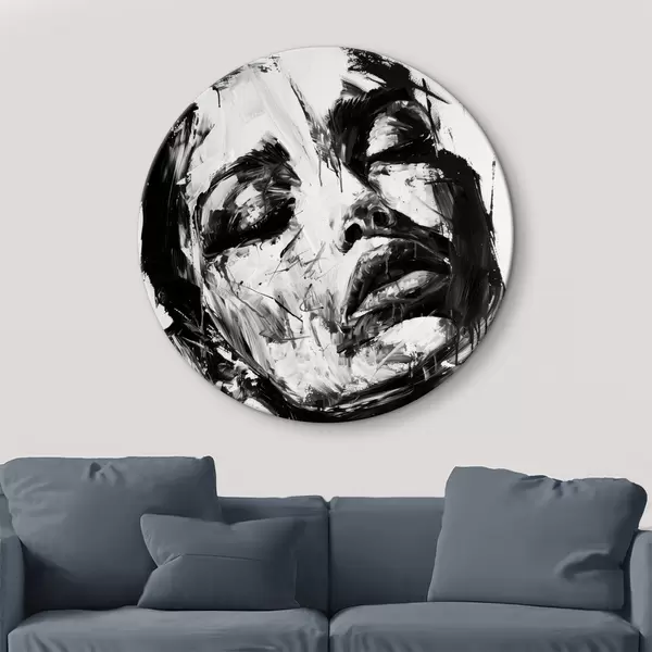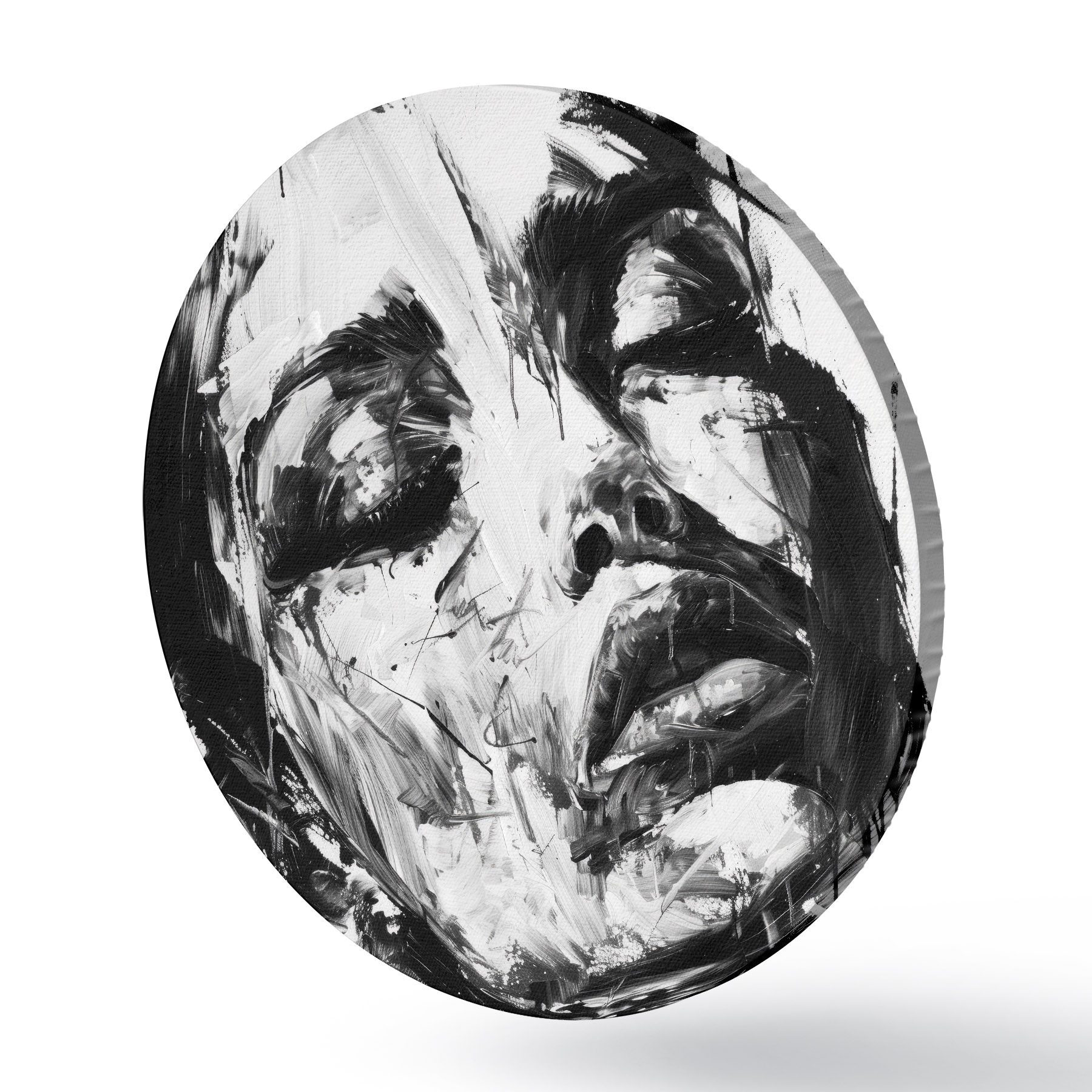 Ronde schilderijen Portret van een vrouw met zwarte penseelstreken r38641