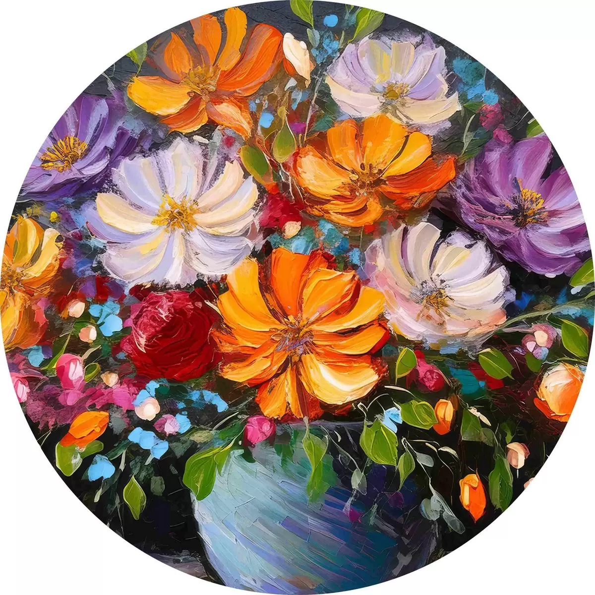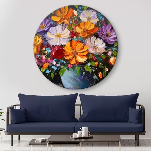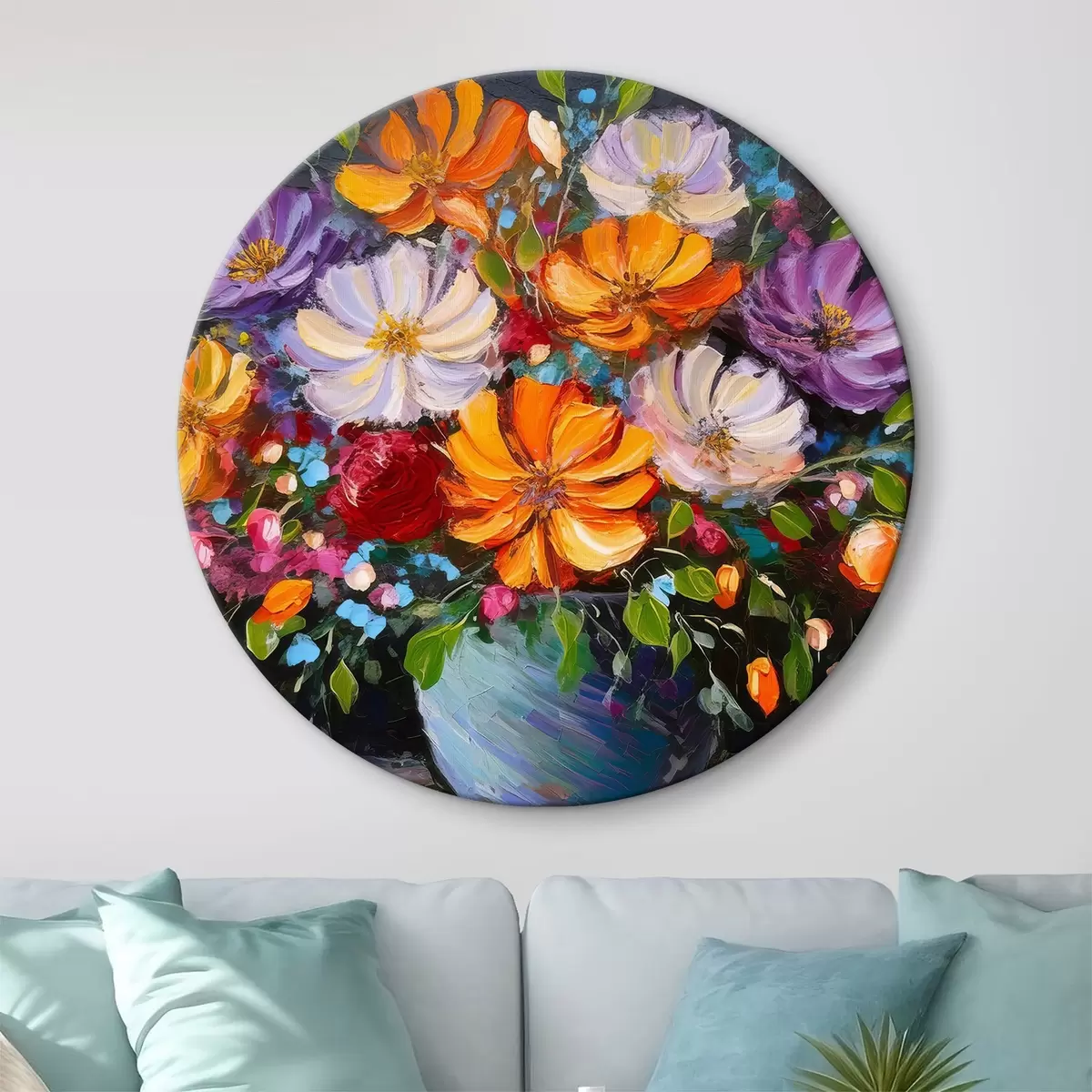 Ronde schilderijen Afbeelding van bloemen in een blauwe vaas r38658
