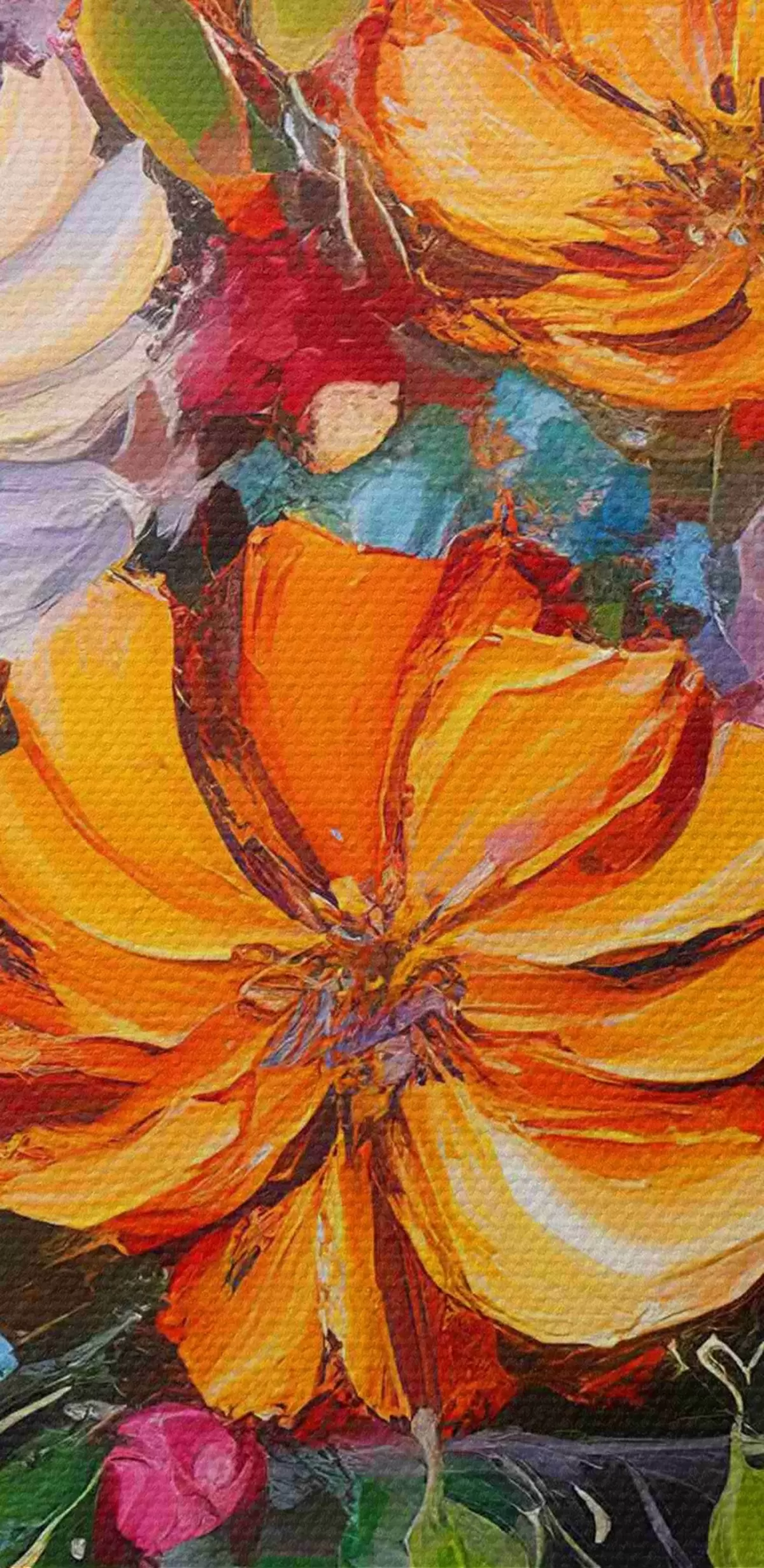 Het schilderij kan direct na ontvangst worden opgehangen. Het schilderij wordt opgespannen op een 2 cm breed houten spieraam.