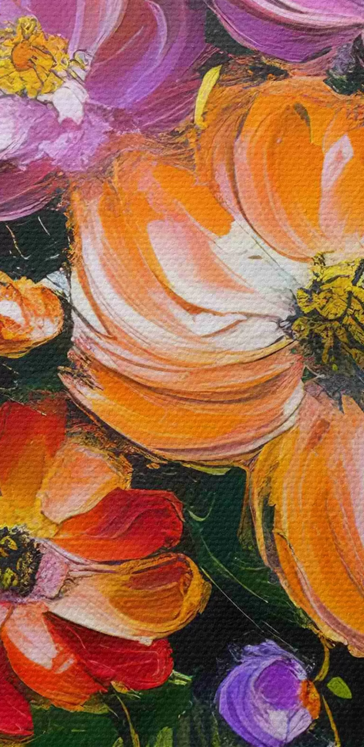 Het schilderij kan direct na ontvangst worden opgehangen. Het schilderij wordt opgespannen op een 2 cm breed houten spieraam.
