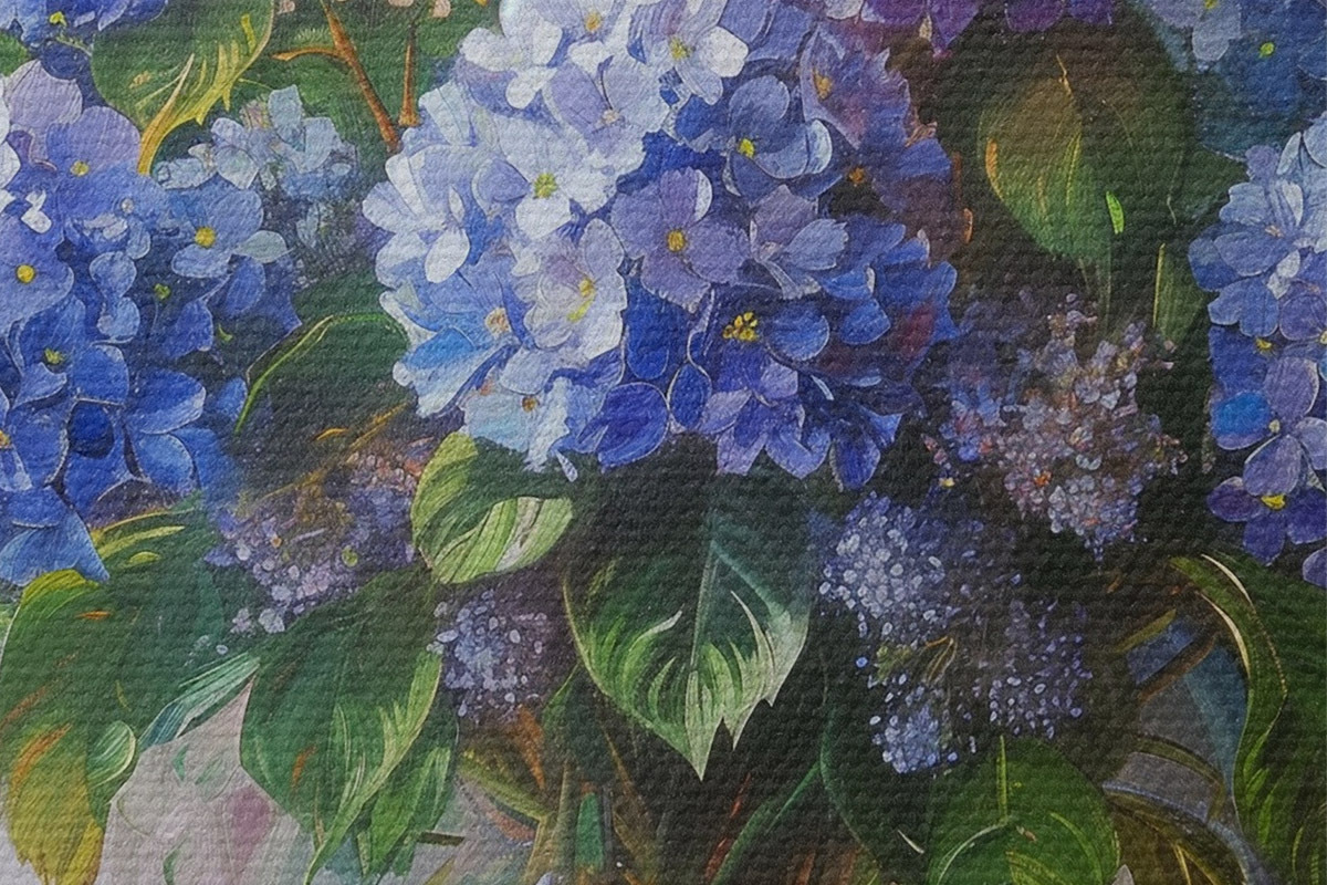 Afbeelding Blauwe hortensia's op tafel Nr r38709