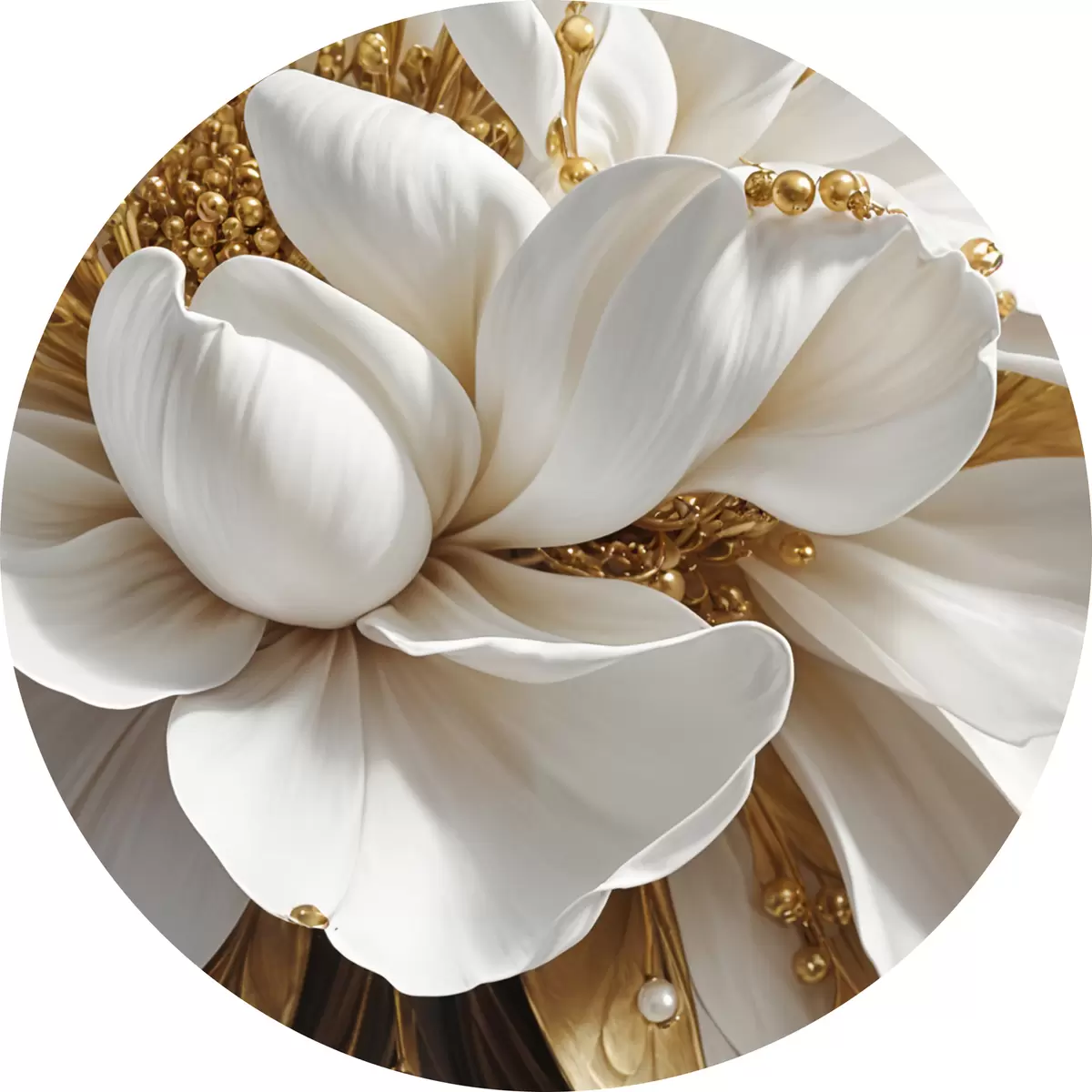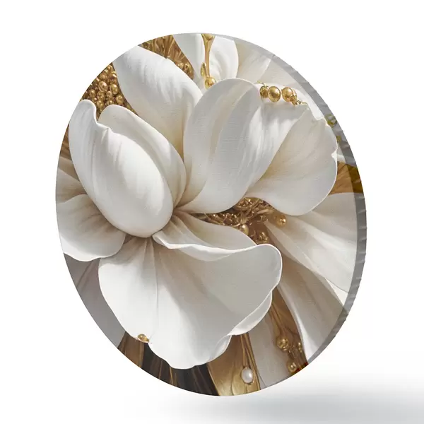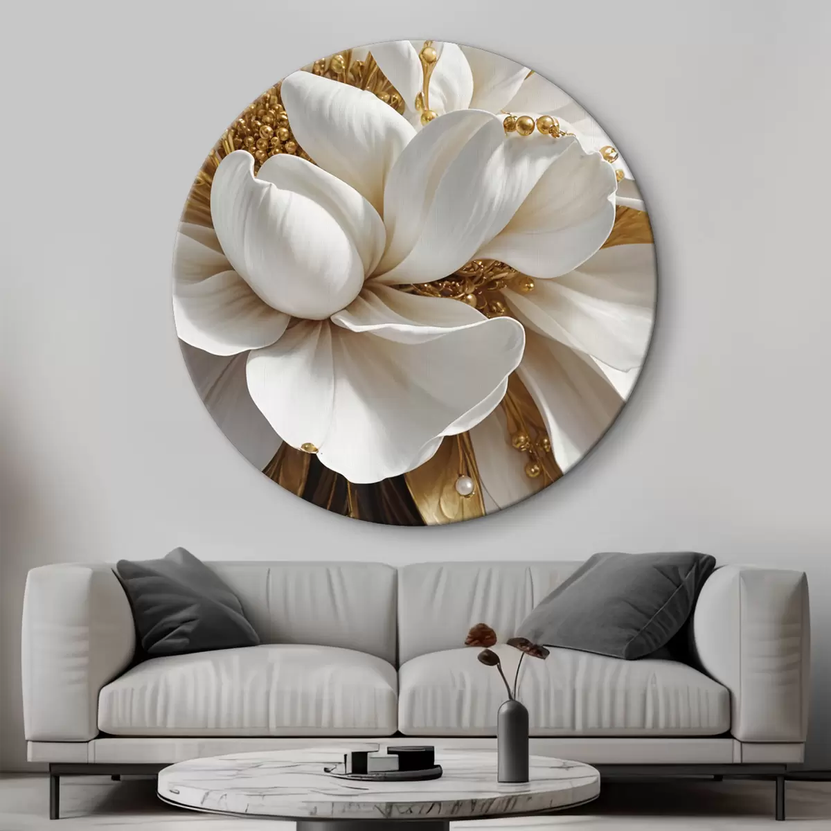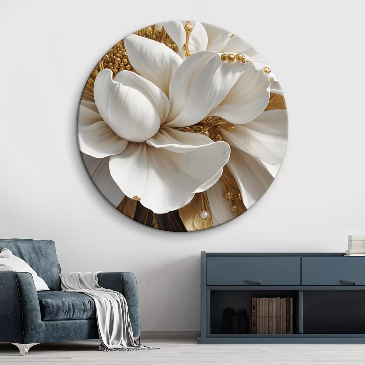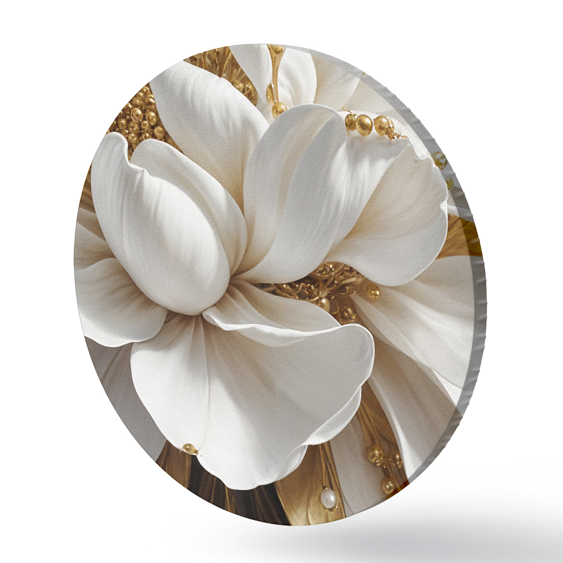 Ronde schilderijen Bloemblaadjes van de witte grote bloem r38762