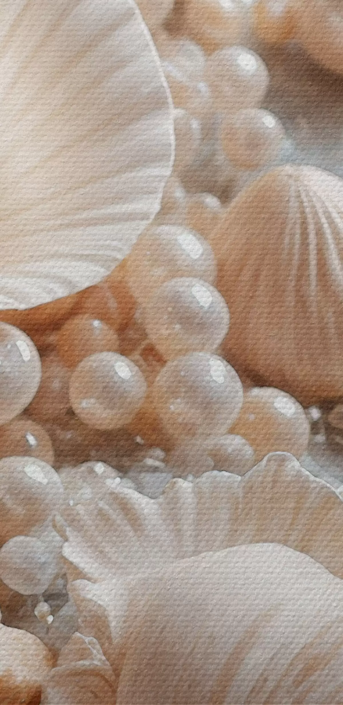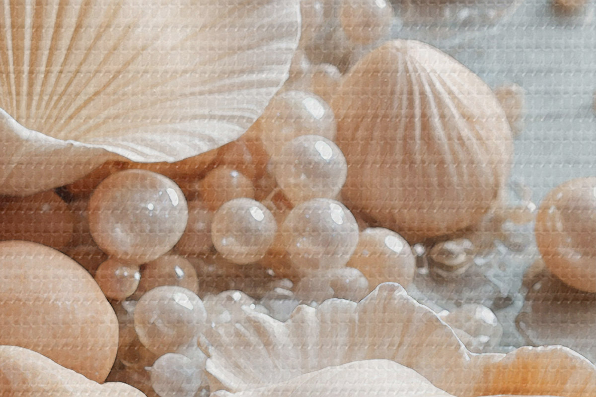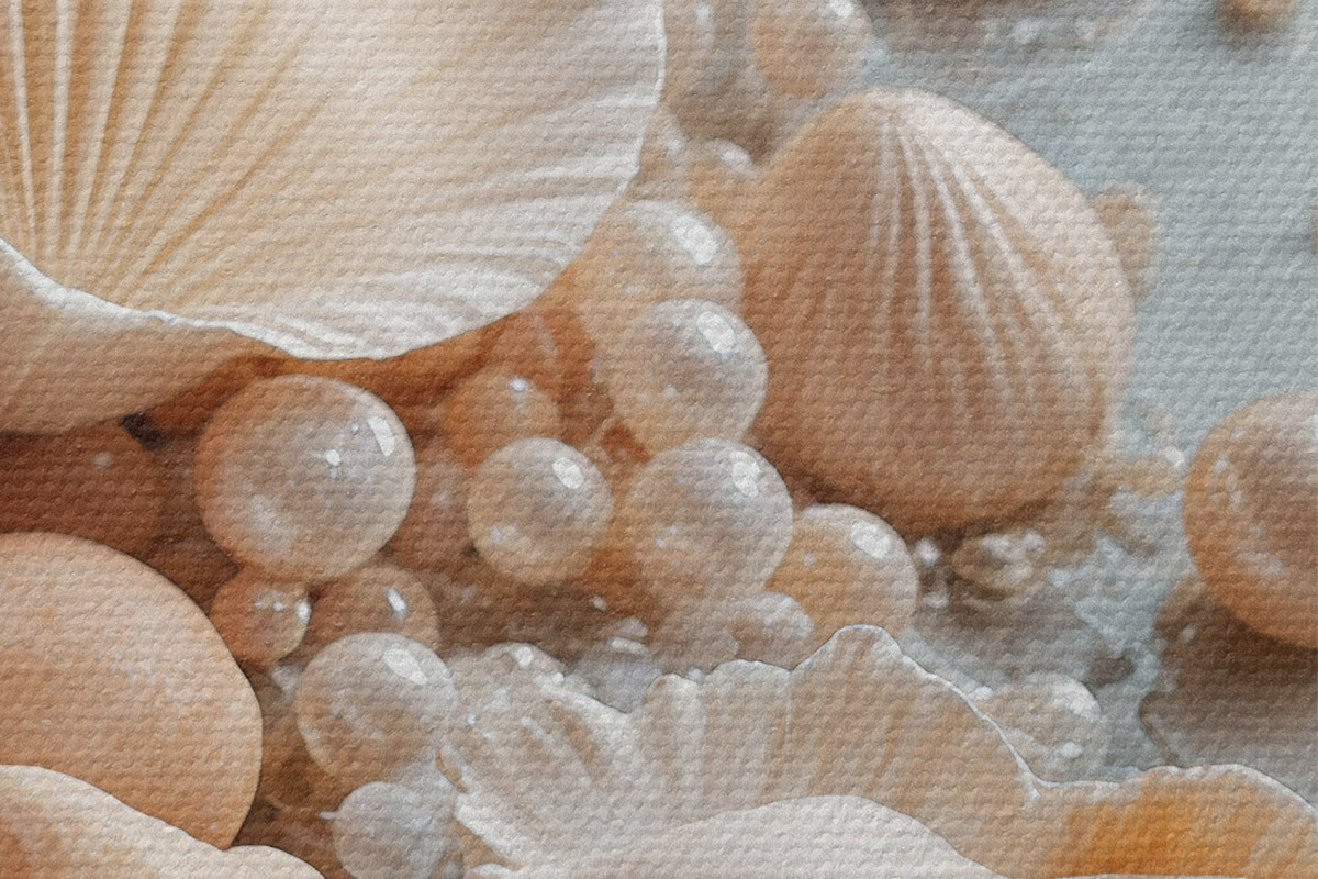 Afbeelding Geassorteerde schelpen en parels op een lichtblauwe achtergrond Nr r38769