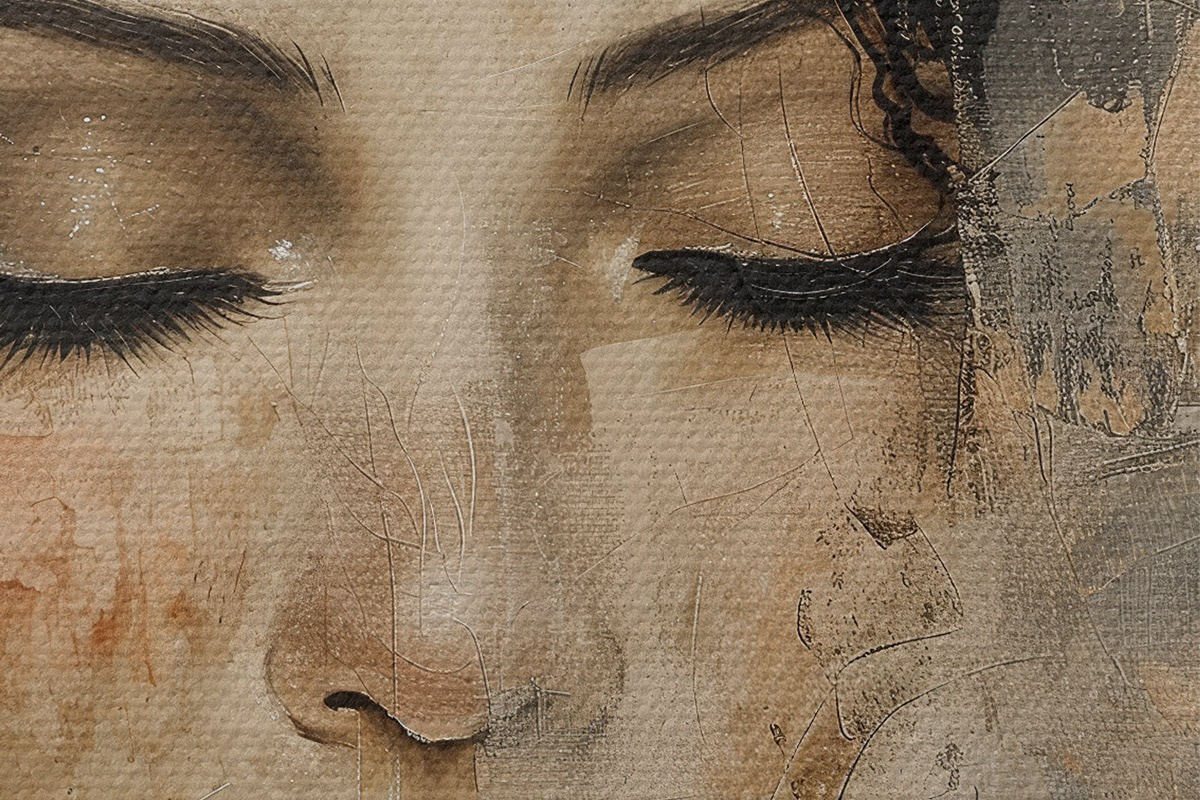 Het schilderij kan voorzichtig worden schoongeveegd met een droge zachte doek of spons; het wordt niet aanbevolen om natte producten te gebruiken. Het gebruik van een vochtige spons is alleen toegestaan als het schilderij gevernist is.