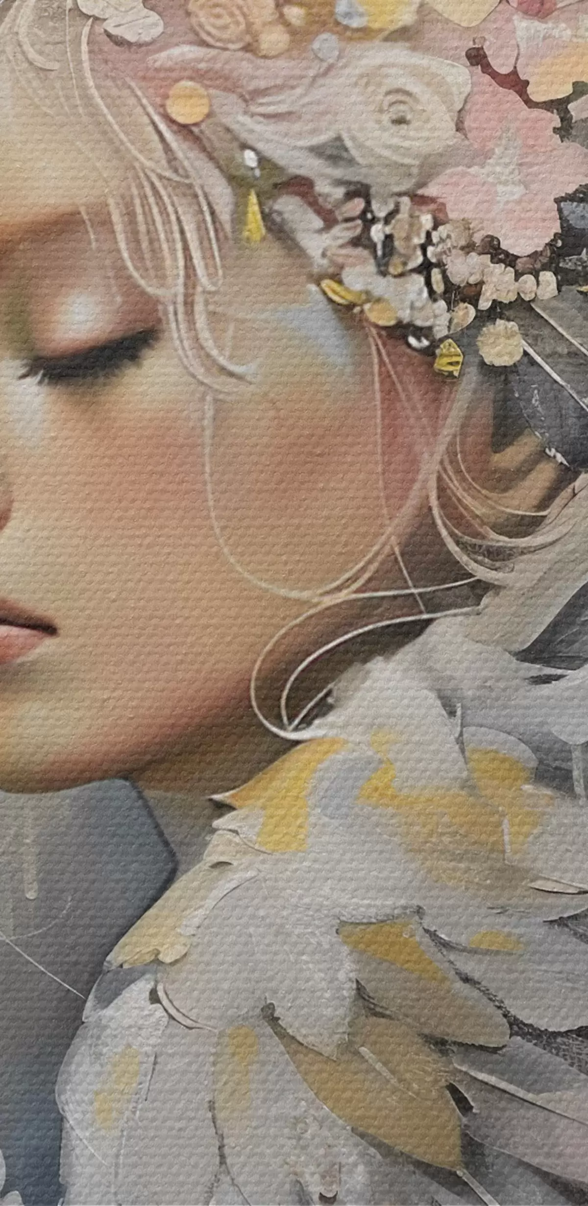 Er zijn drie soorten materiaal te bestellen: Economic Canvas - een dicht en duurzaam materiaal voor digitaal printen, identiek aan schildersdoek, waterdicht oppervlak, realistische weergave van details, materiaal met gemiddelde korrel. Premium Canvas - de textuur lijkt op die van schildersdoek (verweven kleine draden). Zachte, gedetailleerde reproductie van de afbeelding op een mat oppervlak. Eco-Premium - hoogwaardige 100% katoenen stof. Dankzij de natuurlijke katoenvezels is het materiaal duurzaam en slijtvast. Uitstekende kleurweergave en detail.