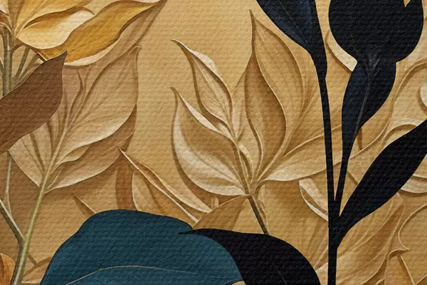 Afbeelding Abstracte bloemencompositie met grote bladeren en donkere silhouetten Nr r38822