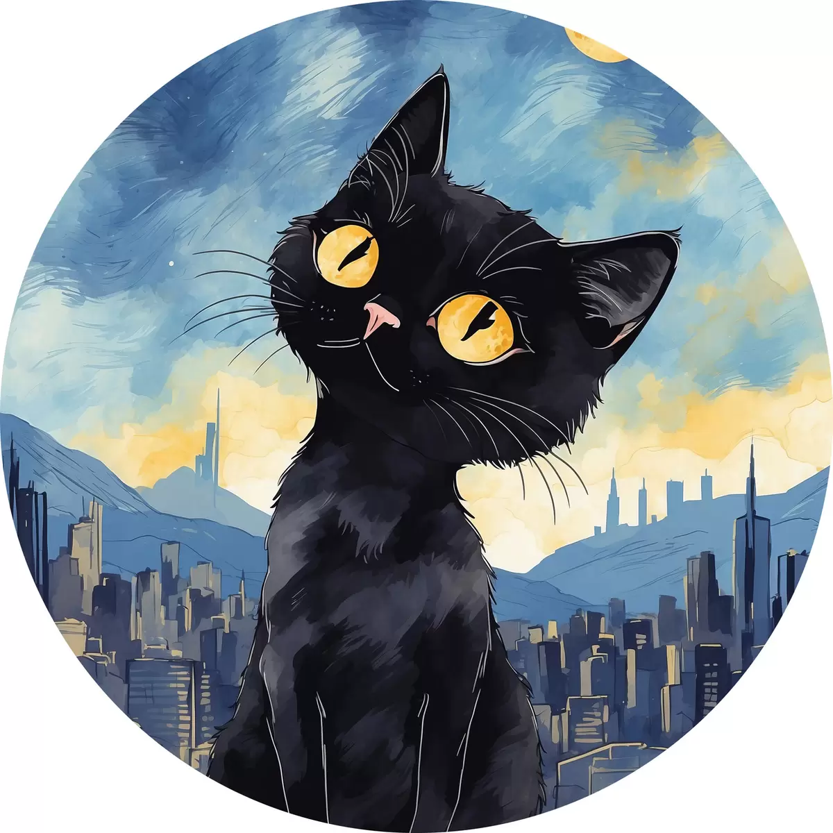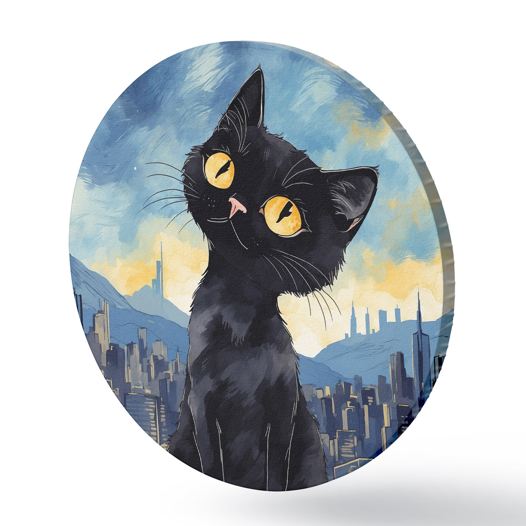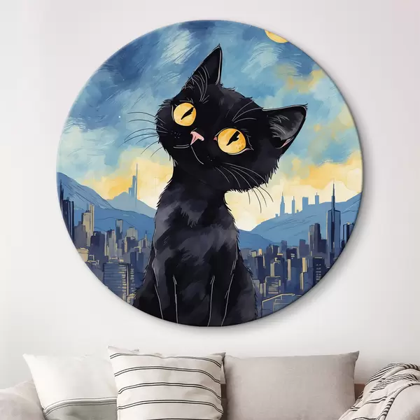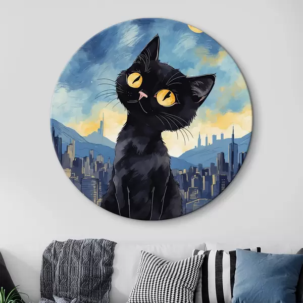 Ronde schilderijen Kat op de achtergrond van een stad r38861