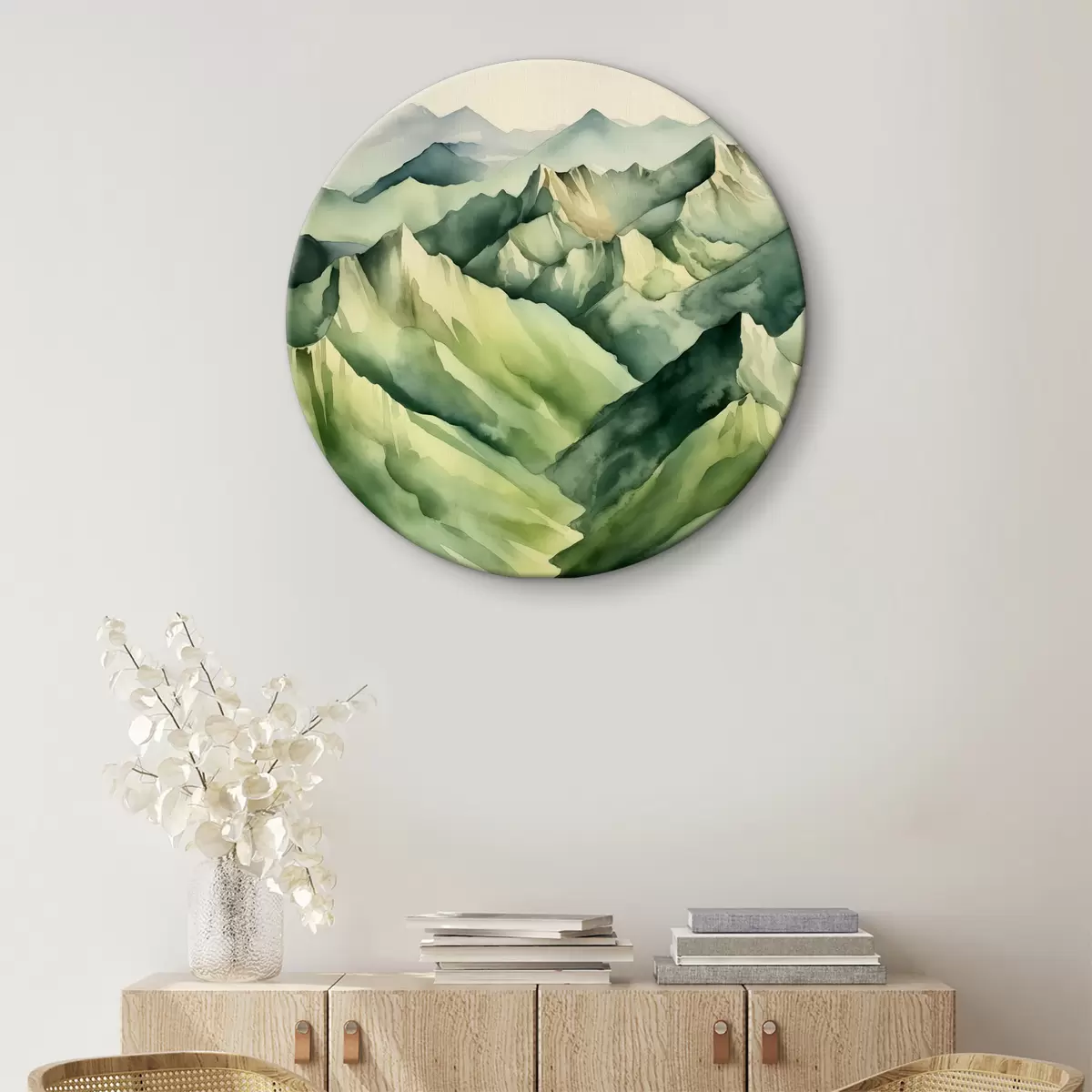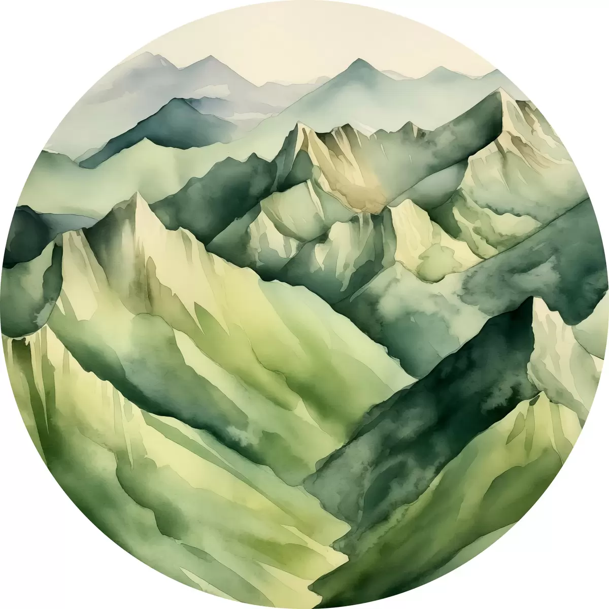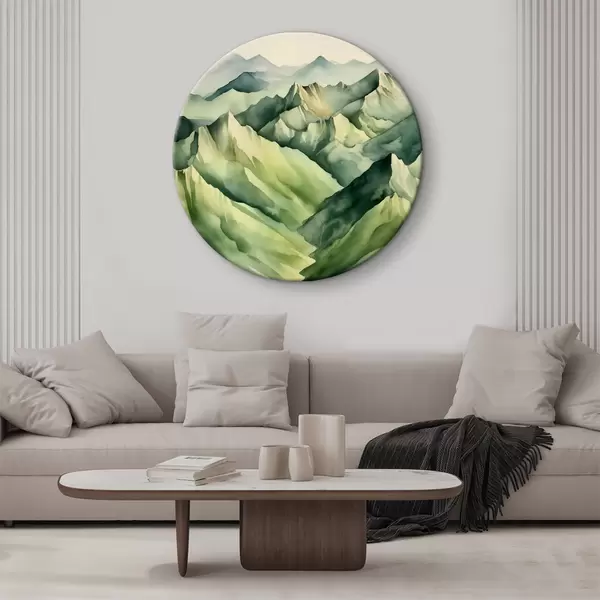 Ronde schilderijen Etherische lagen van serene bergtinten r38909