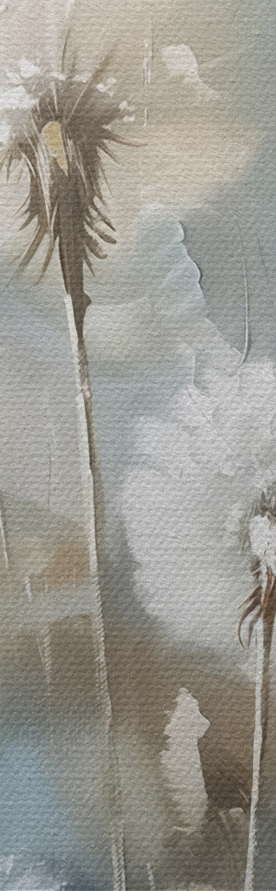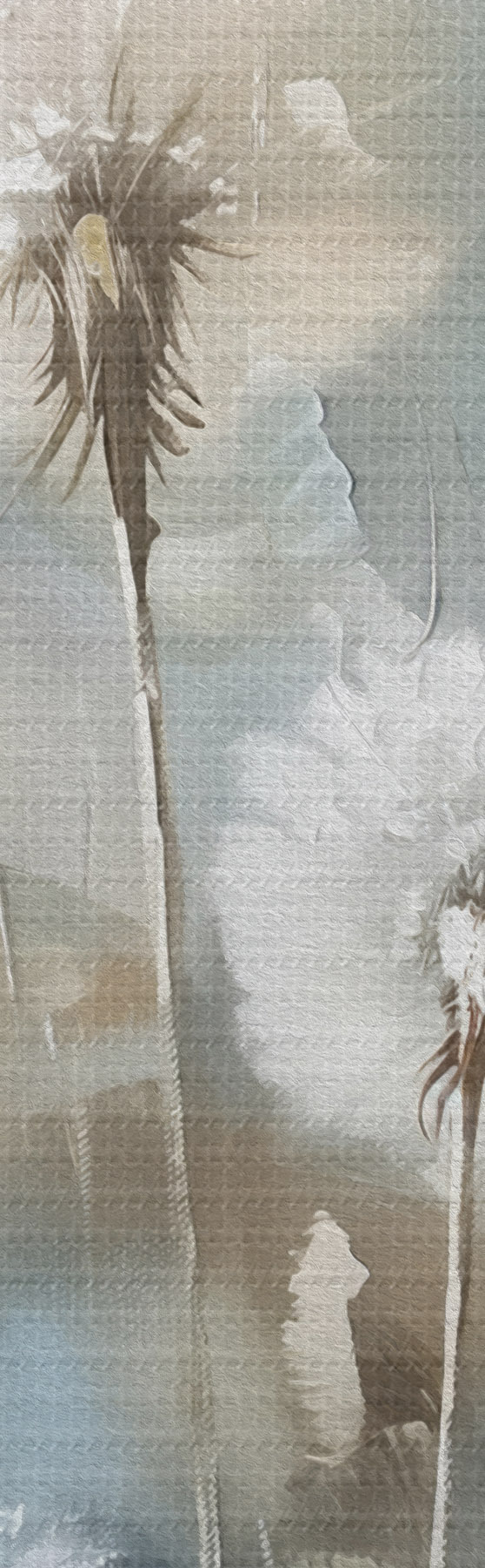 Het schilderij kan voorzichtig worden schoongeveegd met een droge zachte doek of spons; het wordt niet aanbevolen om natte producten te gebruiken. Het gebruik van een vochtige spons is alleen toegestaan als het schilderij gevernist is.