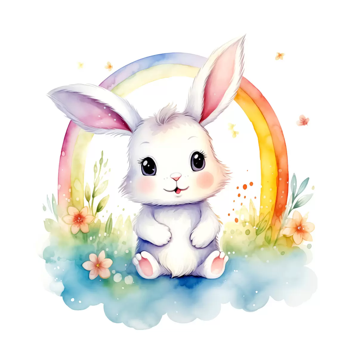 Afbeelding Konijntje onder een grillige regenboog Nr r38940
