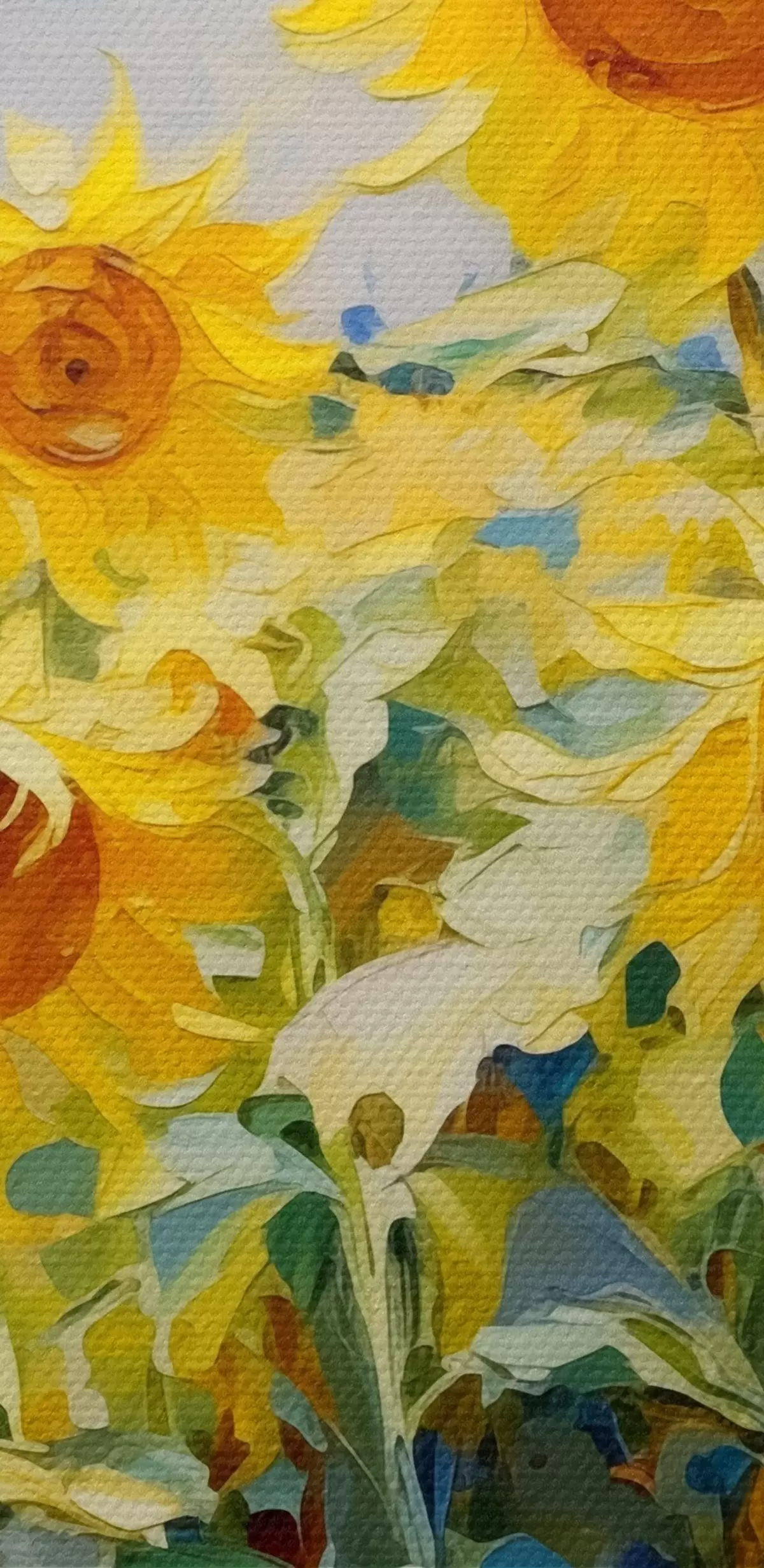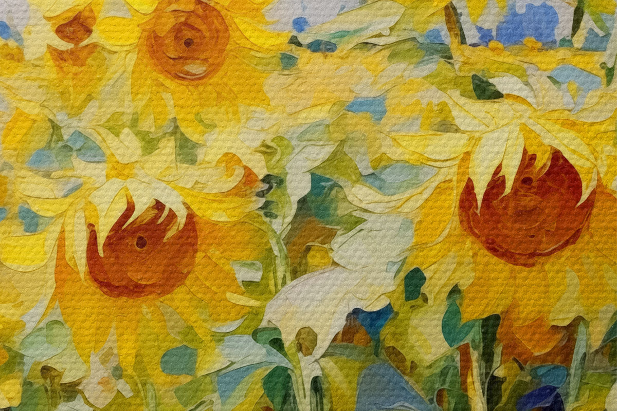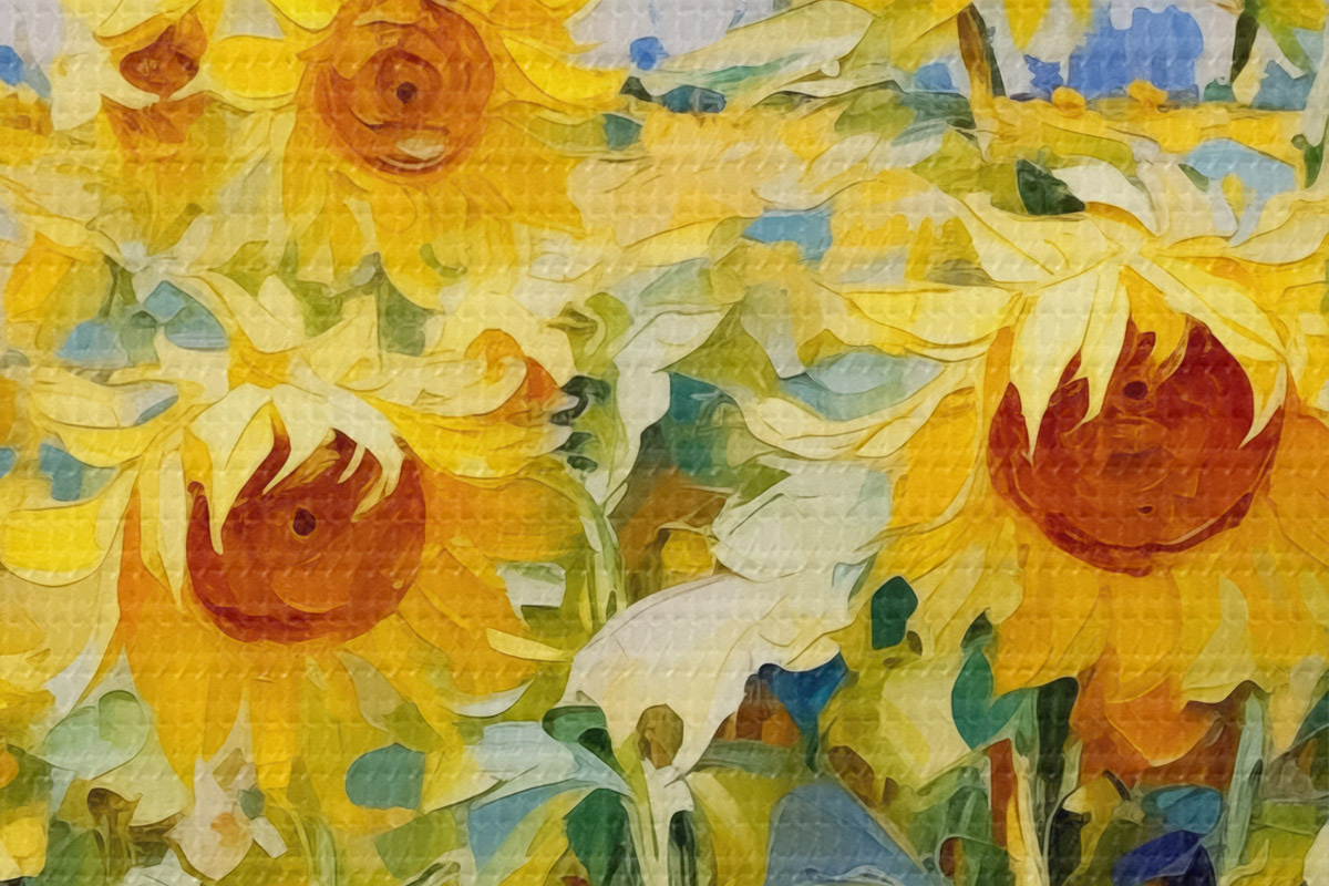 Afbeelding Veld met zonnebloemen olieverfschilderij, gele en blauwe kleur Nr r38953