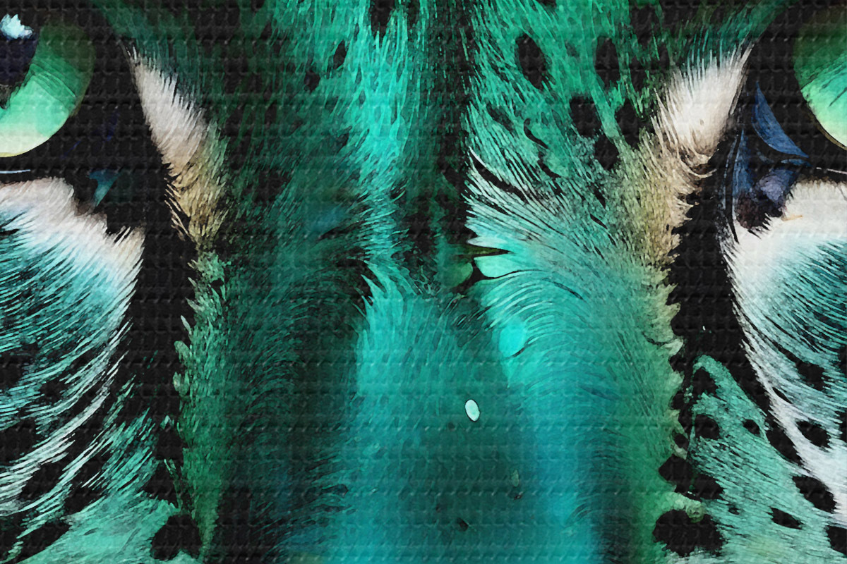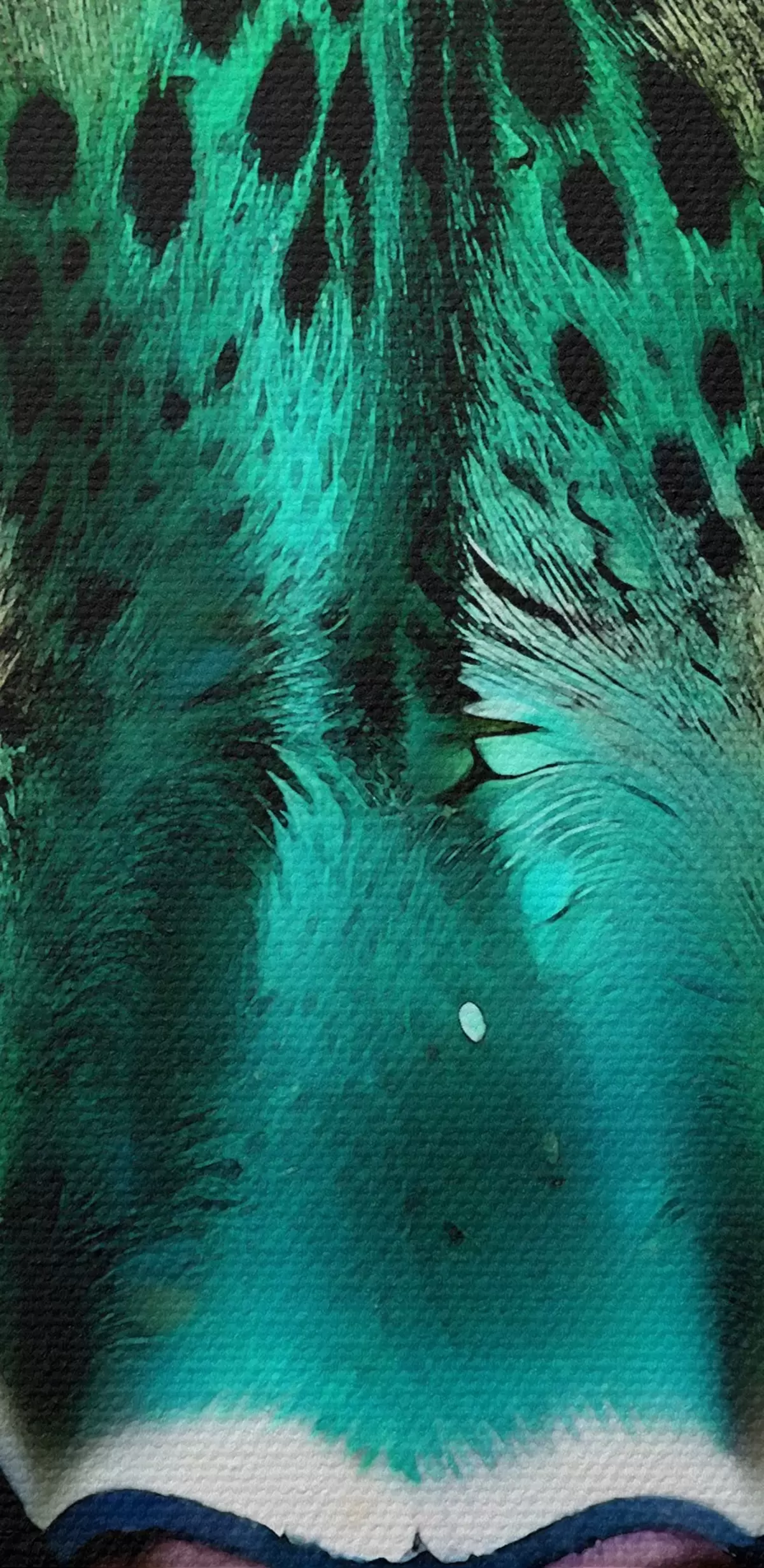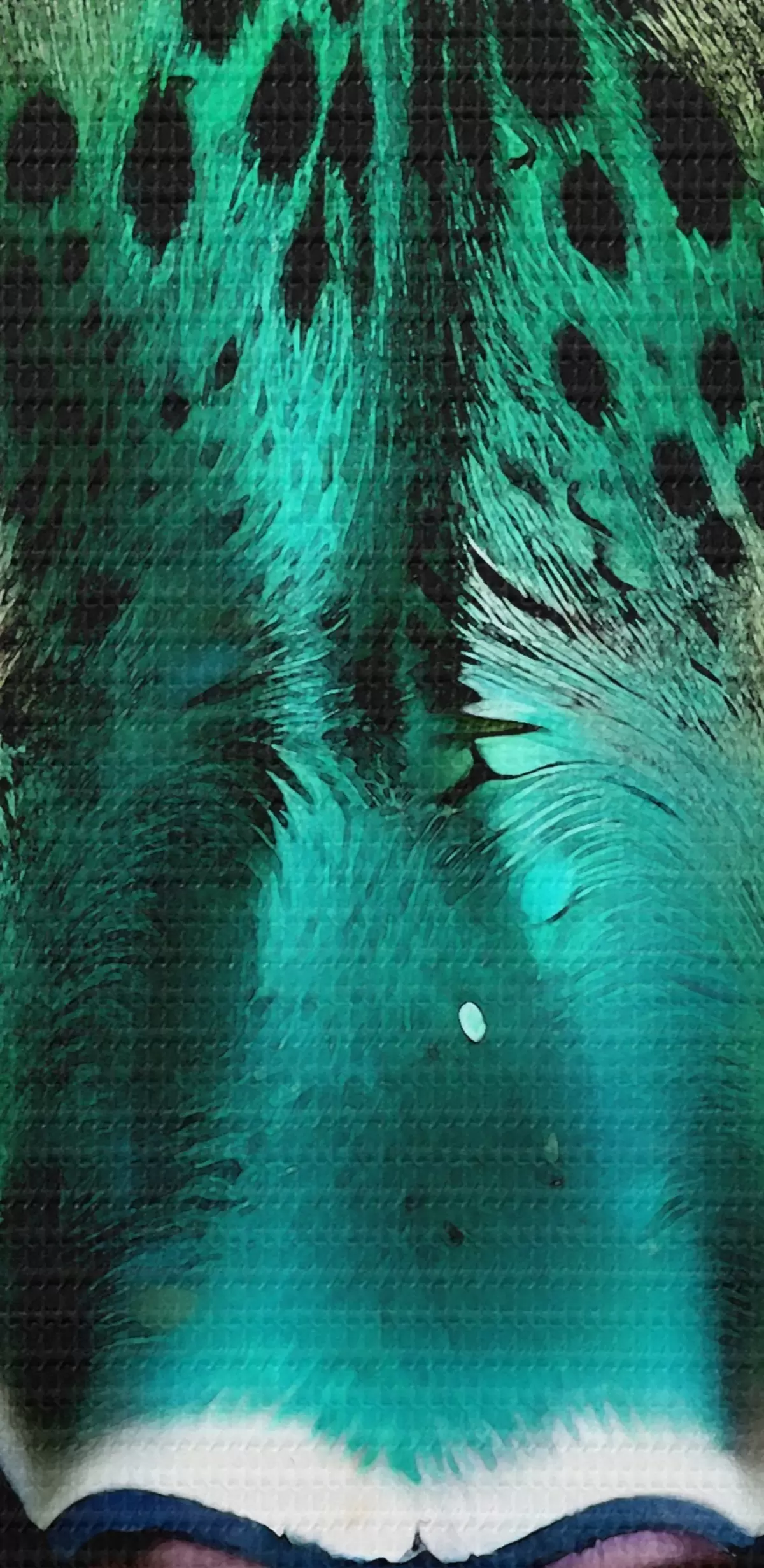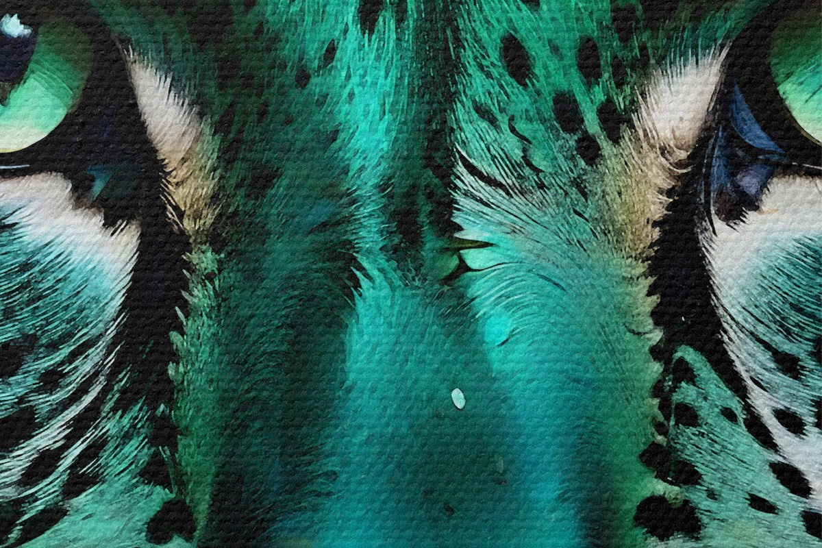 Afbeelding Een close-upportret van een fel groenogig luipaard met levendige turkoois en zwart gevlekte vacht Nr r38979