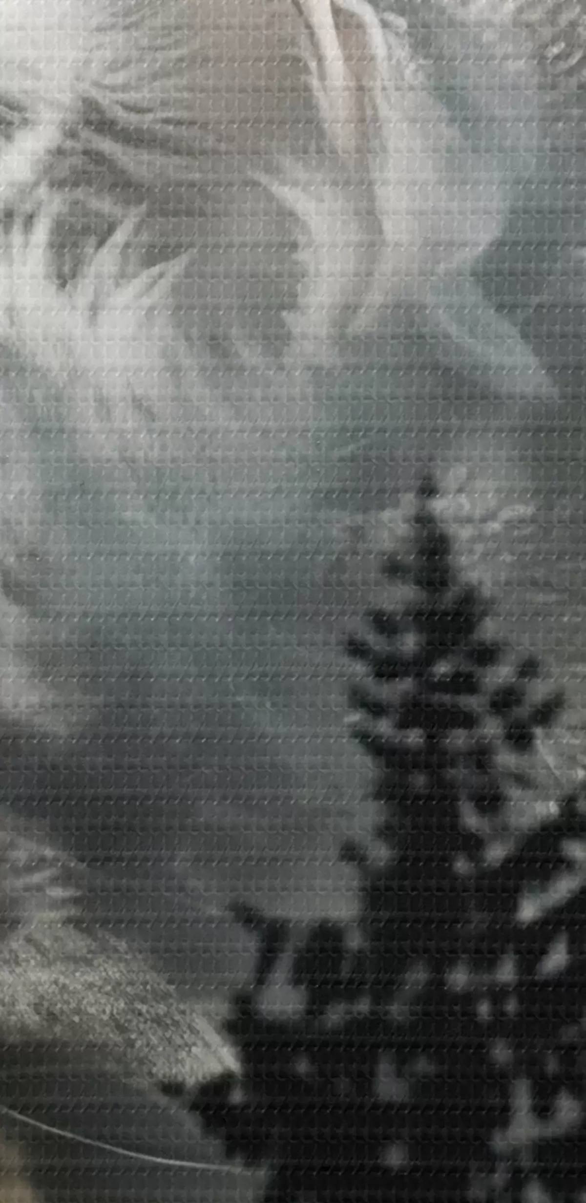 Om het doek op te spannen op spielatten zonder de afbeelding te beschadigen, gebruiken we gespiegeld beeld.