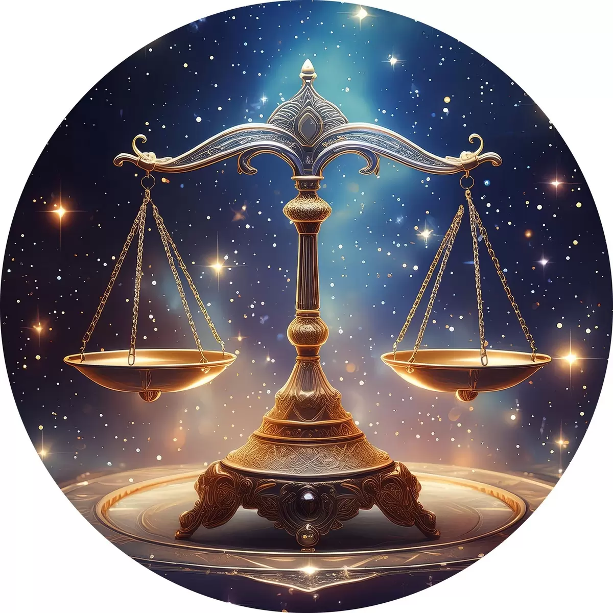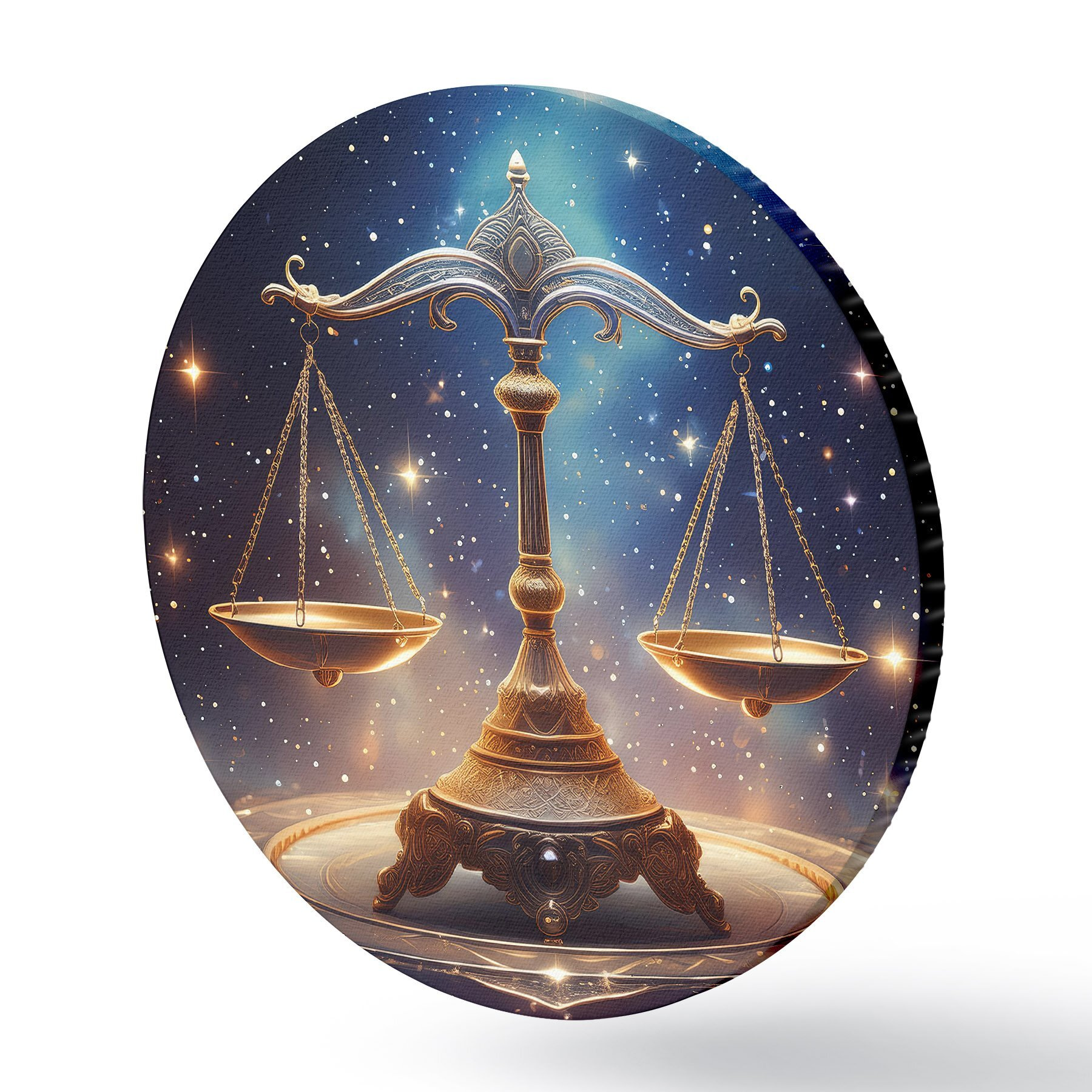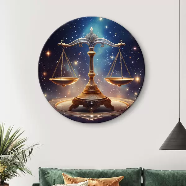 Ronde schilderijen Weegschaal tegen de sterrenhemel r39056