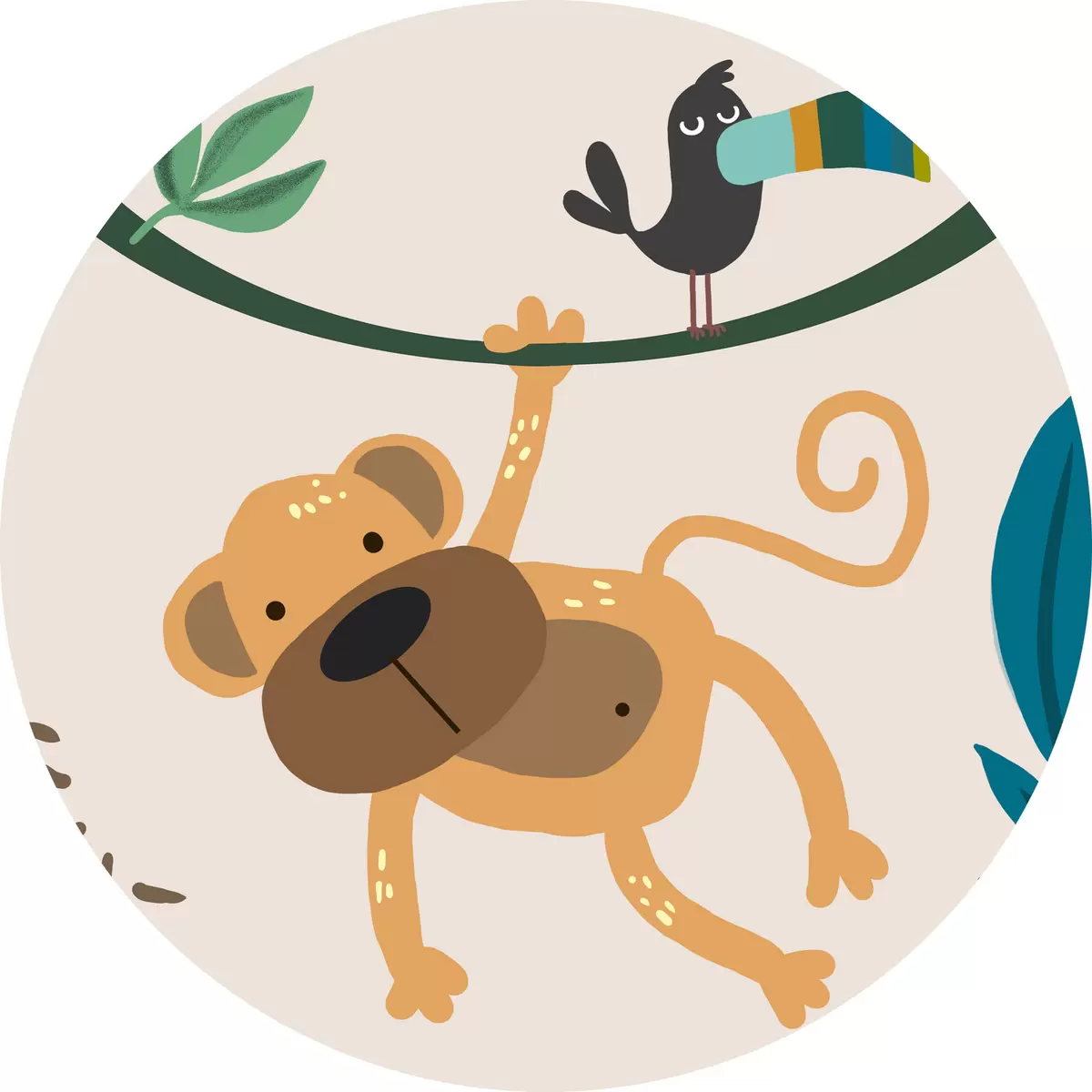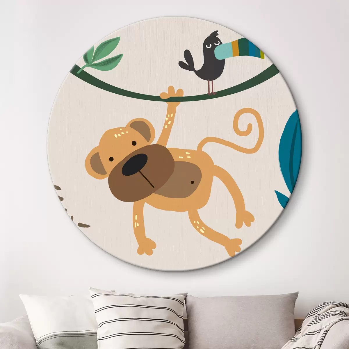 Ronde schilderijen Aap in de jungle in safaristijl, boho r39094