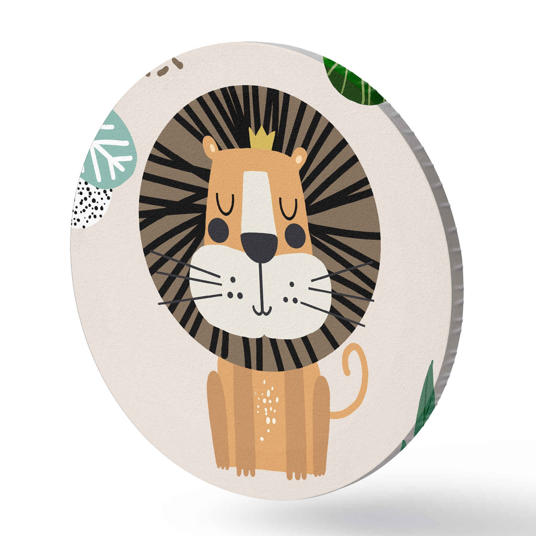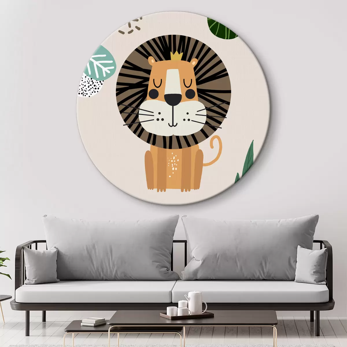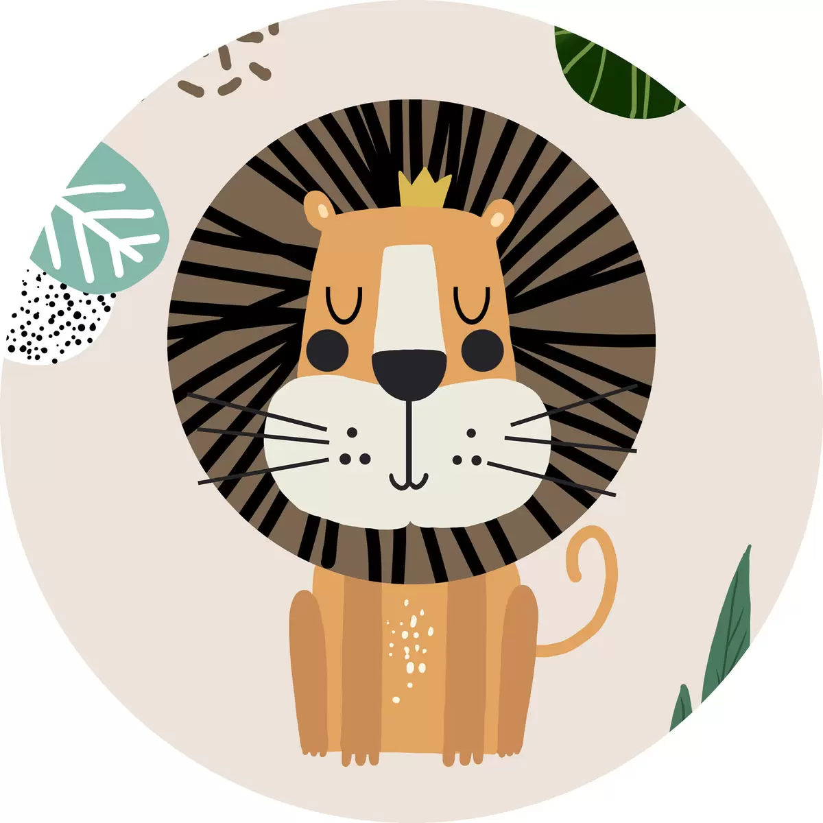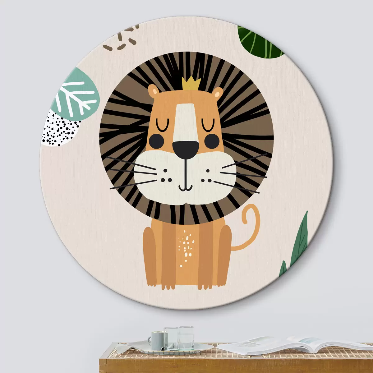 Ronde schilderijen Leeuw in de jungle in safaristijl, boho r39095