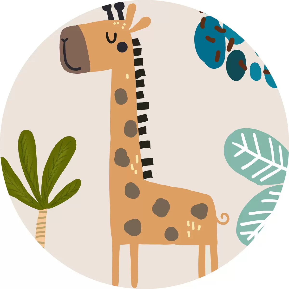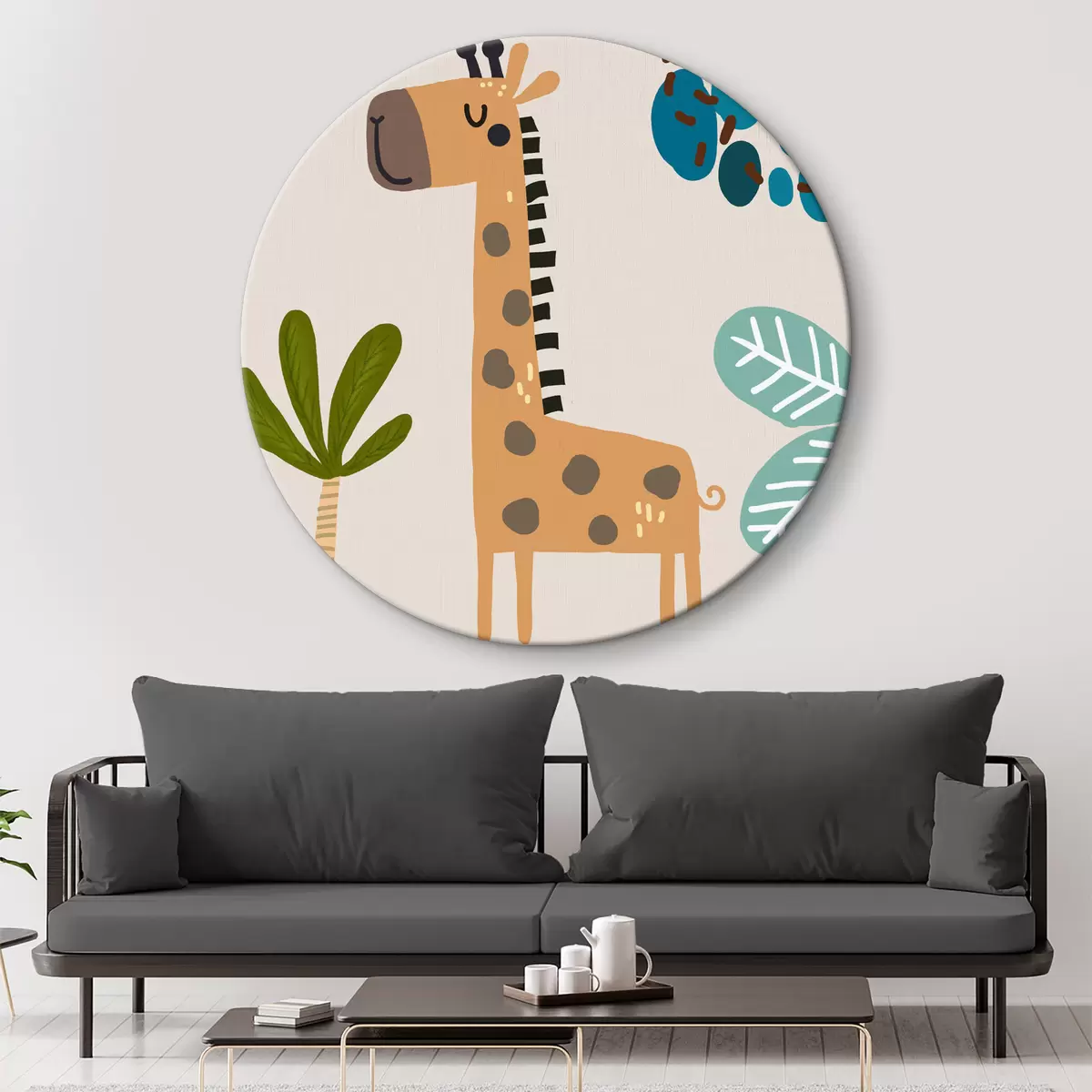 Ronde schilderijen Giraf in de jungle in safaristijl, boho r39096