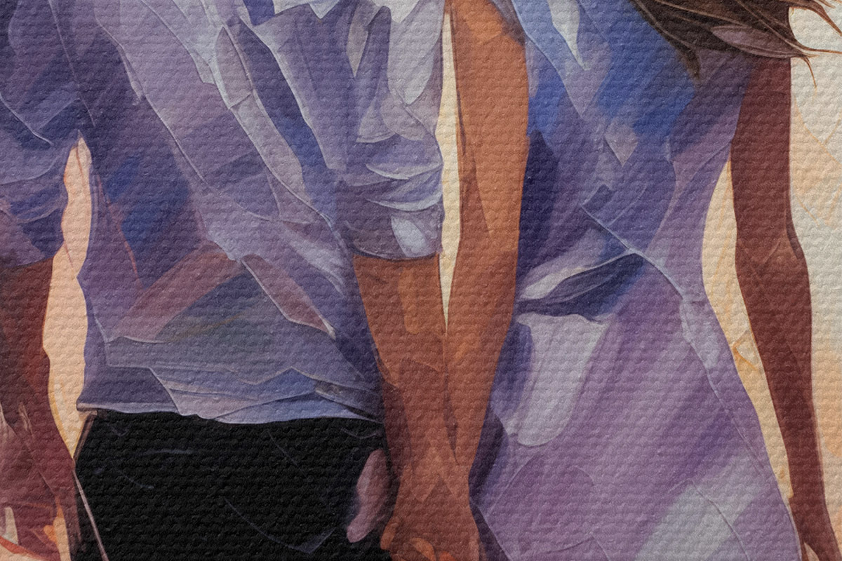 Er zijn drie soorten materiaal te bestellen: Economic Canvas - een dicht en duurzaam materiaal voor digitaal printen, identiek aan schildersdoek, waterdicht oppervlak, realistische weergave van details, materiaal met gemiddelde korrel. Premium Canvas - de textuur lijkt op die van schildersdoek (verweven kleine draden). Zachte, gedetailleerde reproductie van de afbeelding op een mat oppervlak. Eco-Premium - hoogwaardige 100% katoenen stof. Dankzij de natuurlijke katoenvezels is het materiaal duurzaam en slijtvast. Uitstekende kleurweergave en detail.