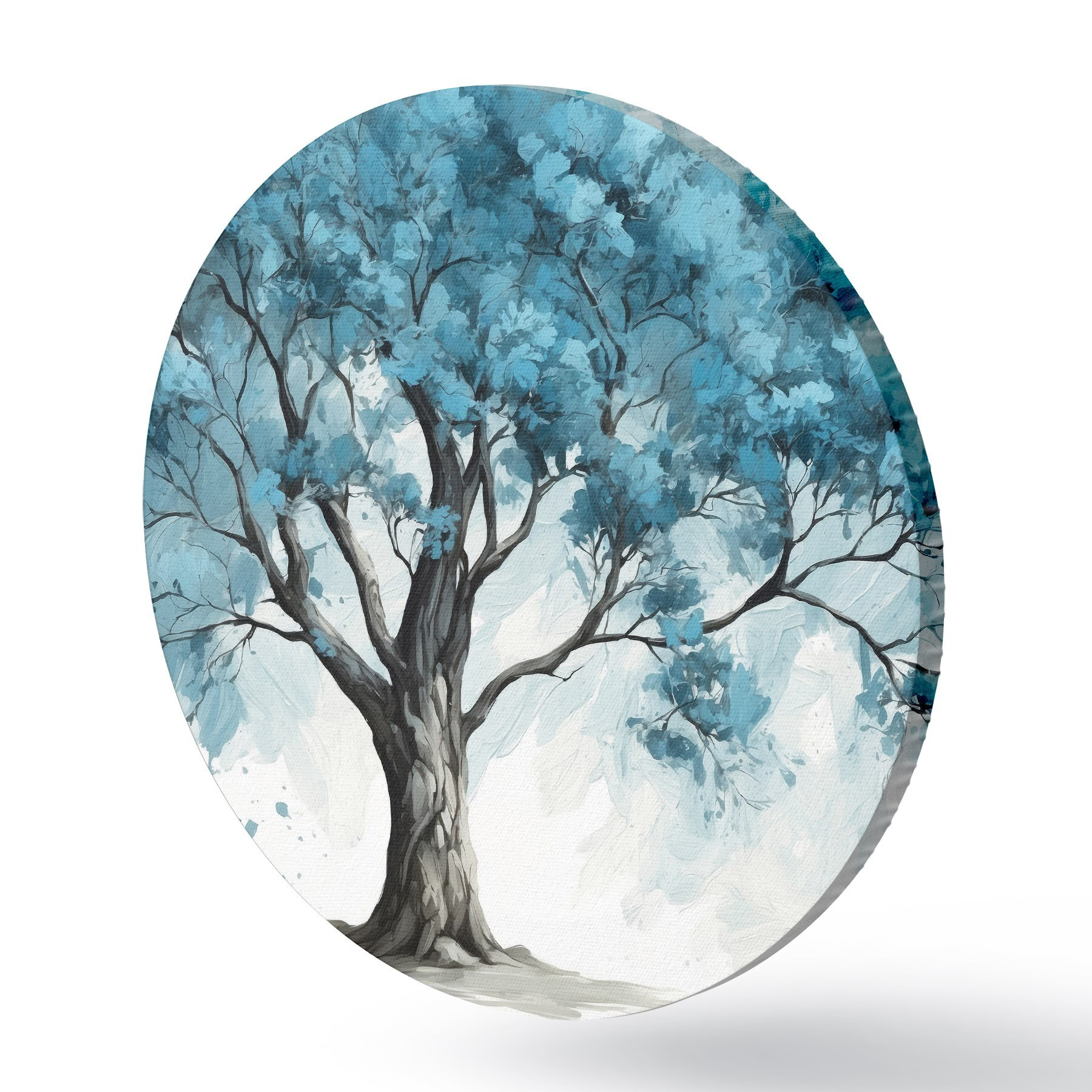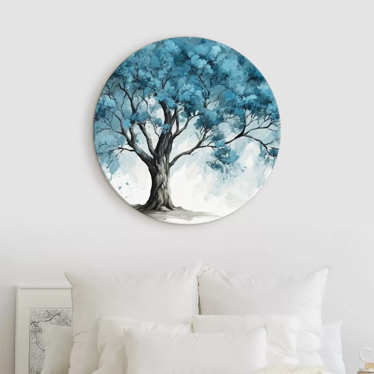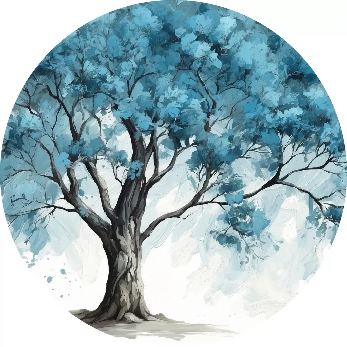 Ronde schilderijen Boom met blauwe bladeren op witte achtergrond r39153