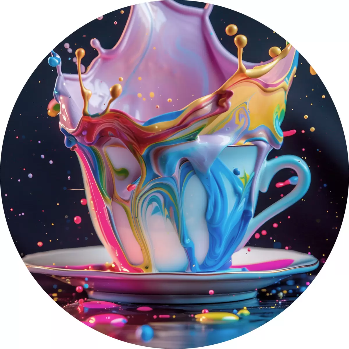 Ronde schilderijen Heldere spatten in een kopje r39218