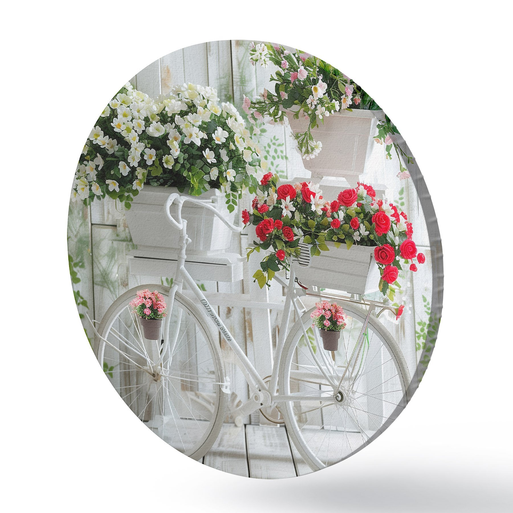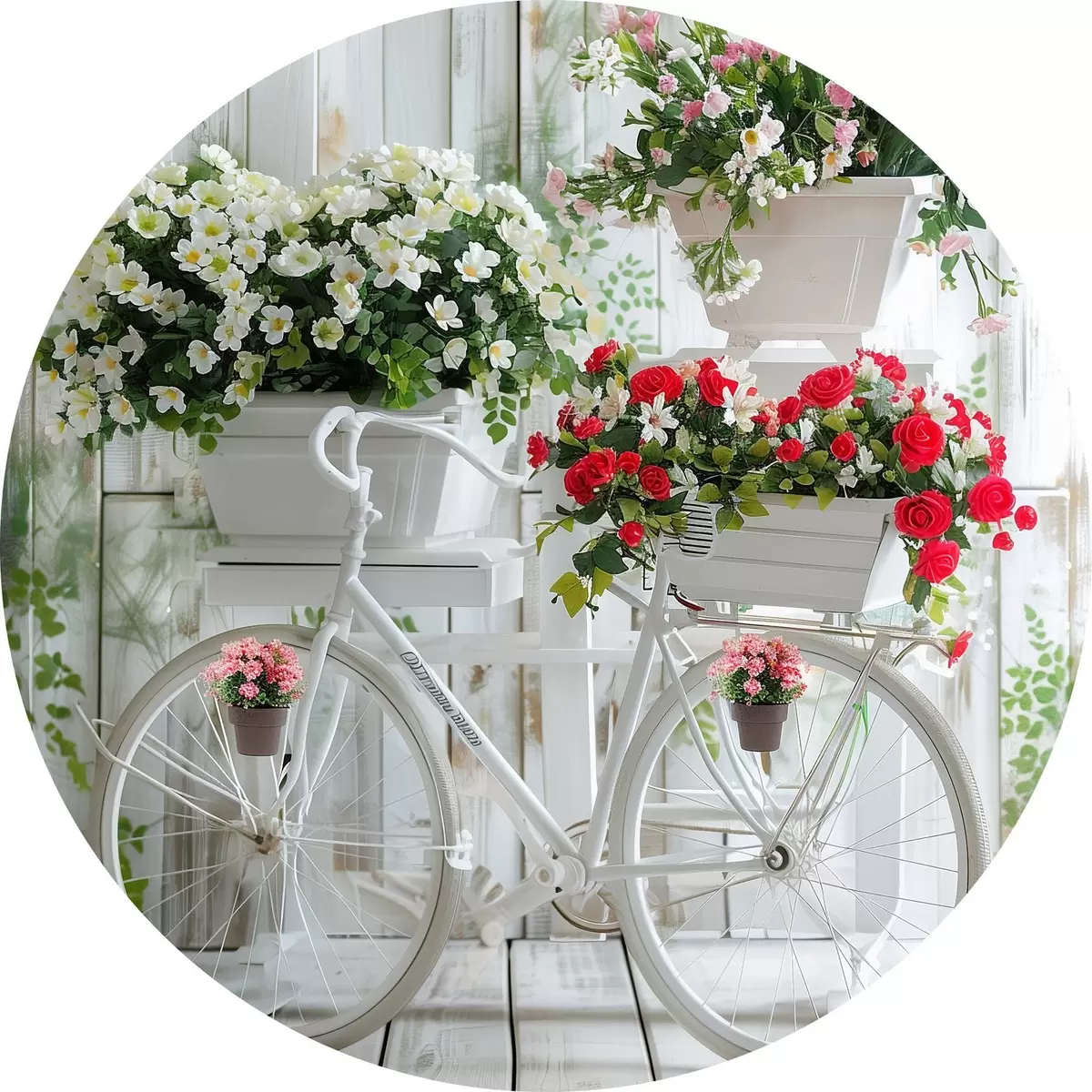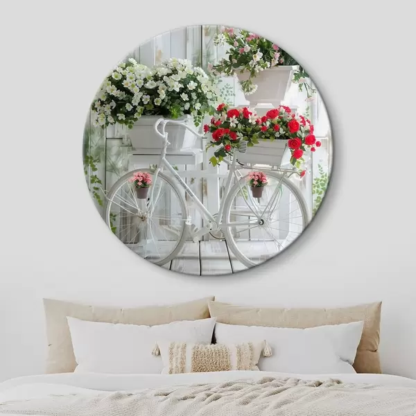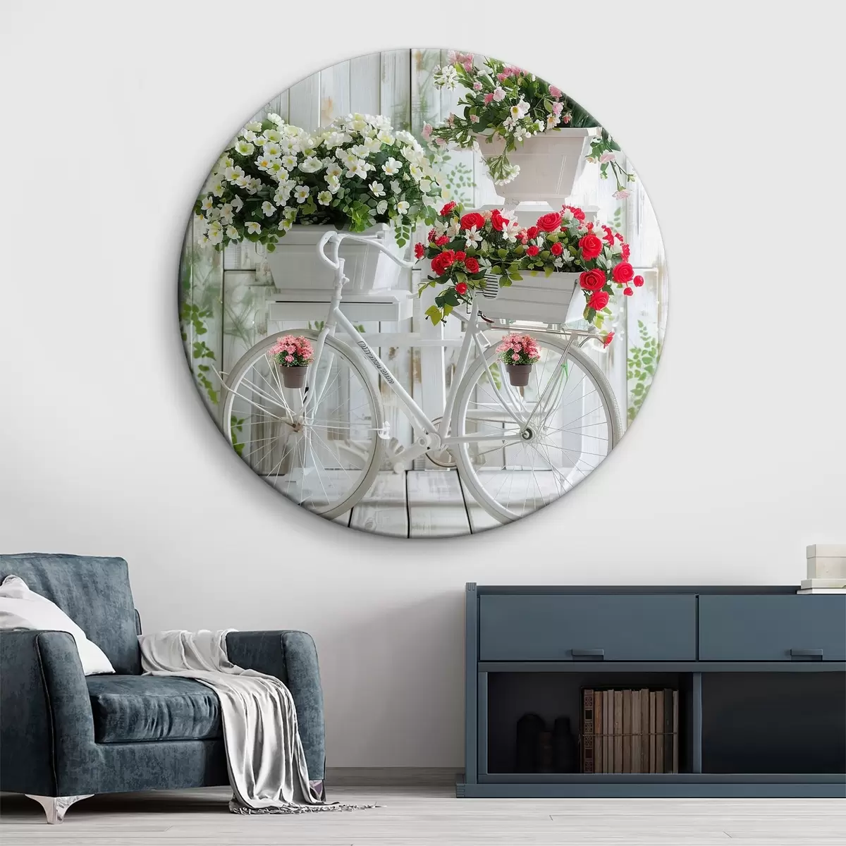 Ronde schilderijen Fiets- en bloemenmand in Provençaalse stijl r39242