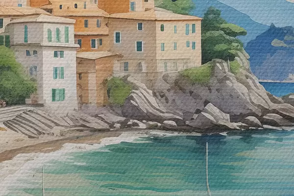 Afbeelding een stad aan zee in de zomer Nr r39299