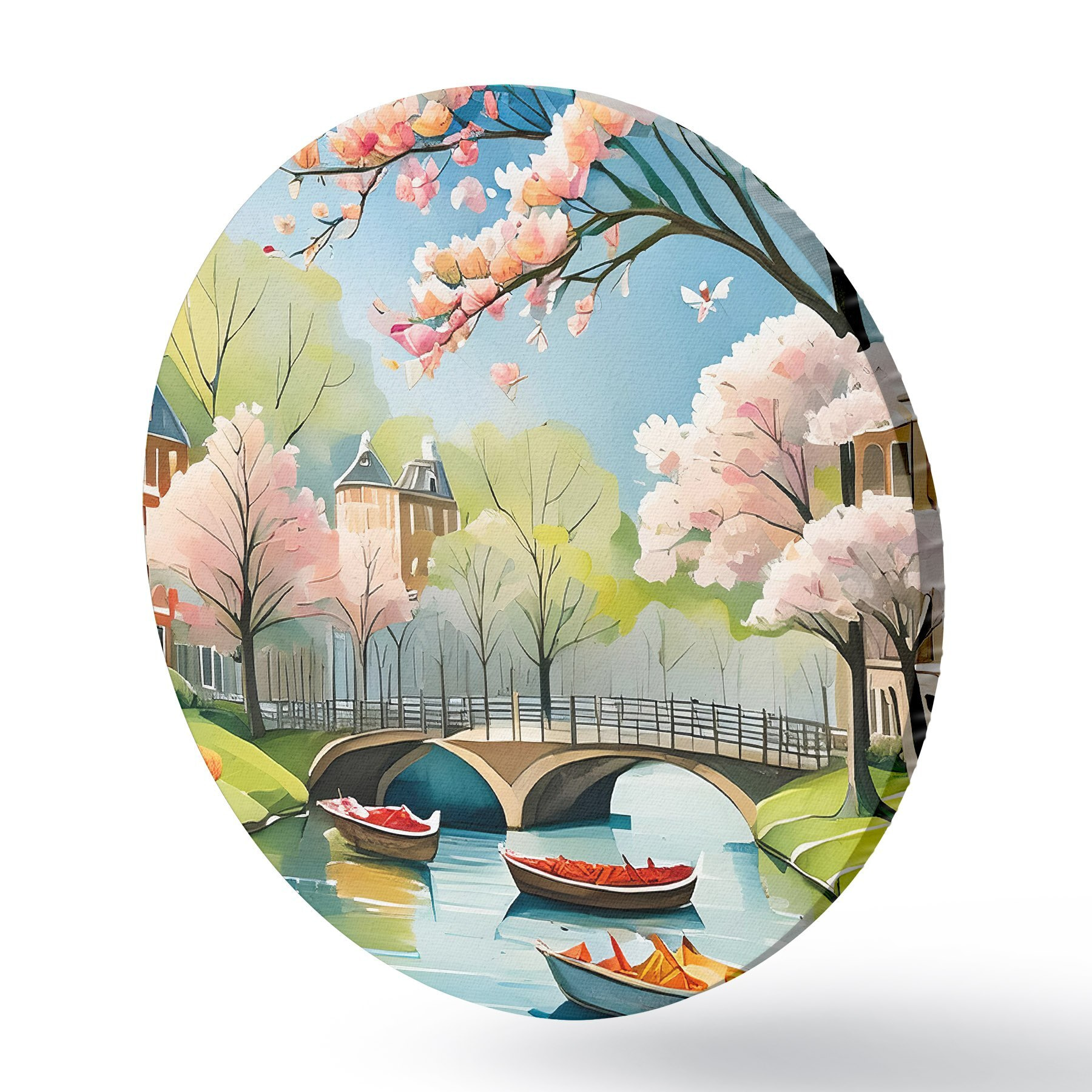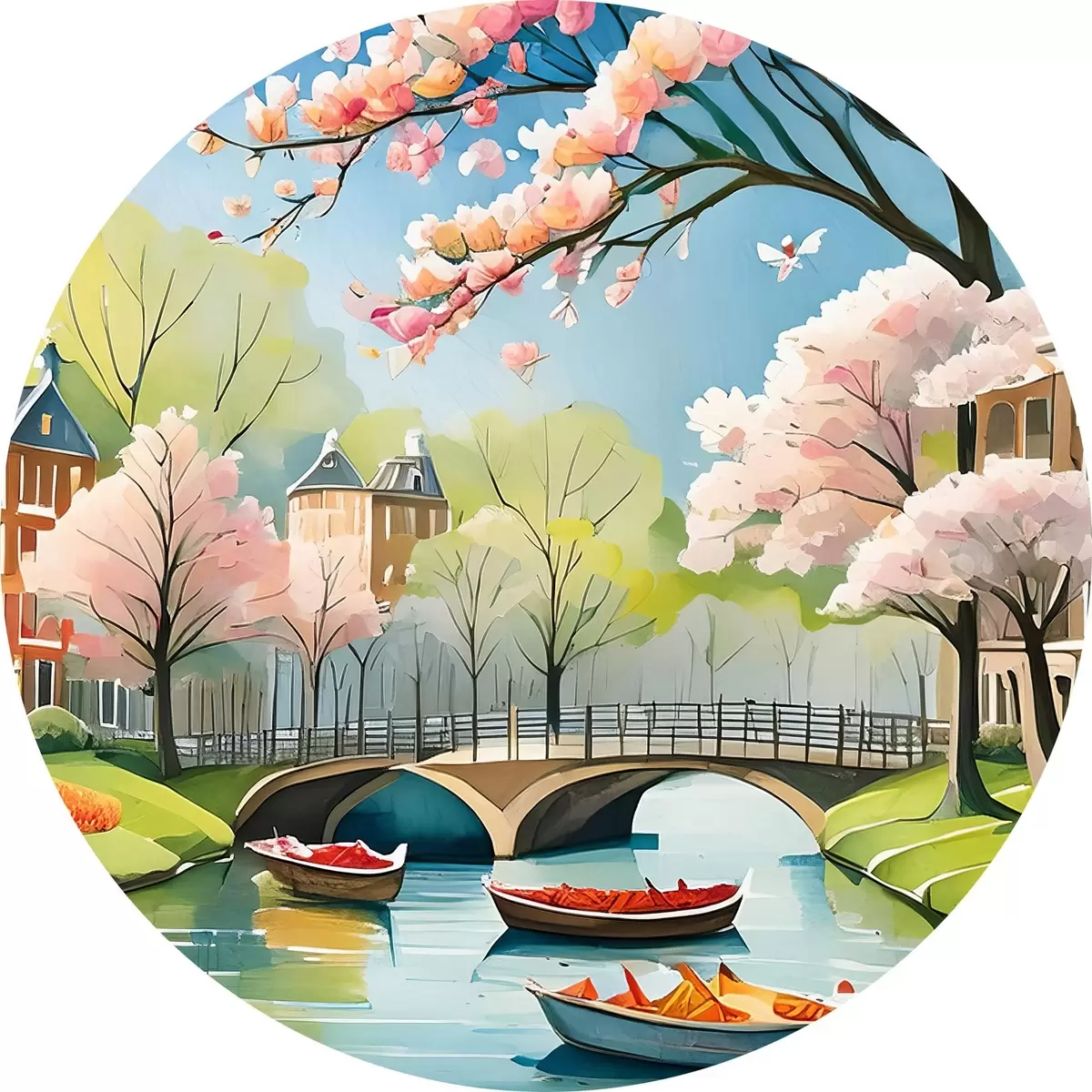 Ronde schilderijen bloeiende bomen in Amsterdam in het voorjaar r39301