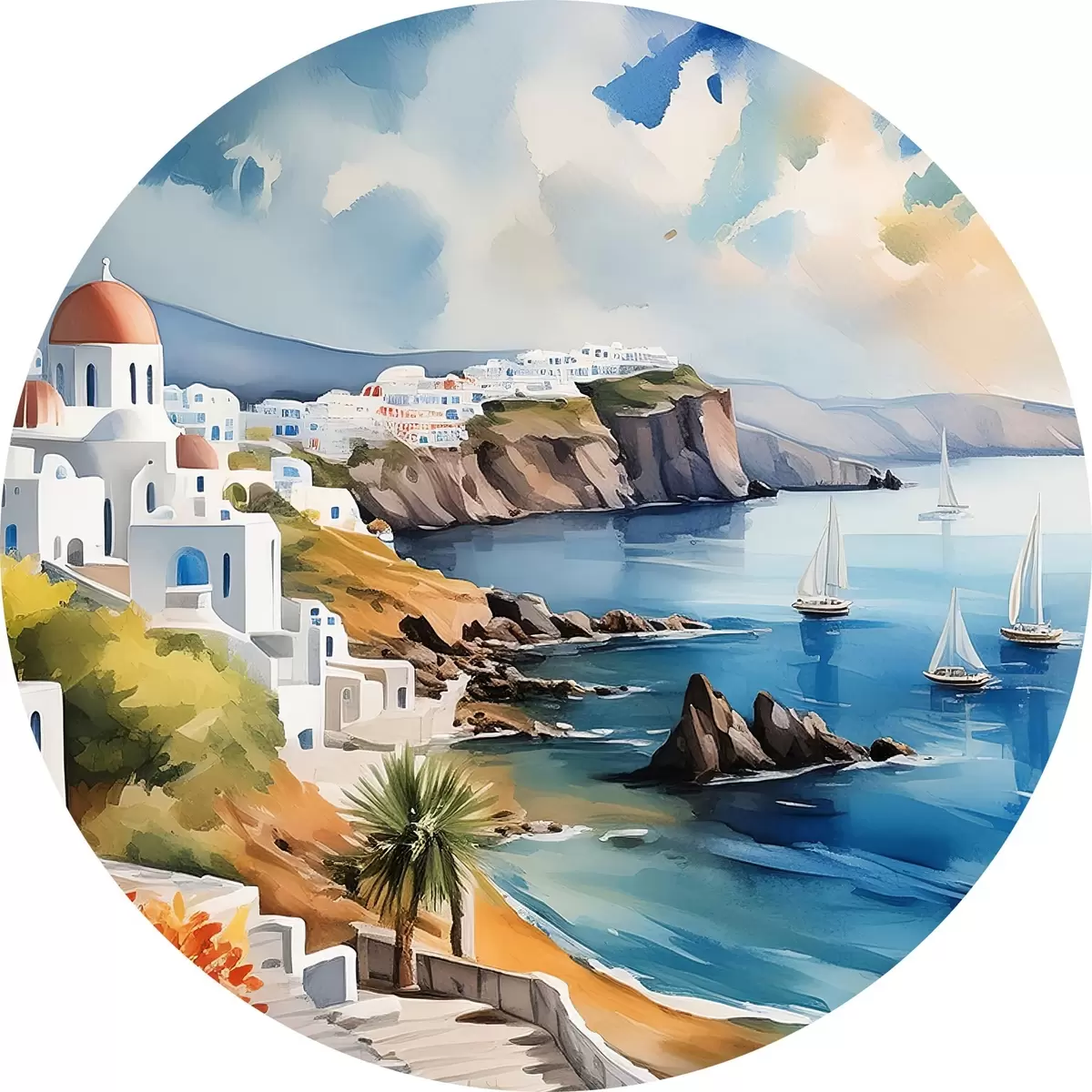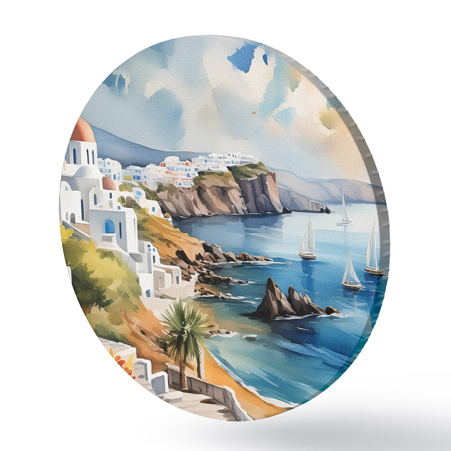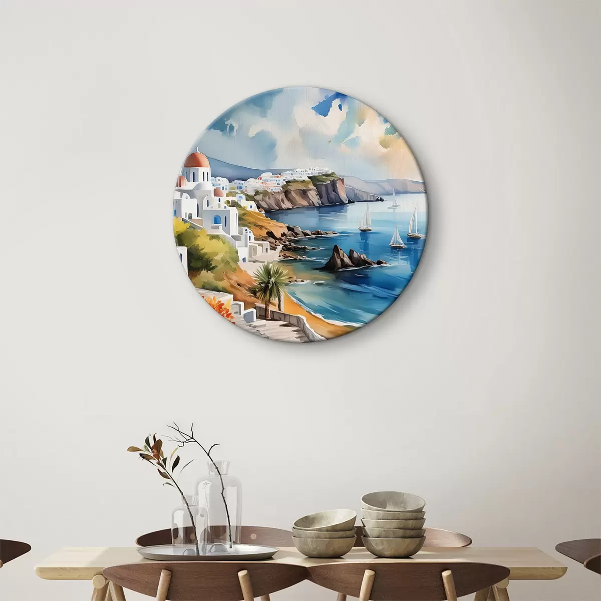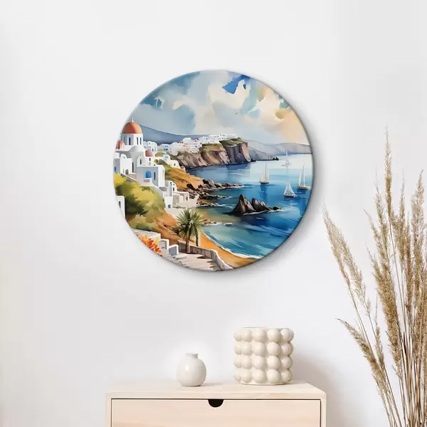 Ronde schilderijen Uitzicht op de stad Santorini r39304