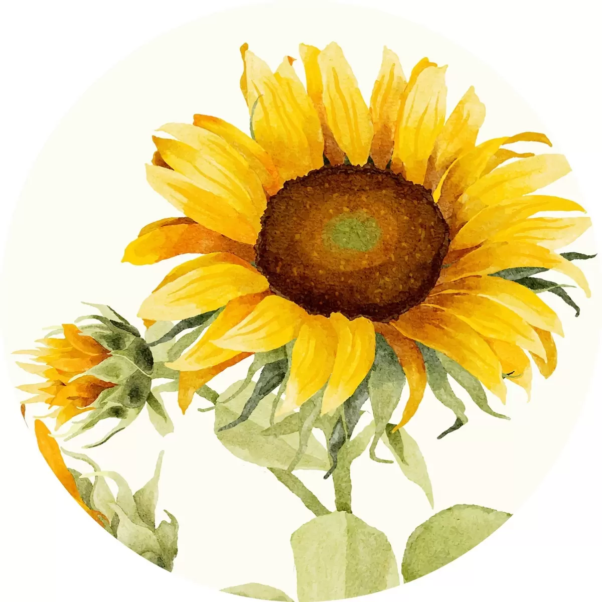 Ronde schilderijen Heldere aquarel zonnebloem r39341