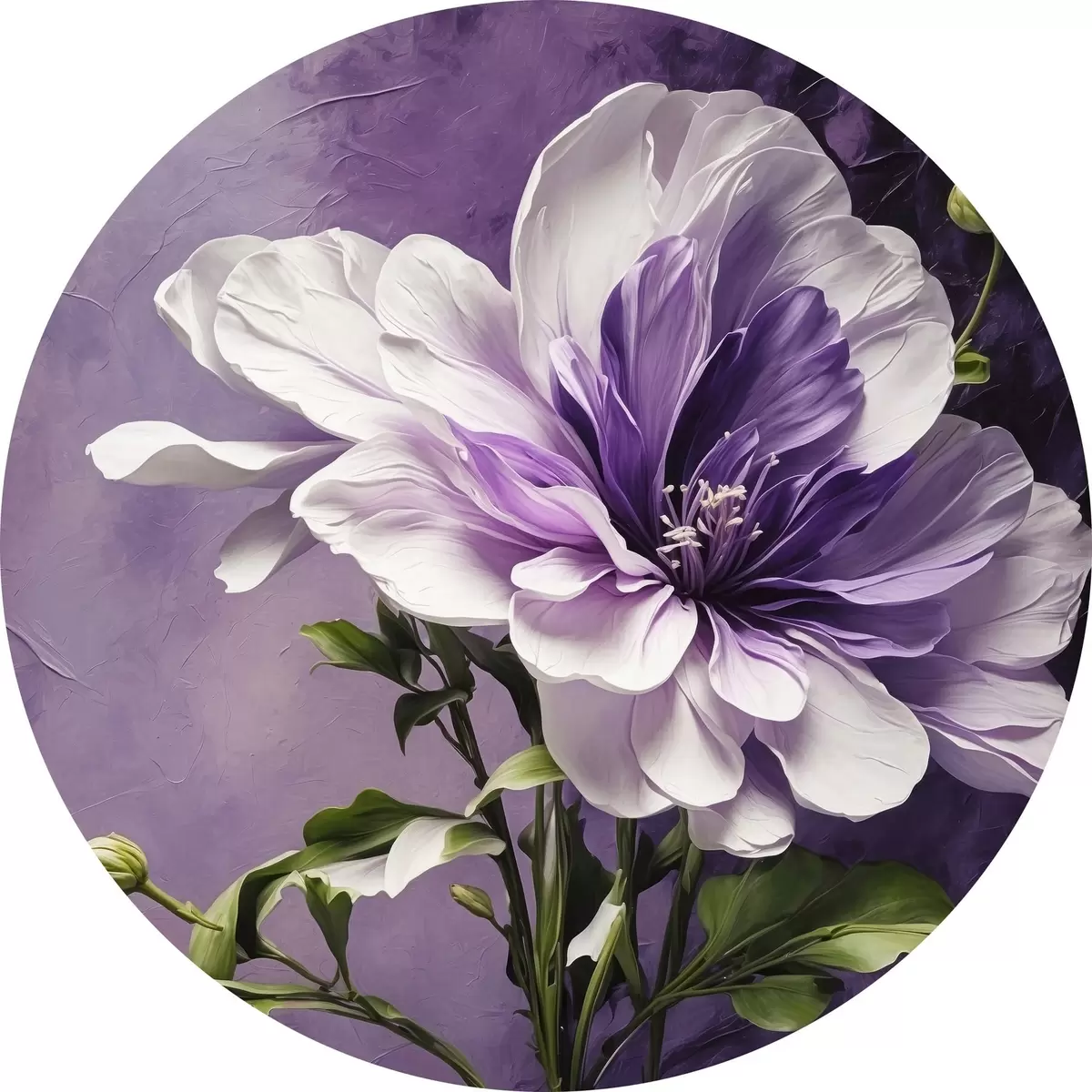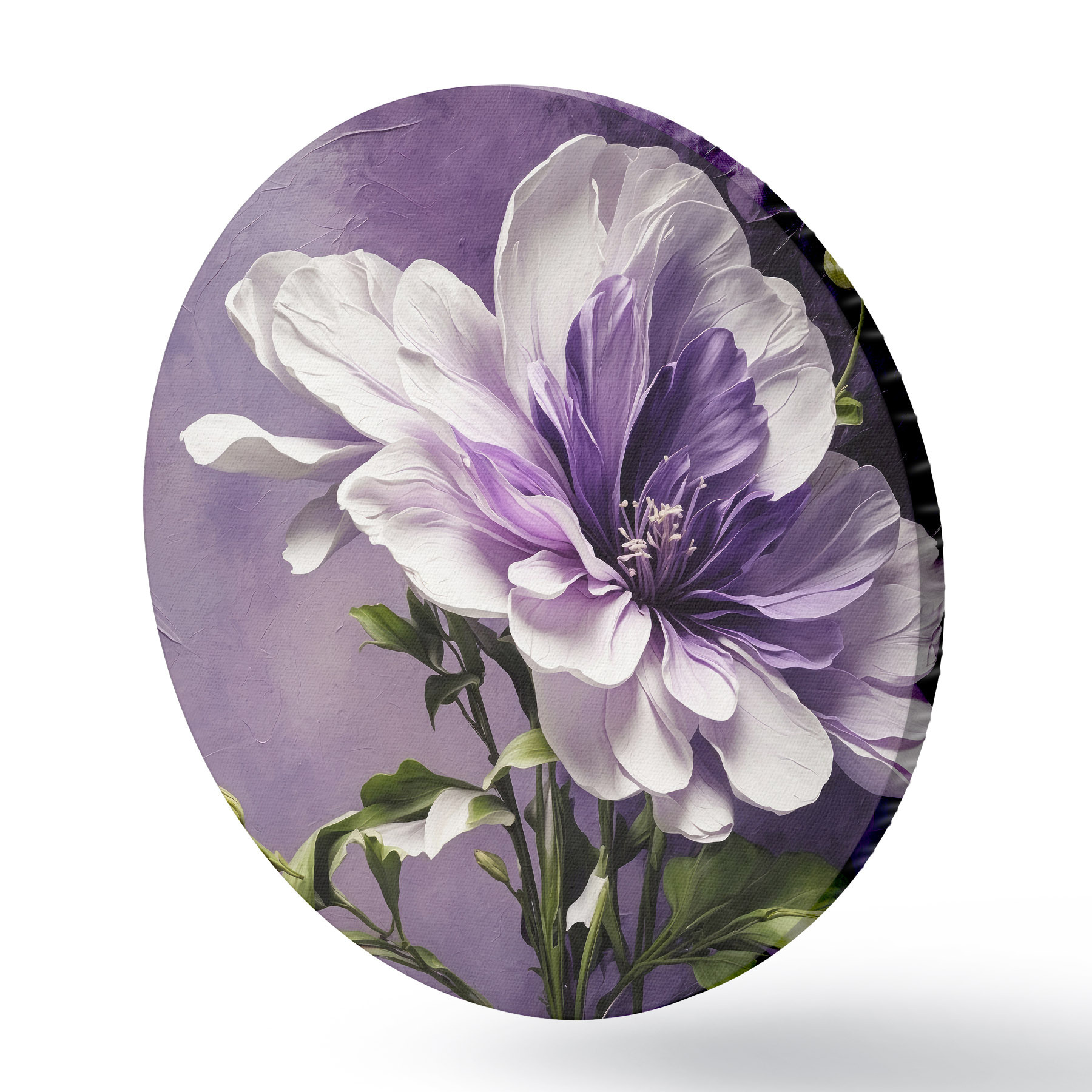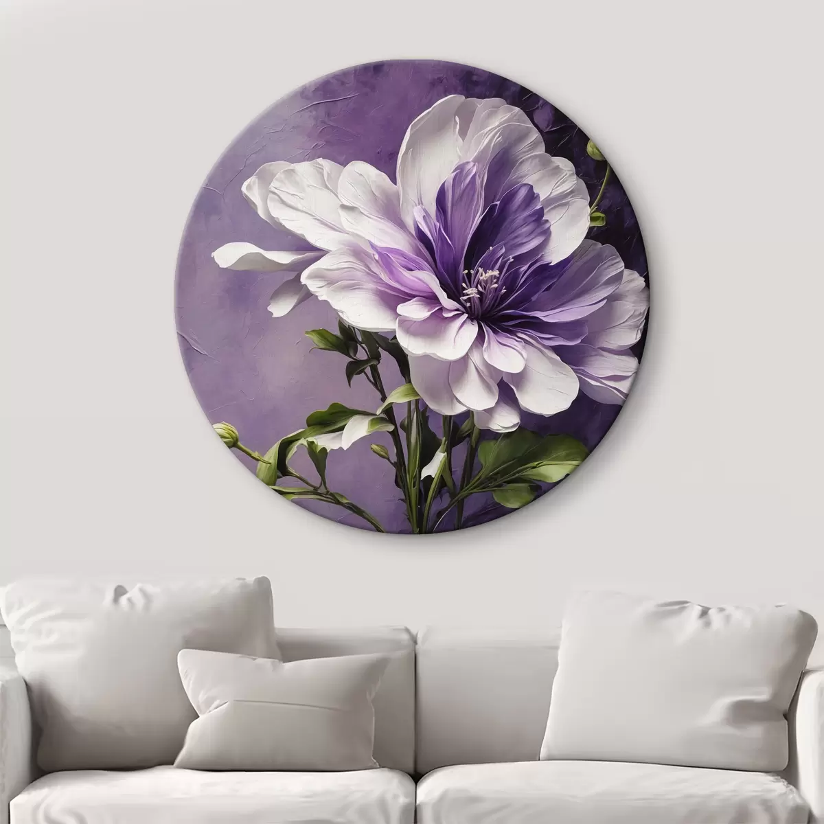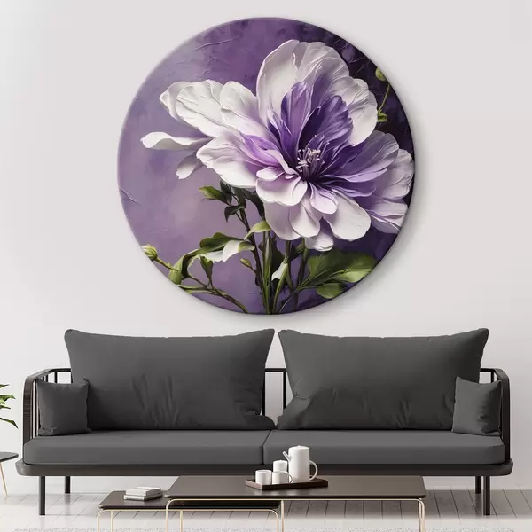 Ronde schilderijen Paarse bloemen op paarse achtergrond r39368