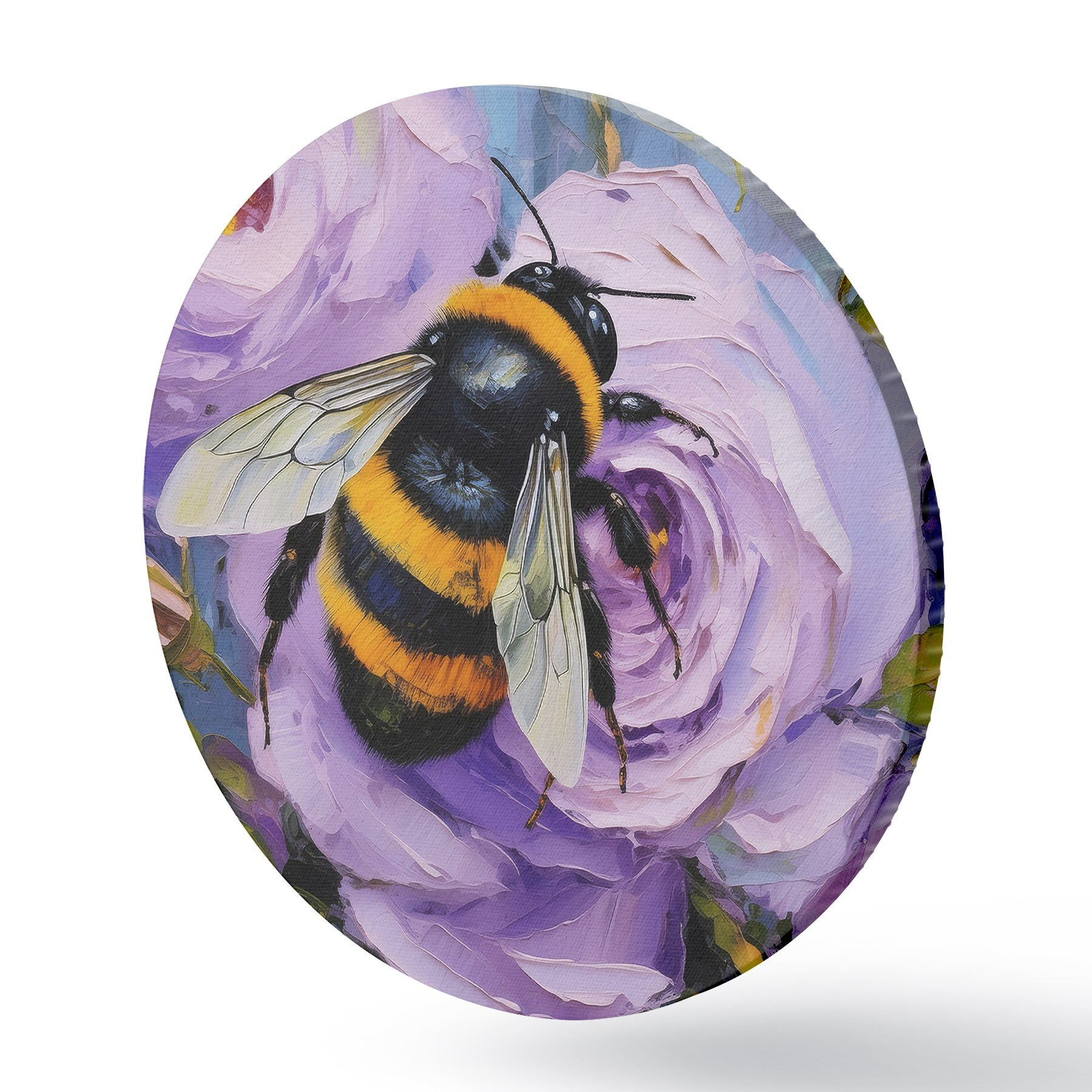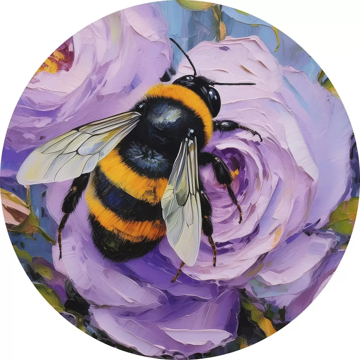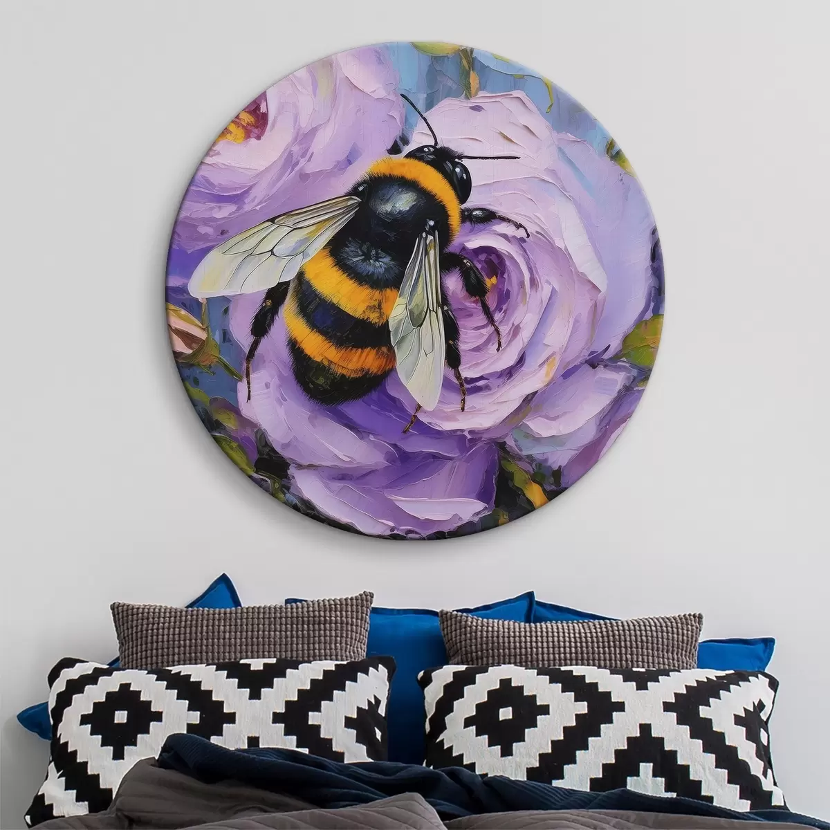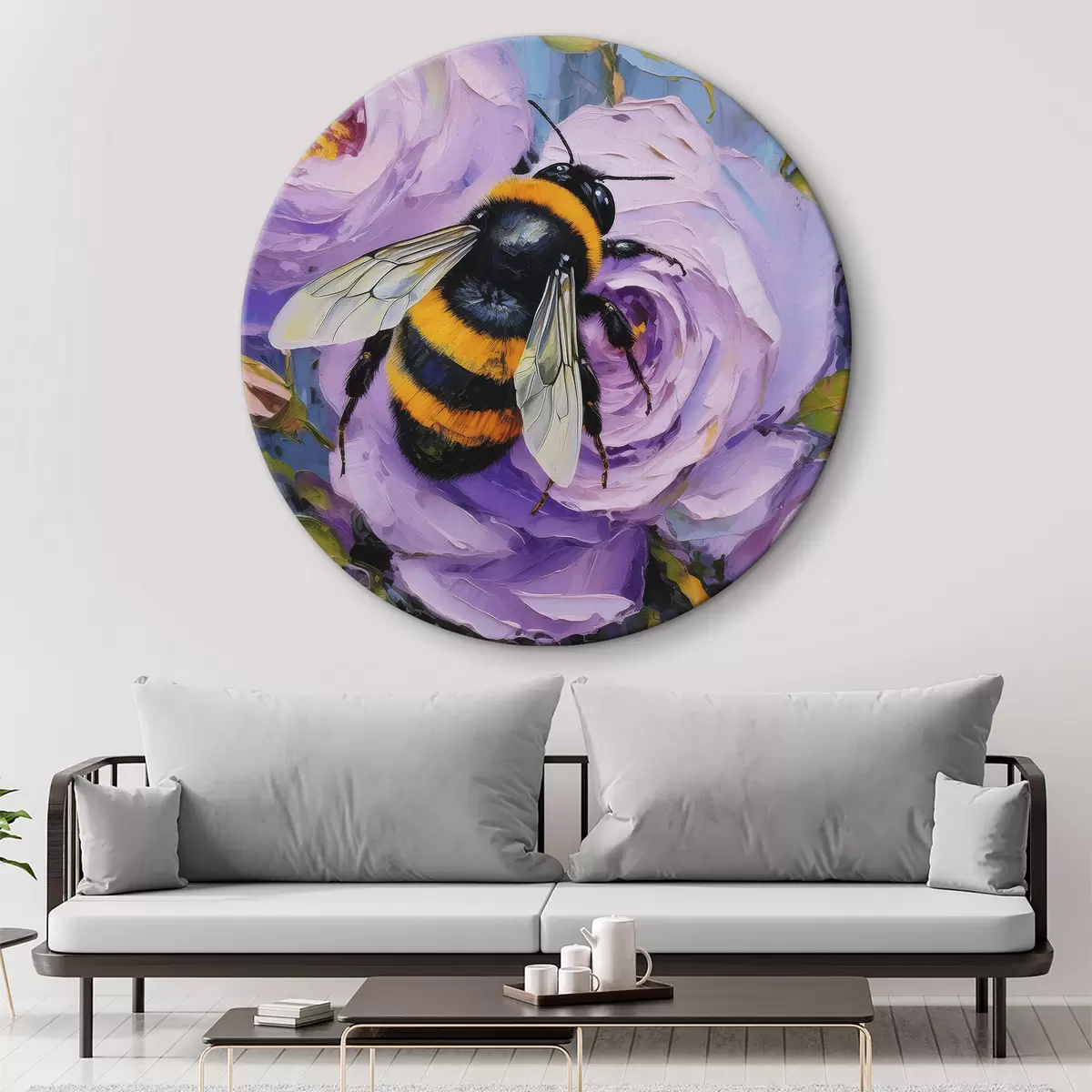 Ronde schilderijen Bij op de roze pioenrozen, zomerbloemen, olieverfschilderij, levendige penseelstreken r39410