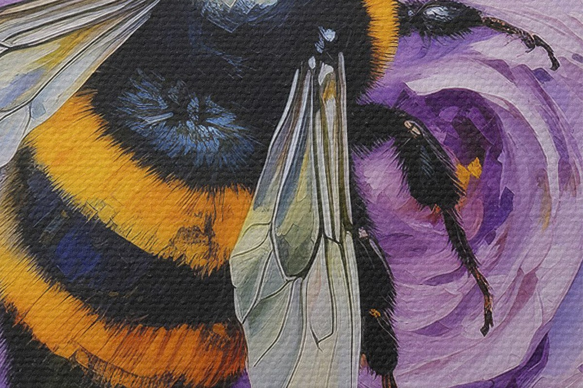 Afbeelding Bij op de roze pioenrozen, zomerbloemen, olieverfschilderij, levendige penseelstreken Nr r39410